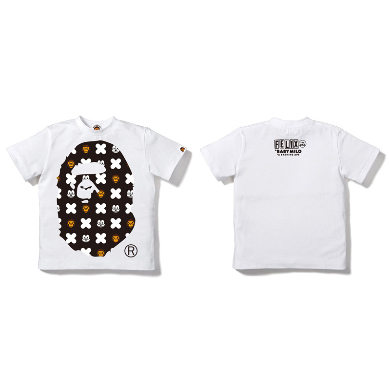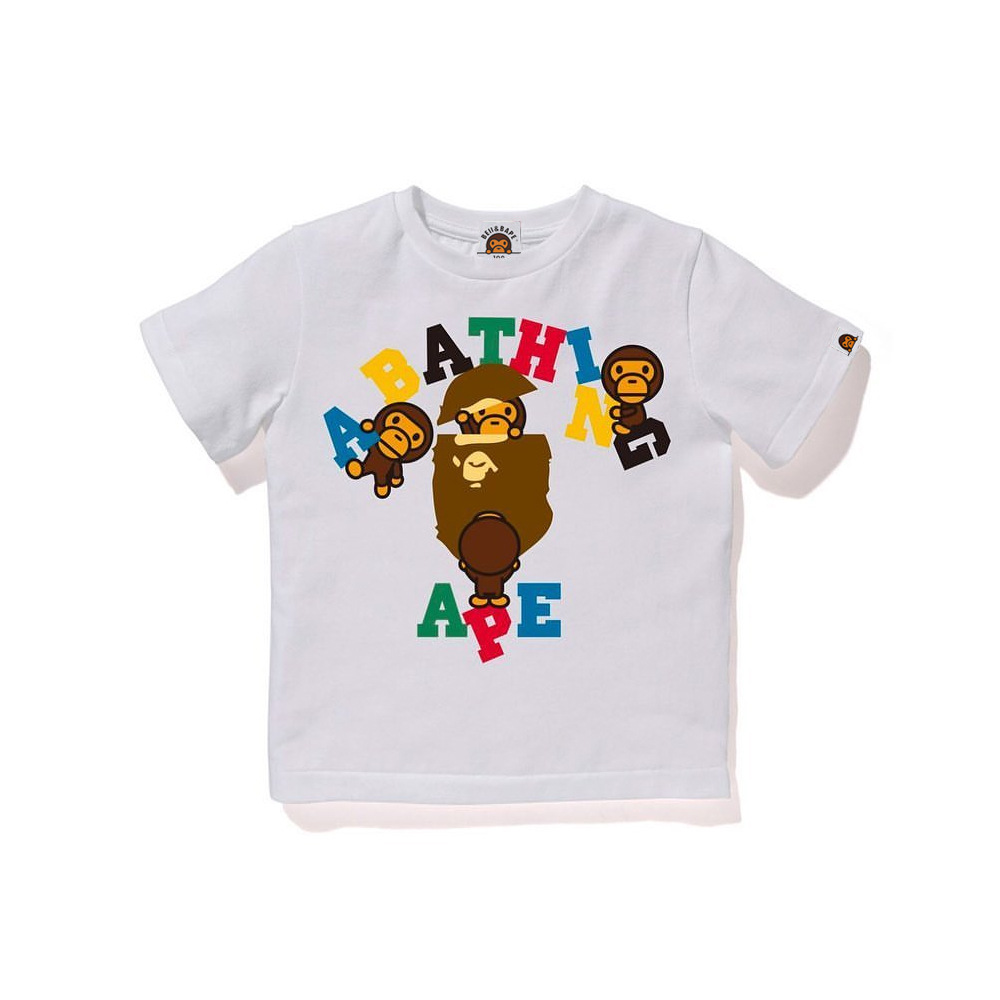 국경 간 여름 BAPE 위장 큰 원숭이 어린이 여름 옷 남성과 여성 중간 어린이 면화 반팔 티셔츠 아기 원숭이 머리스토어 가기