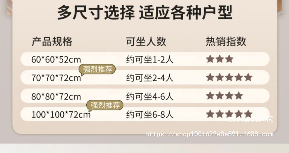 • 원래 색상 두꺼워진 80X80 측면 [설치가 필요 없고 보관이 용이함] 테이블 높이 72CM✦✦