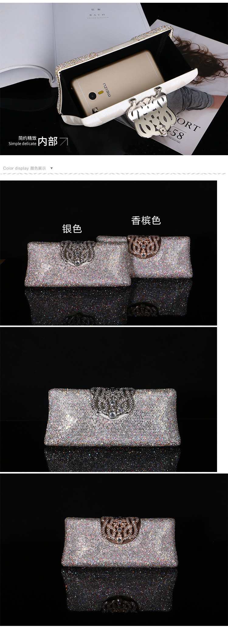 • 라인스톤 클러치, 여성용 연예인 가방, 다이아몬드가 박힌 연회 클러치, 치파오가 달린 디너 드레스용 작은 가방