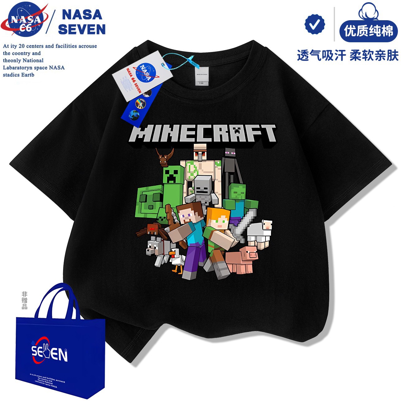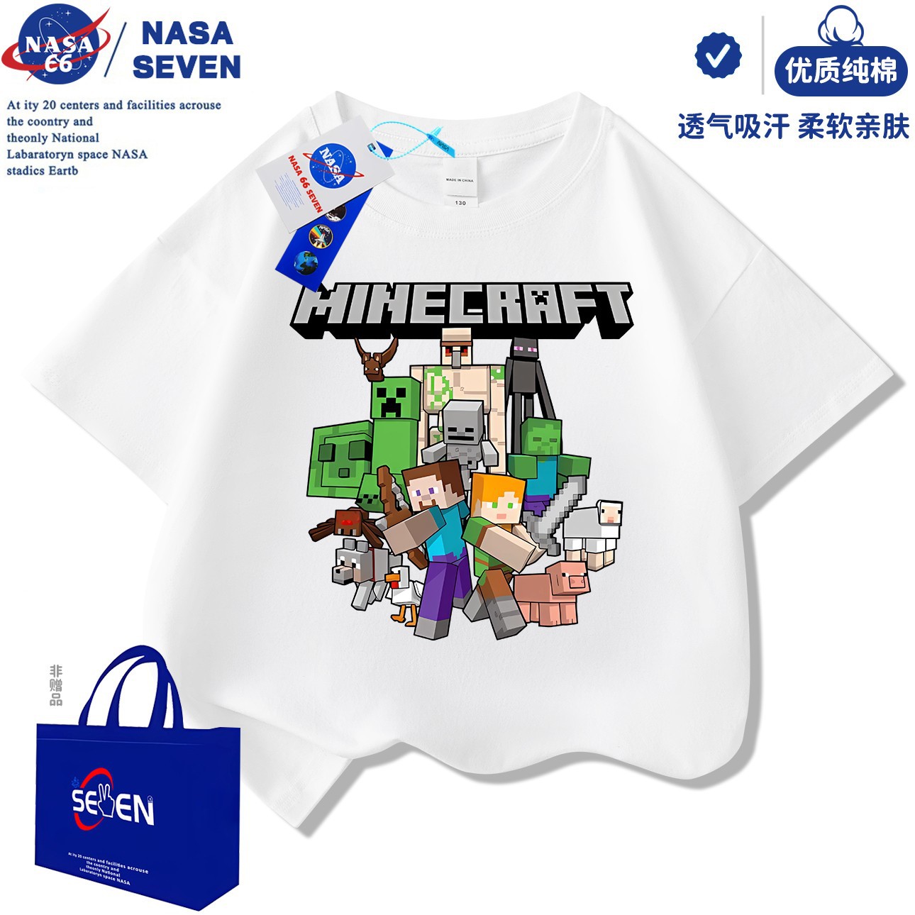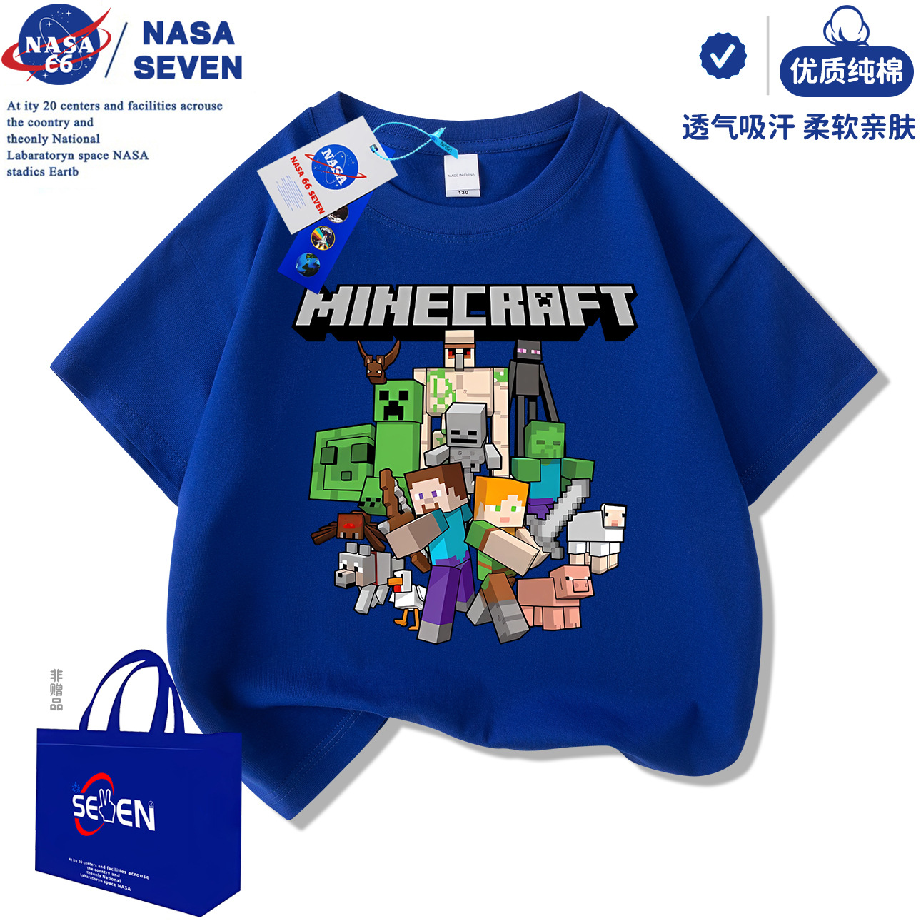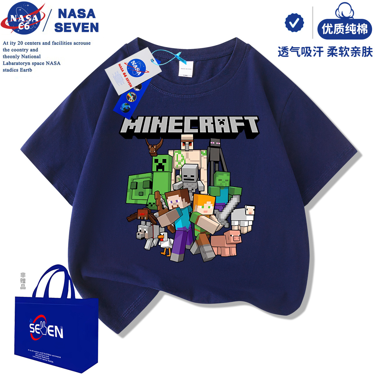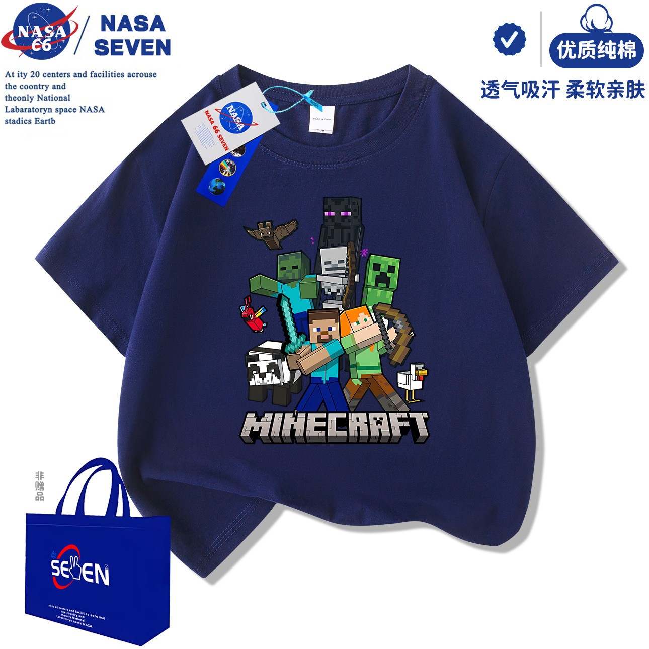 NASA 마인 크래프트 옷 소년 반팔 잘 생긴 여름 새 순수 코튼 티셔츠 중형 및 대형 아동 캐주얼상의스토어 가기