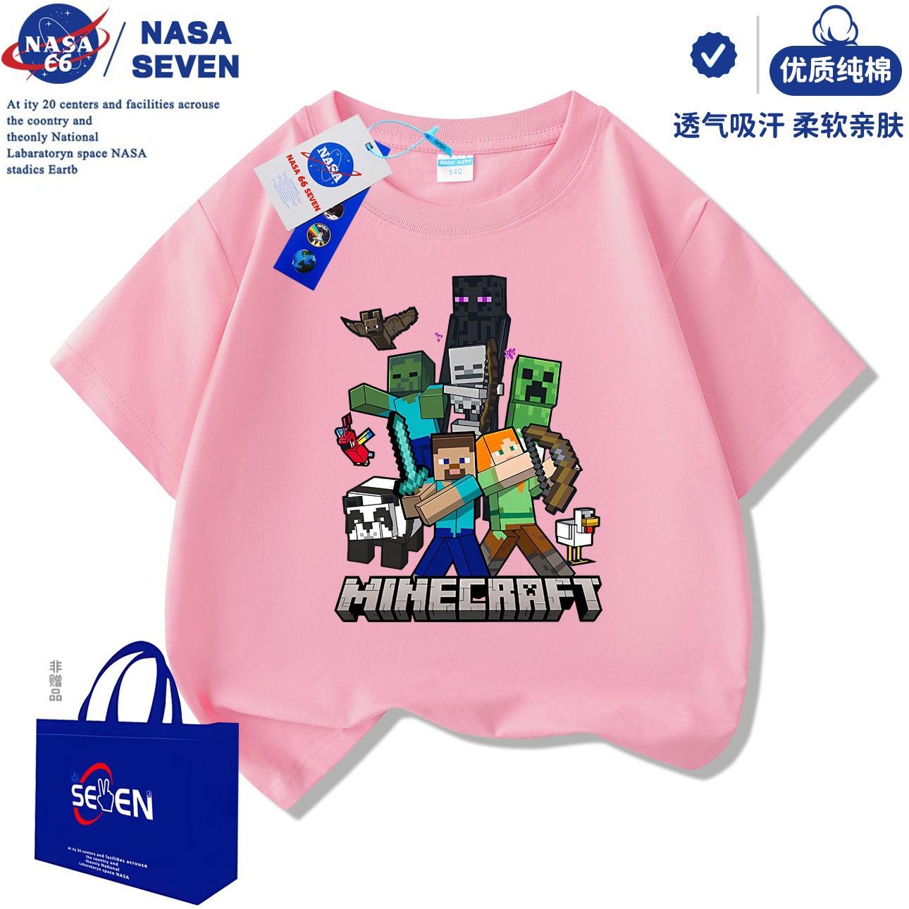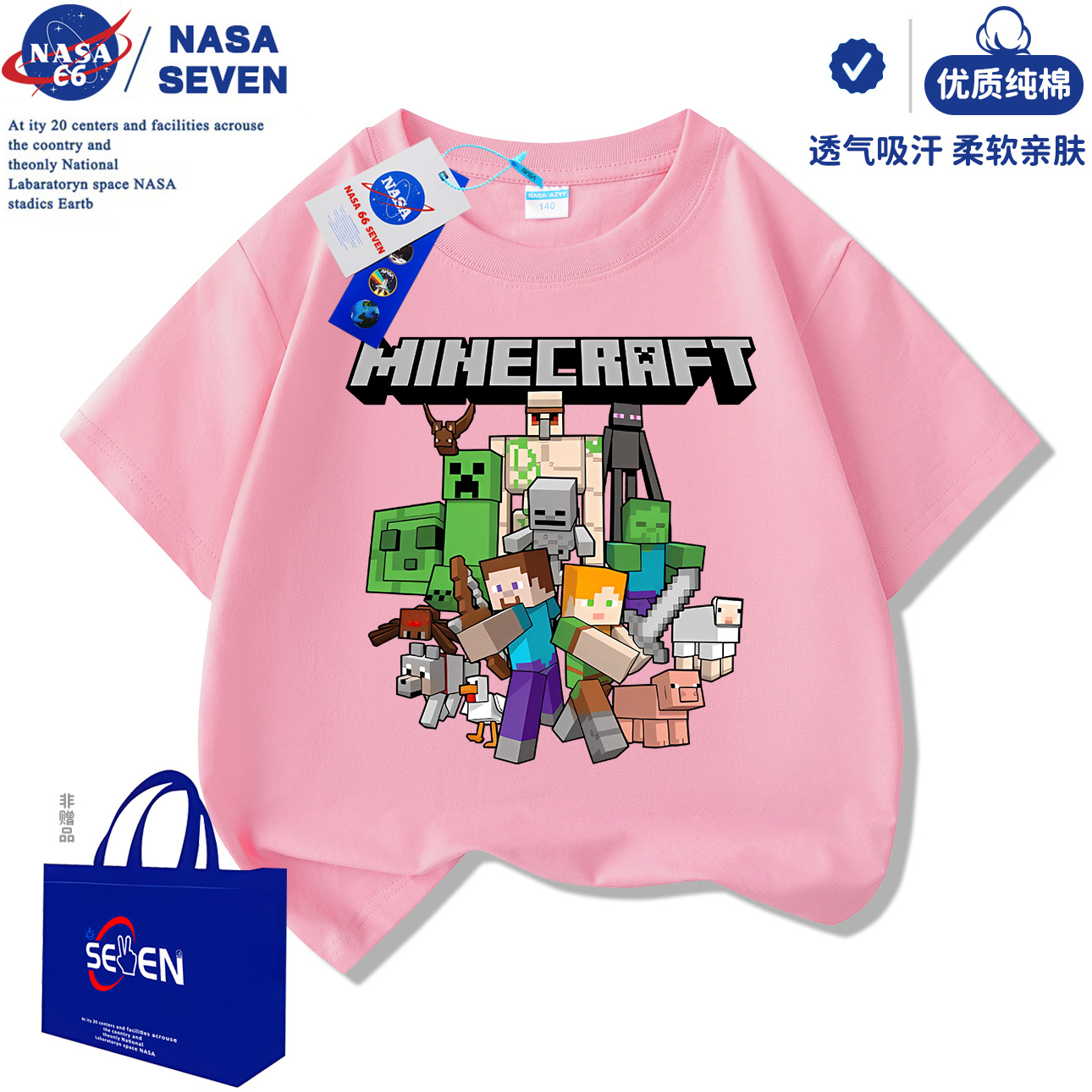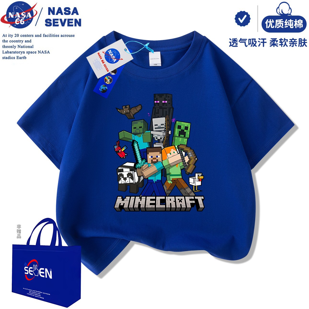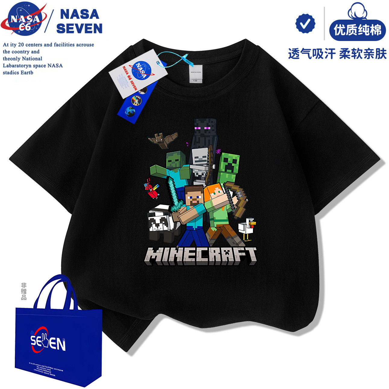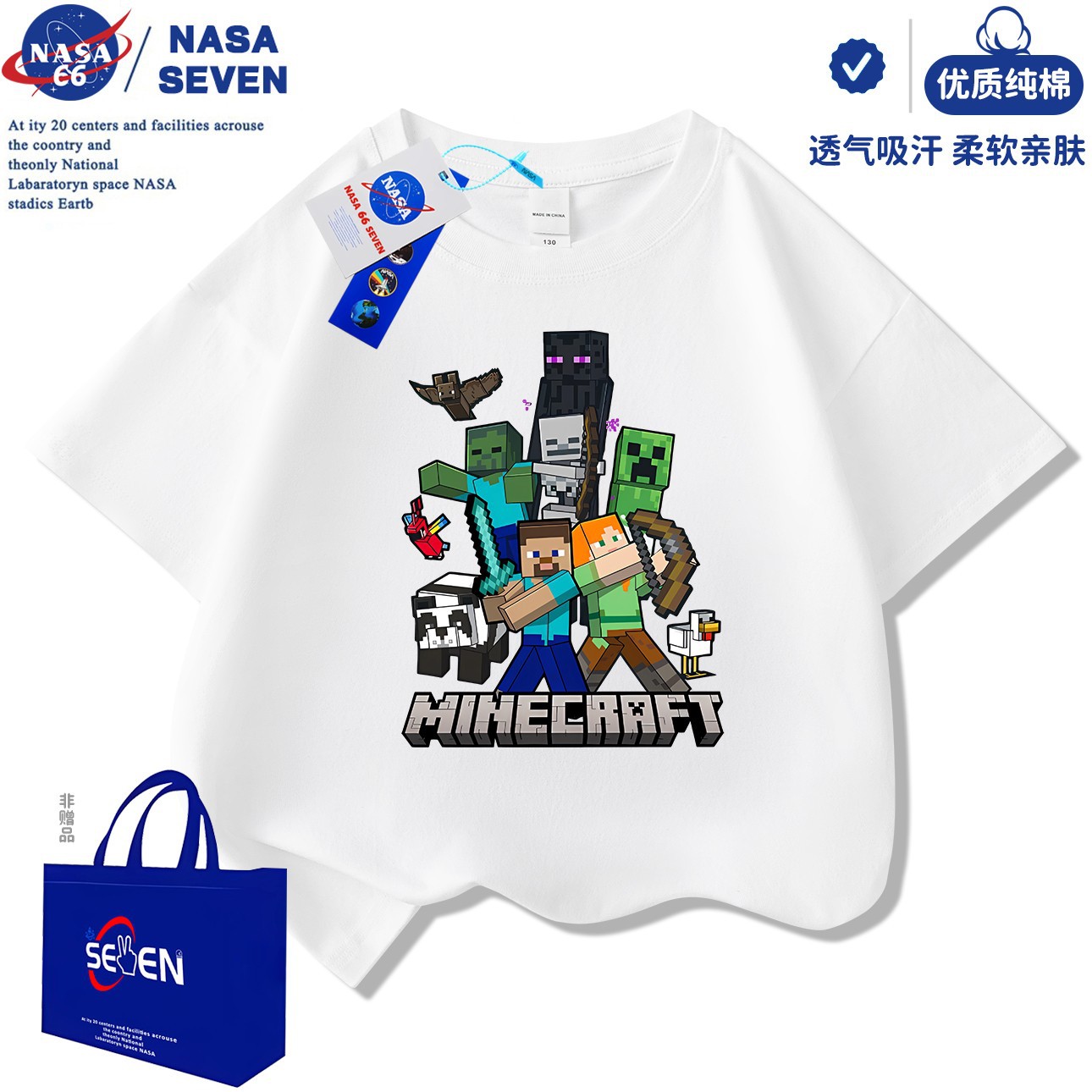 NASA 마인 크래프트 옷 소년 반팔 잘 생긴 여름 새 순수 코튼 티셔츠 중형 및 대형 아동 캐주얼상의스토어 가기