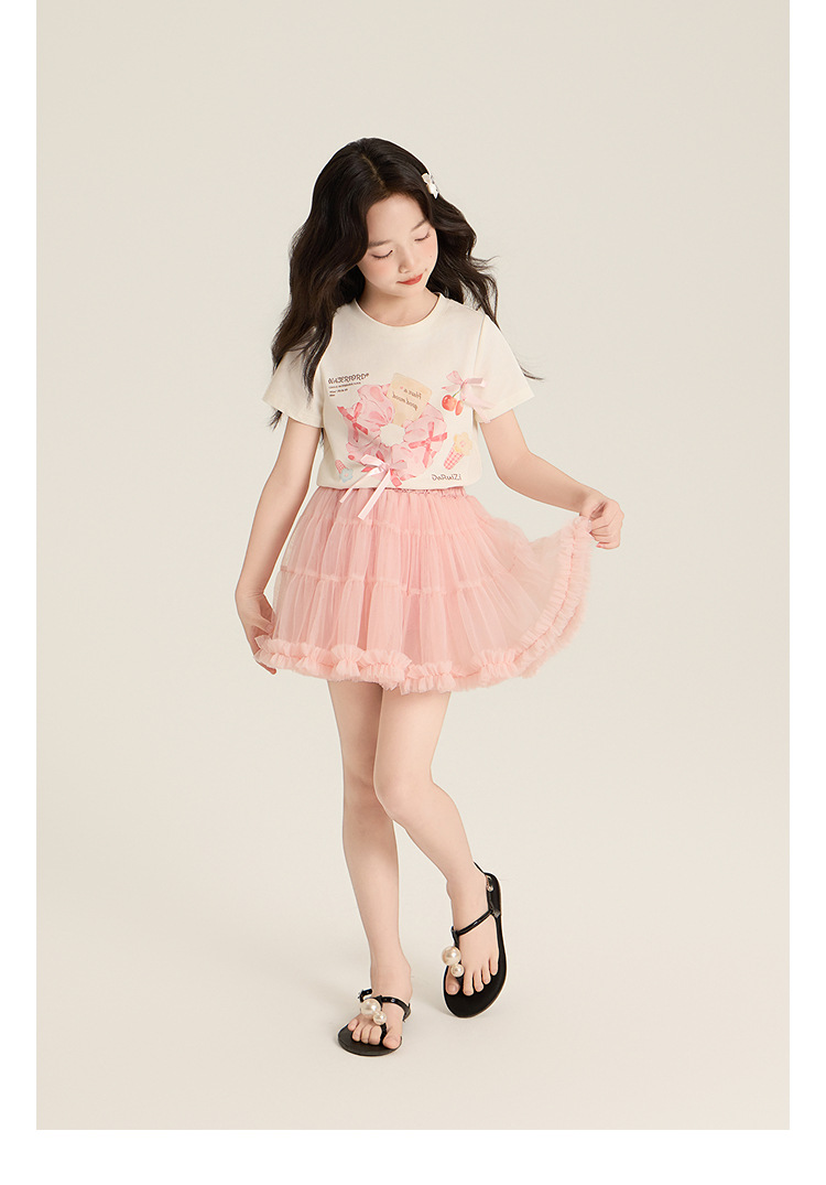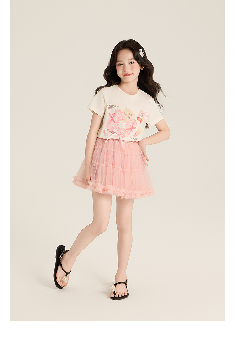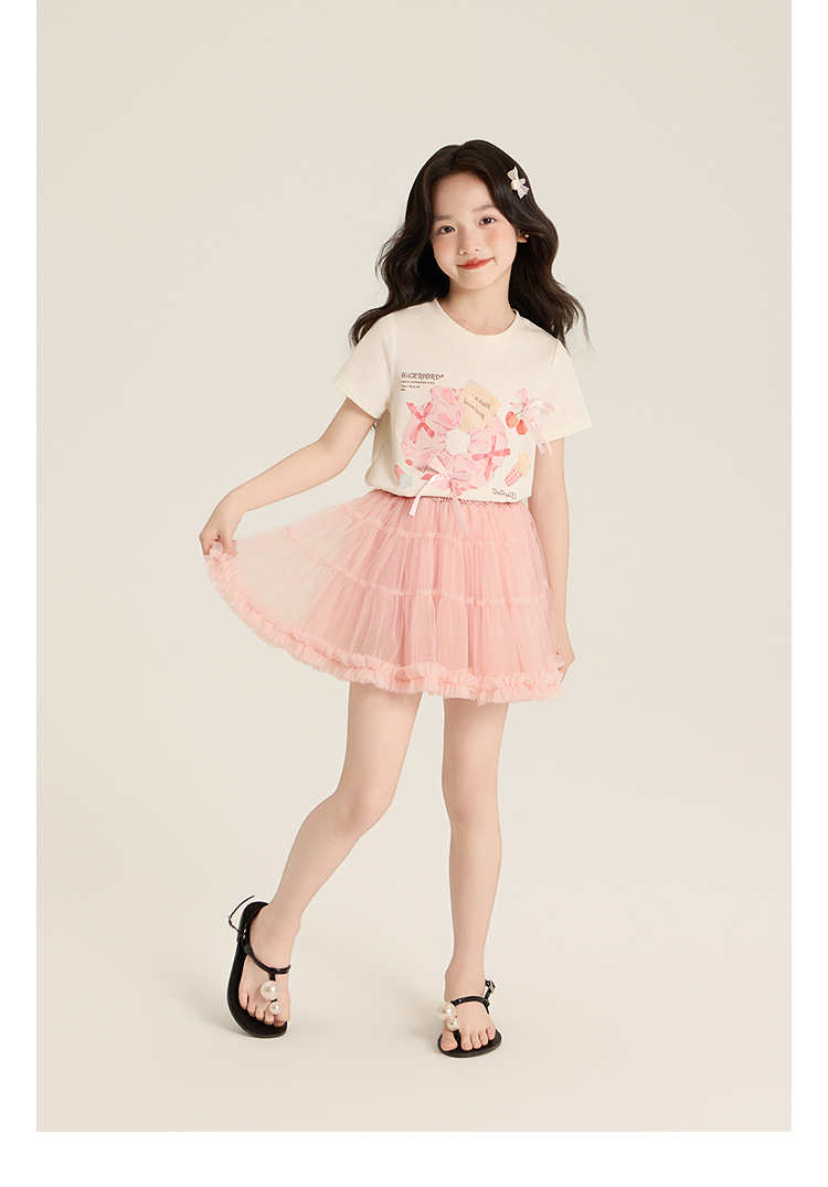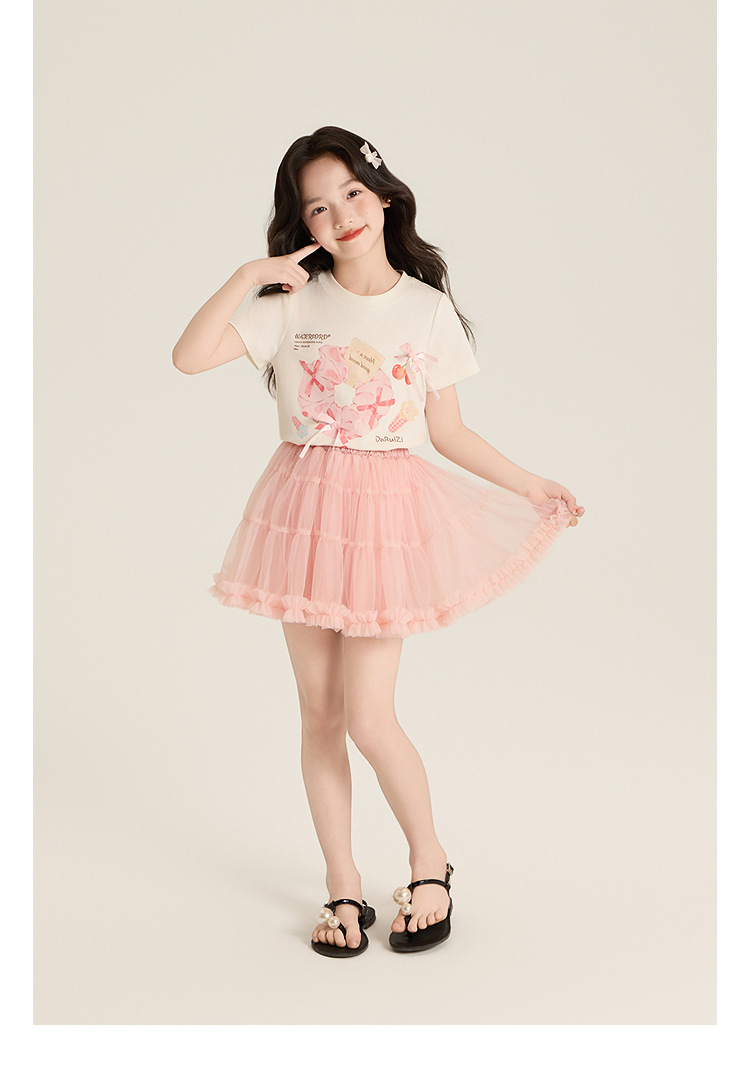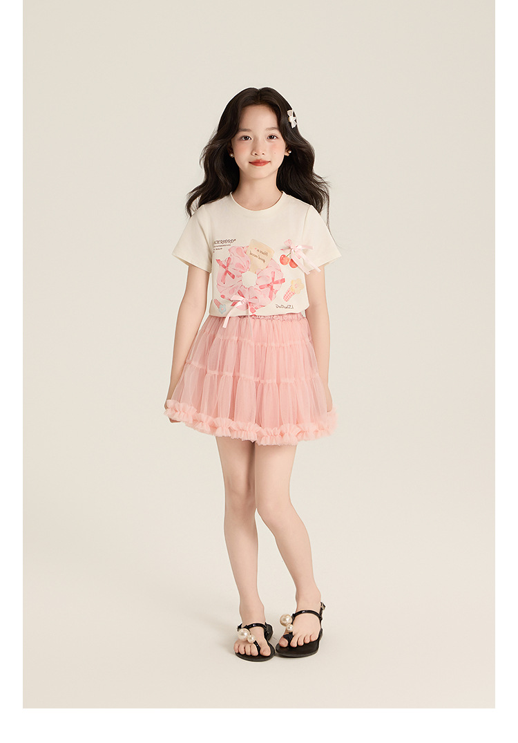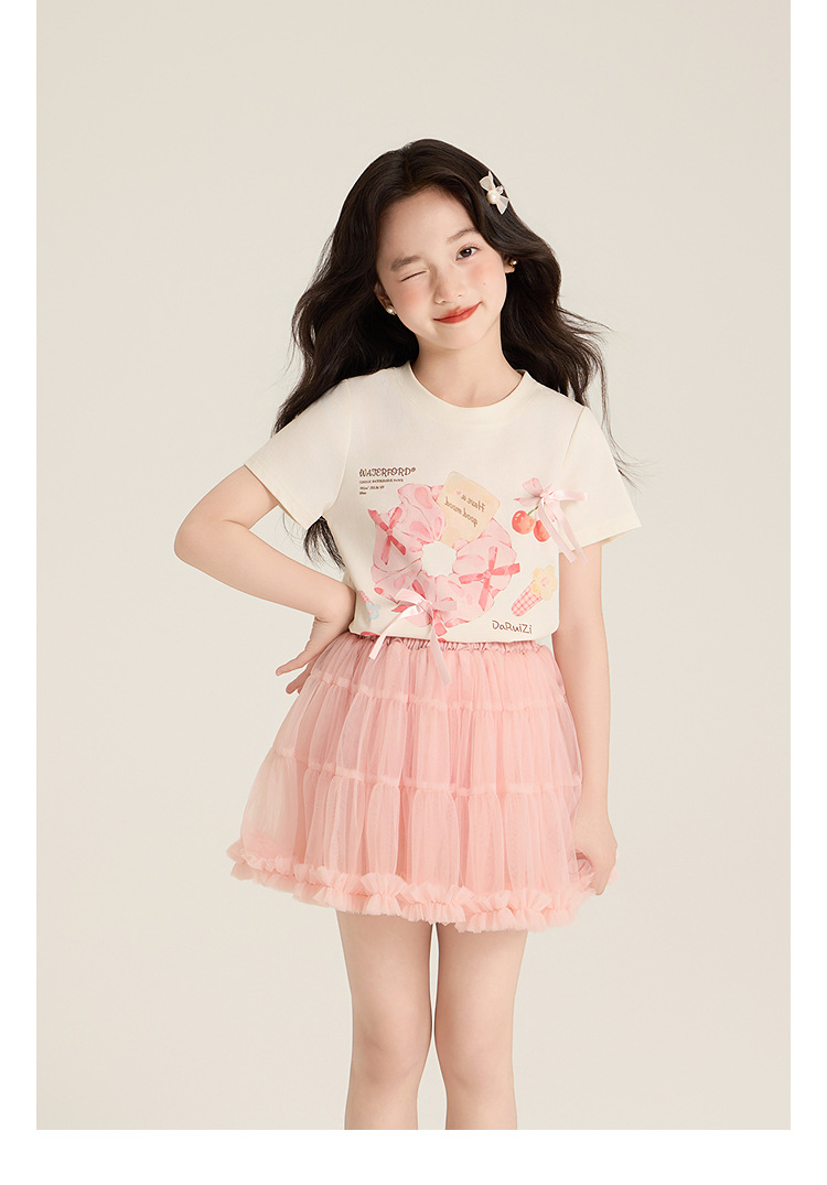 Amybaby 여아 정장 여름 2025 새로운 한국 스타일 달콤한 디자인 티셔츠 기질 메쉬 스커트