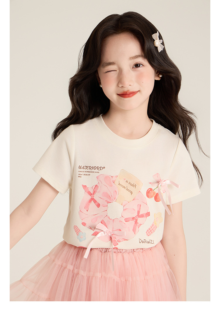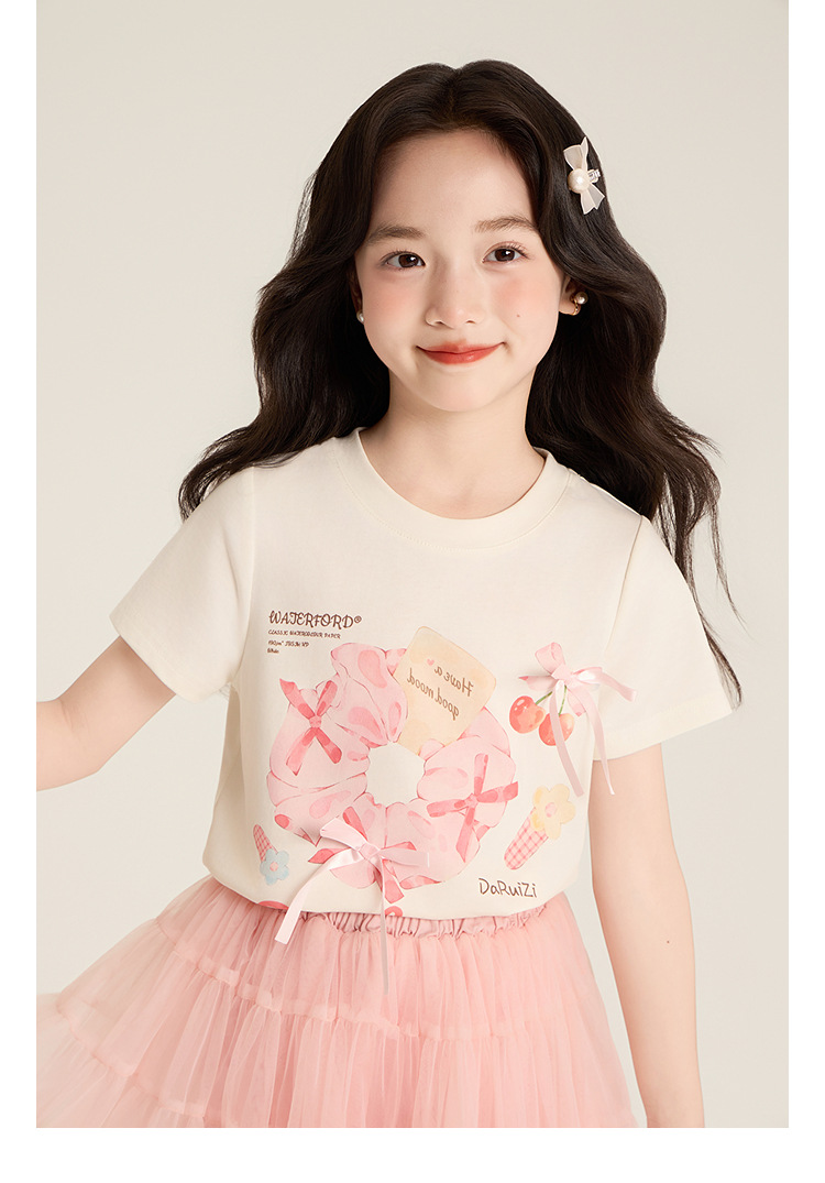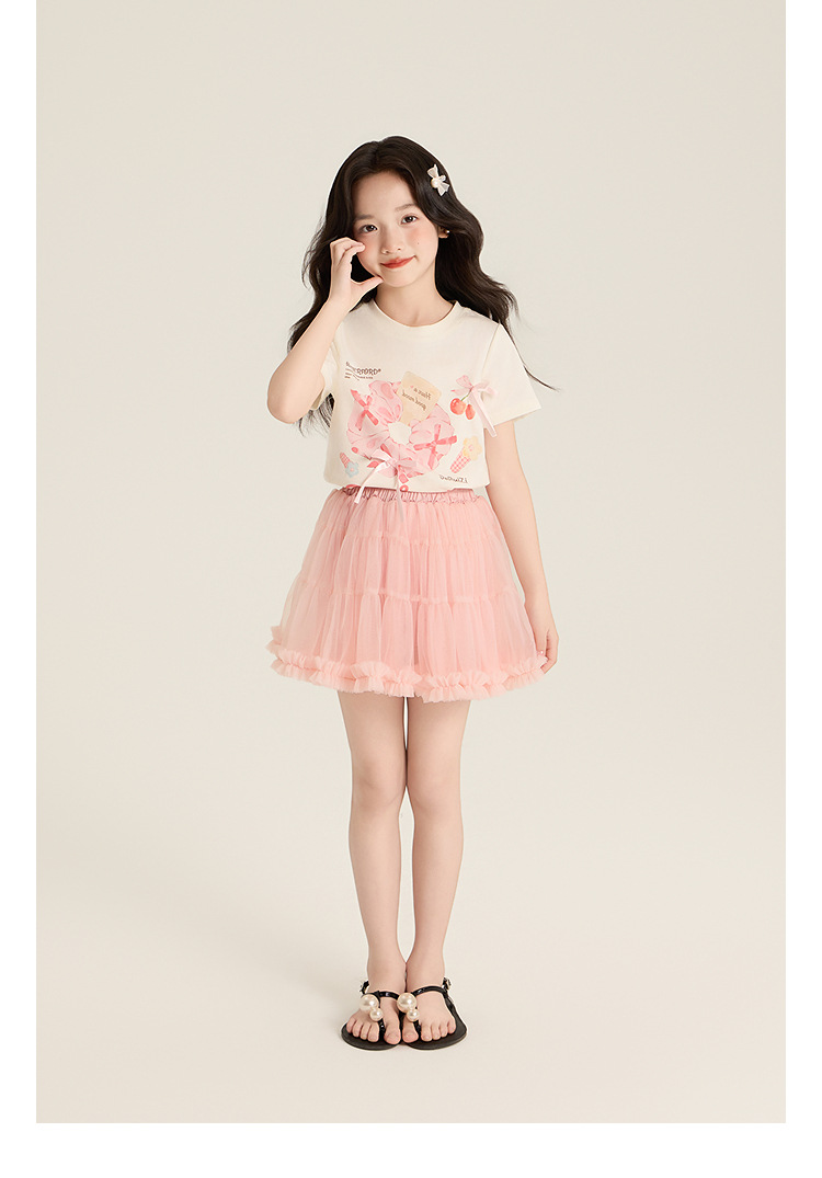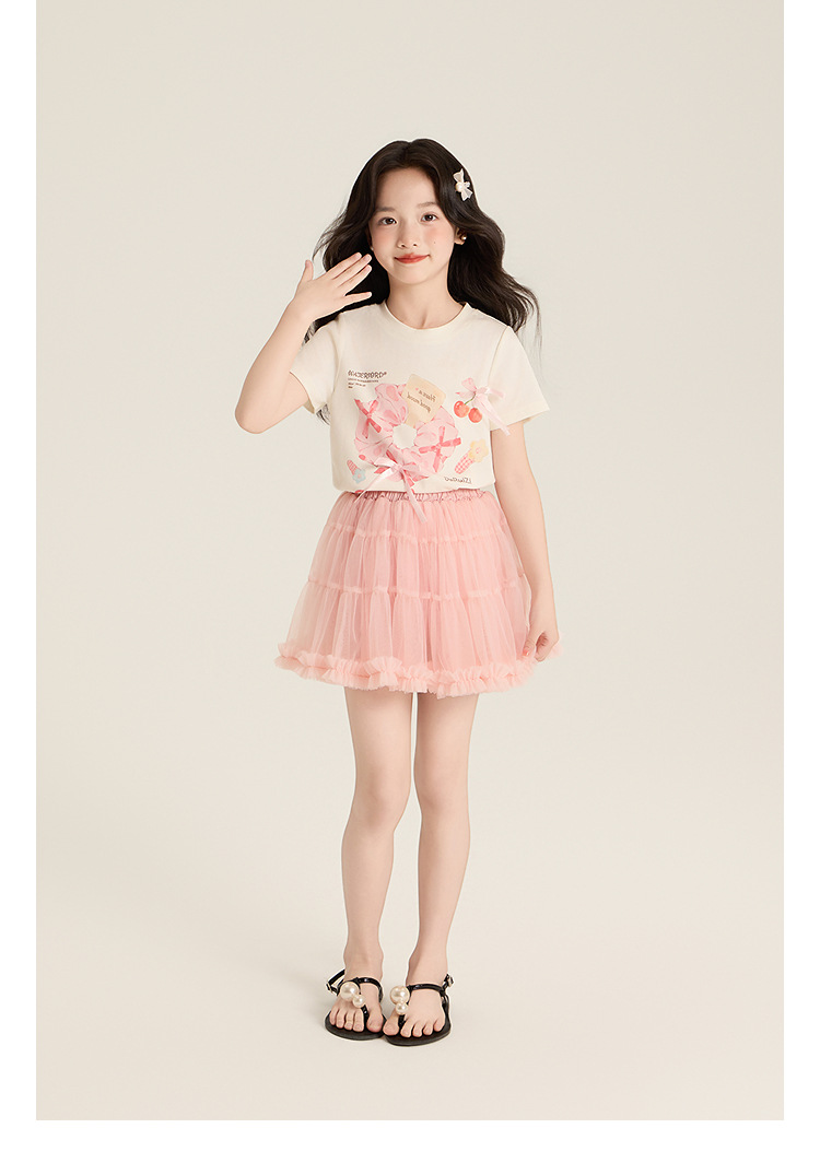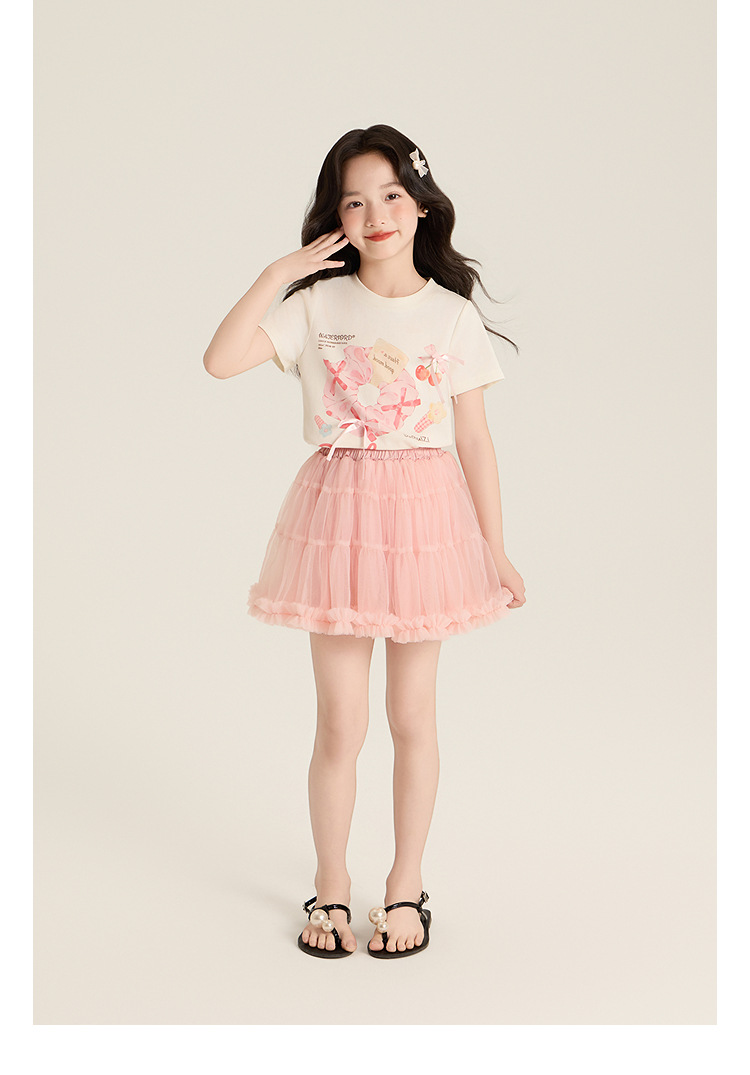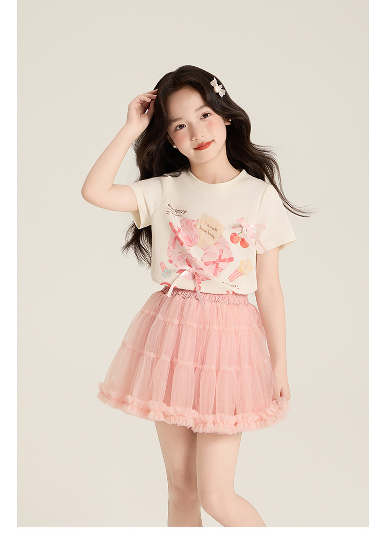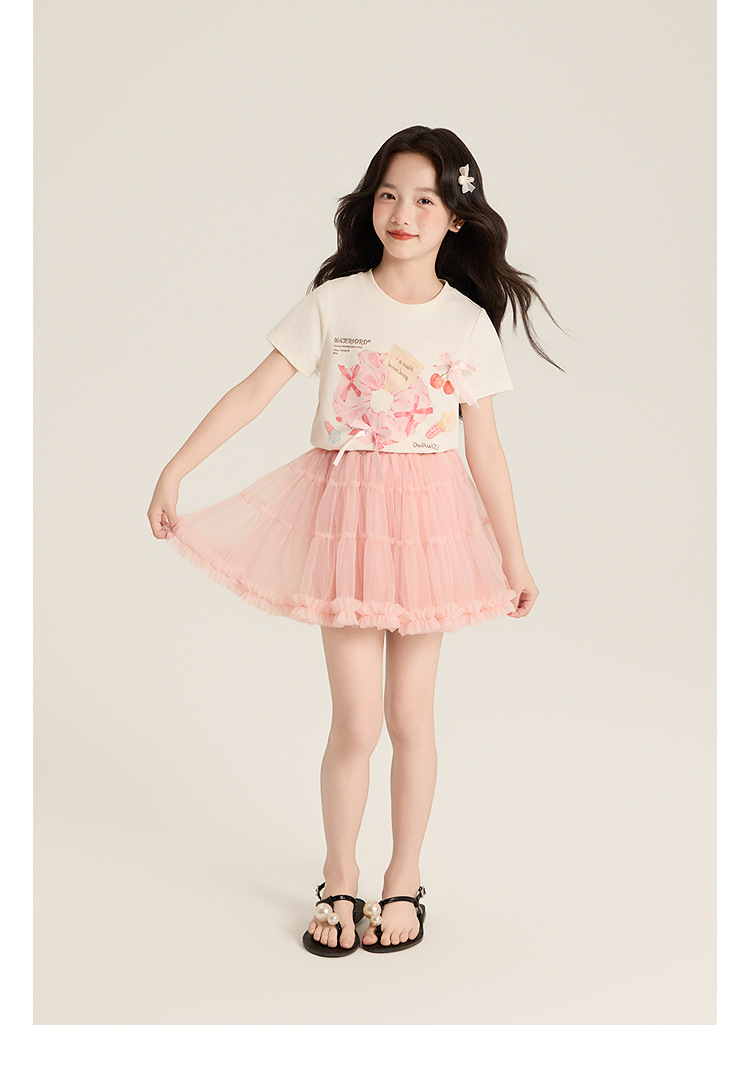 Amybaby 여아 정장 여름 2025 새로운 한국 스타일 달콤한 디자인 티셔츠 기질 메쉬 스커트