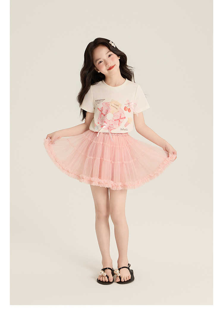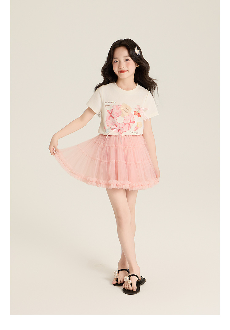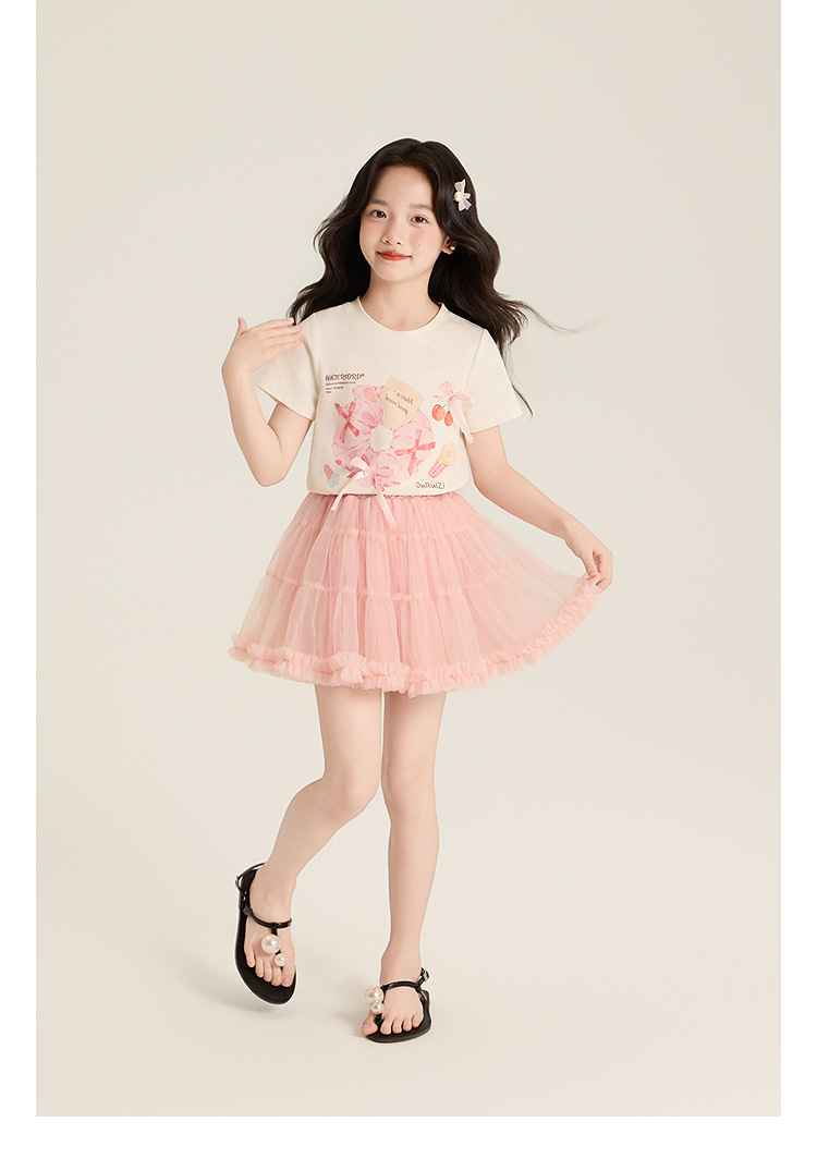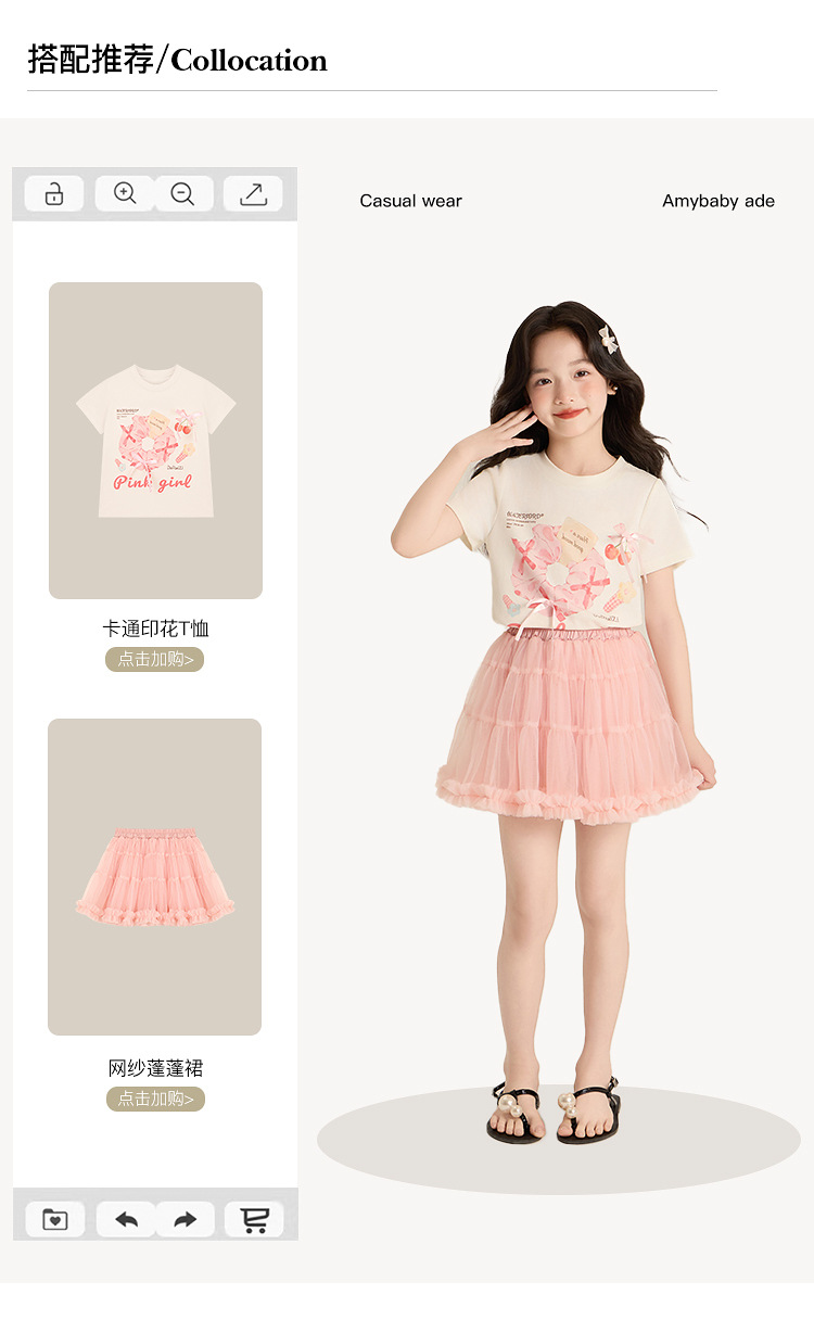 Amybaby 여아 정장 여름 2025 새로운 한국 스타일 달콤한 디자인 티셔츠 기질 메쉬 스커트스토어 가기