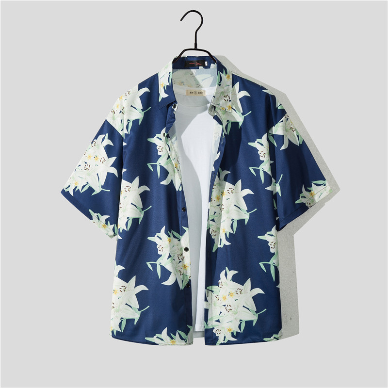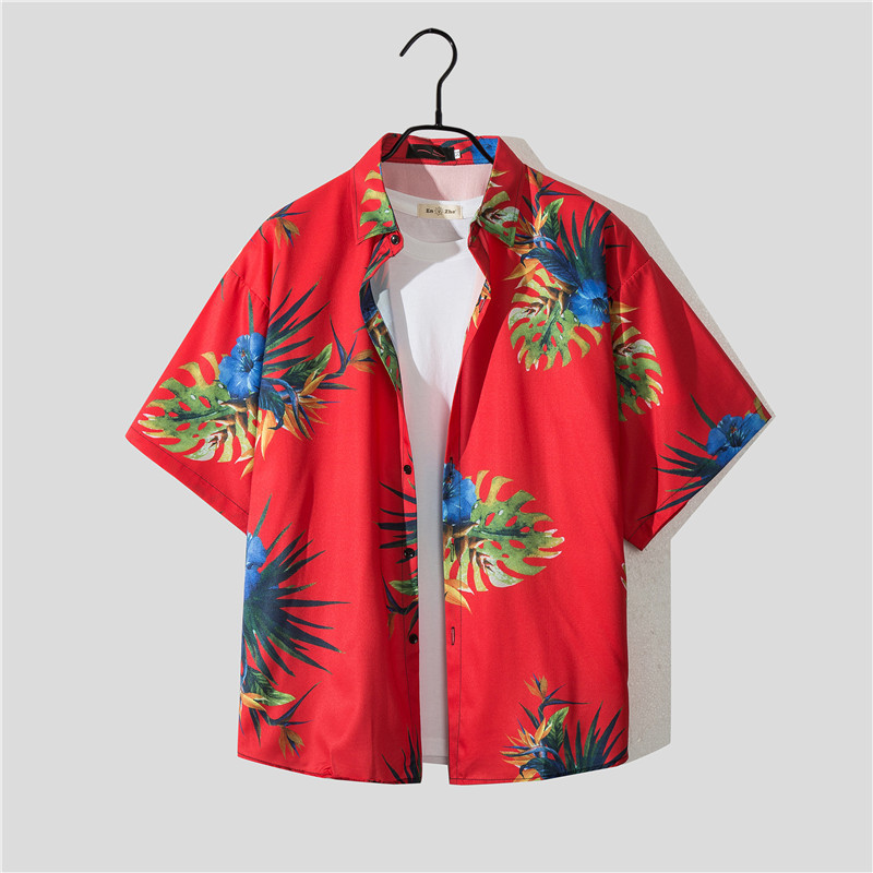 비치 셔츠 정장 남성용 산야 여행 하이난 섬 의류 하와이 대형 꽃 셔츠 느슨한 반팔 속건 의류