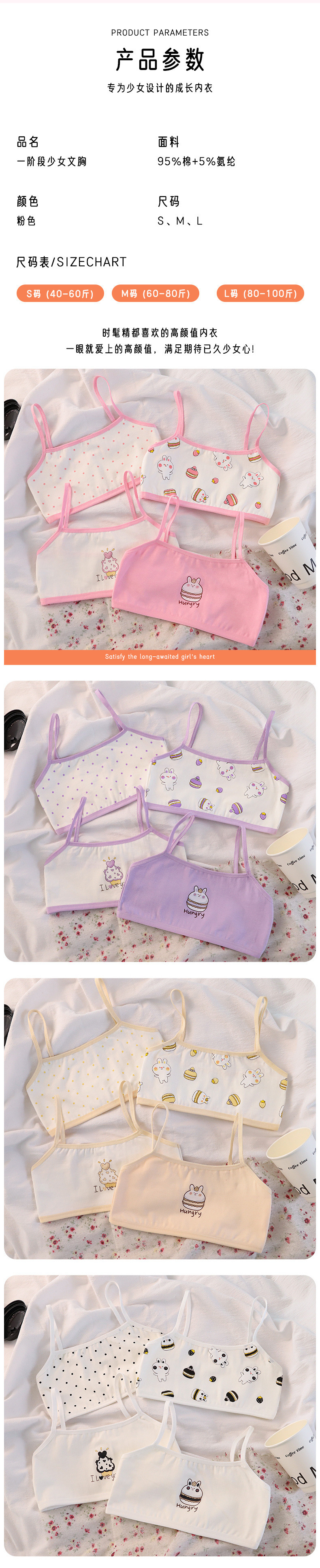 여아 발달기 속옷, 여아, 초등학생, 중학생, 소녀, 서스펜더, 튜브탑 6-13
