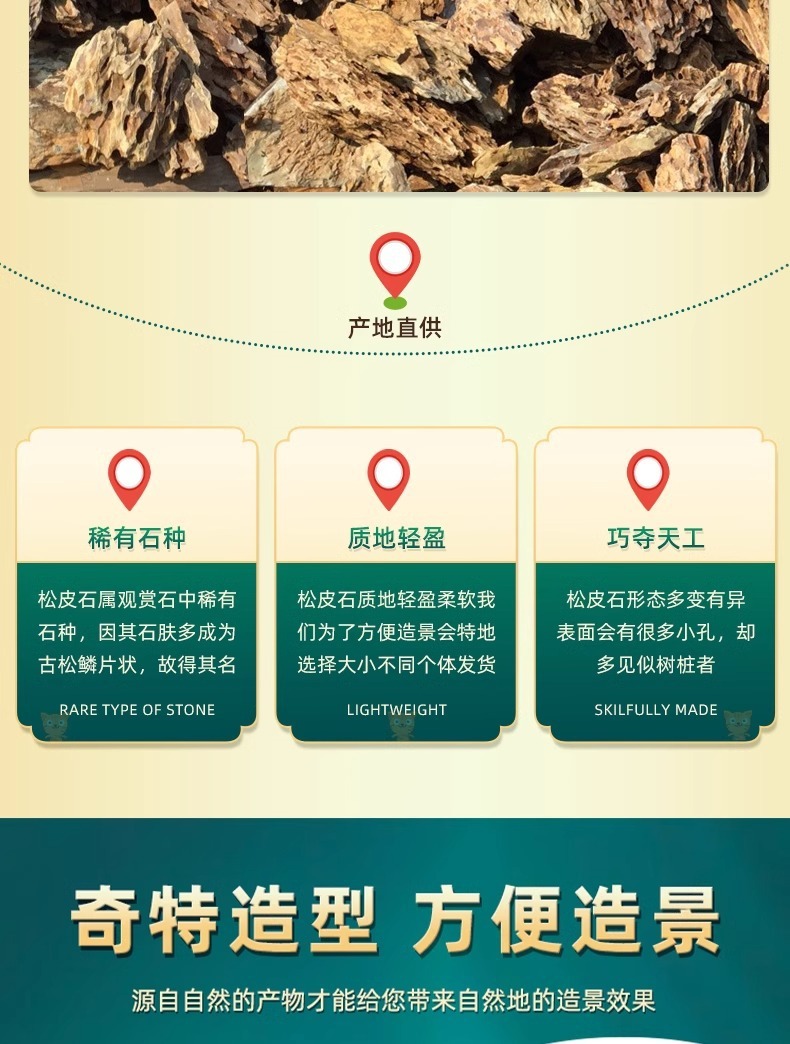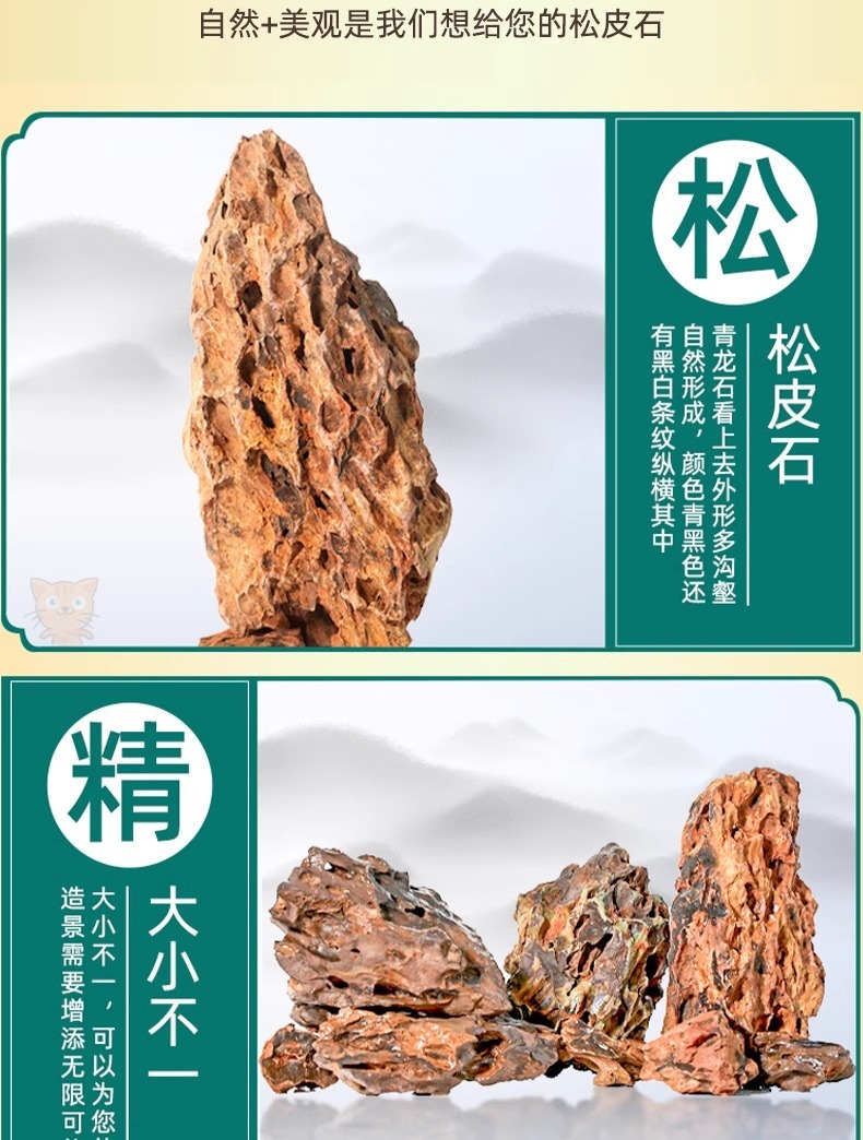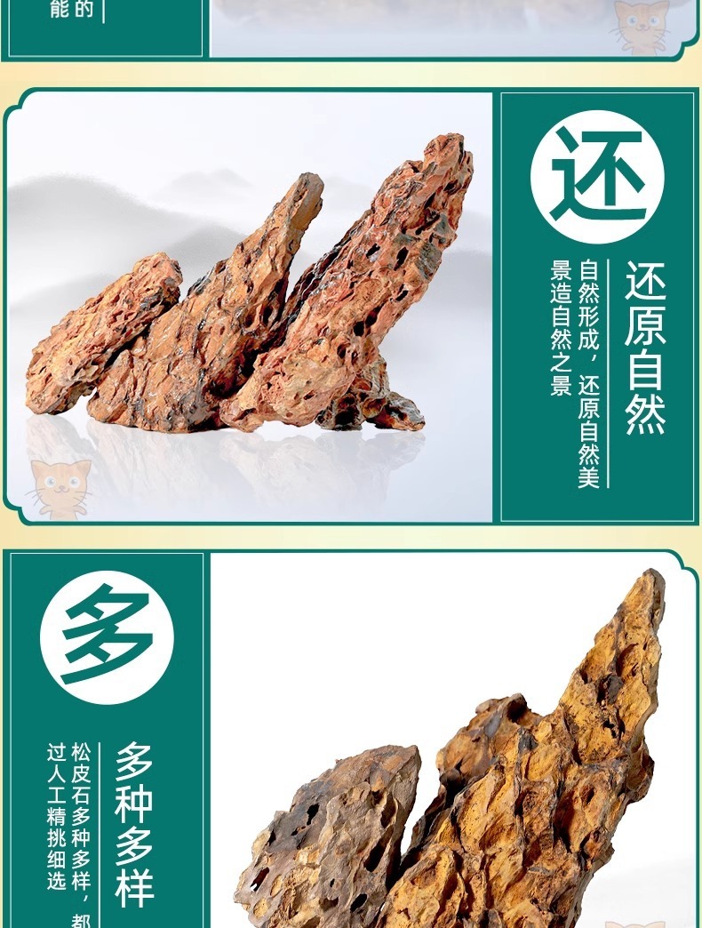 순수 천연 소나무 껍질 자갈 재료 패키지 물고기 탱크 조경 마이크로 풍경 작은 조각 원래 자연 다공성 돌 가짜 언덕스토어 가기