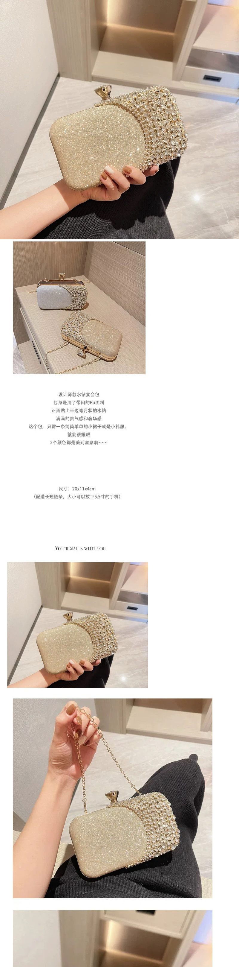고급 연예인 다이아몬드 박힌 가방 연회 드레스 클러치 백 이브닝 백 웨딩 신부 들러리 핸드백 여성용 작은 가방 유행스토어 가기