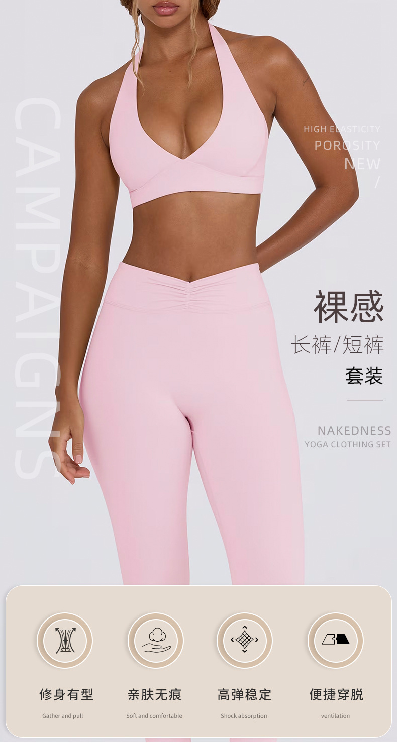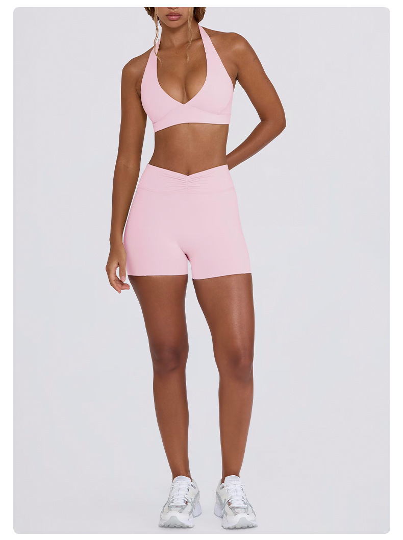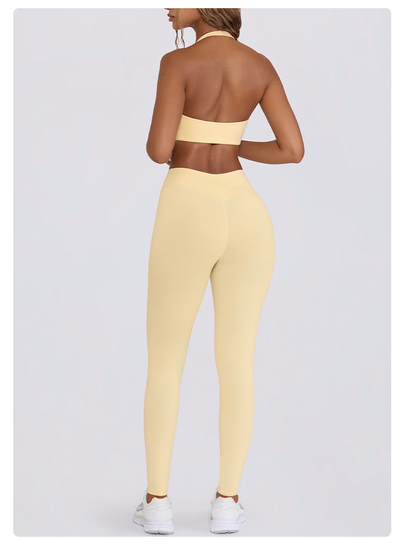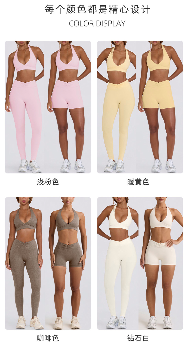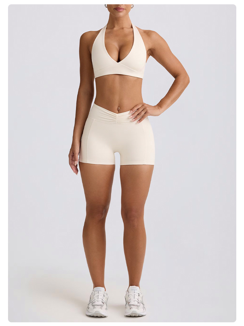 힙업, 복부보정, 슬림 효과가 있는 러닝 피트니스 반바지, 홀터넥 스포츠 브라, 요가복 세트 (여성용)스토어 가기