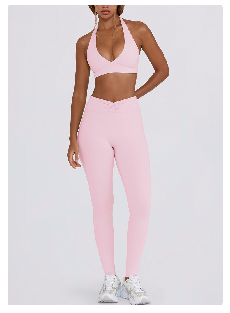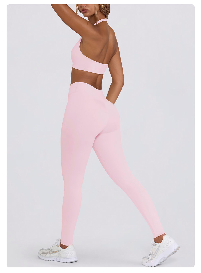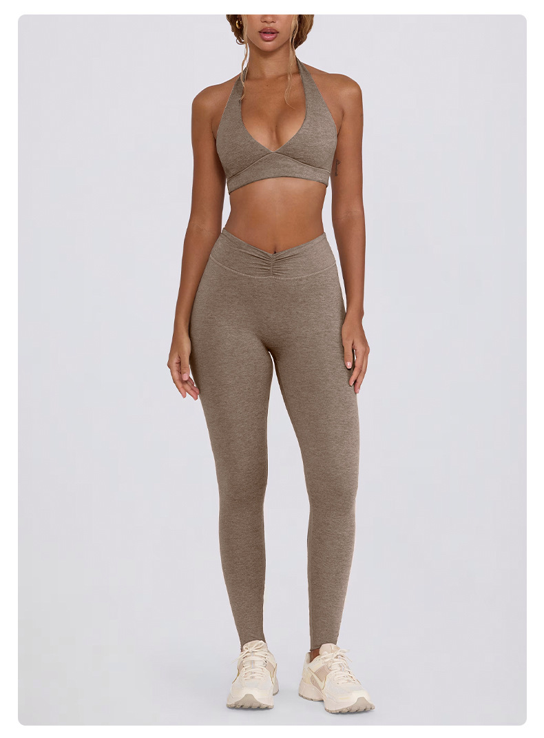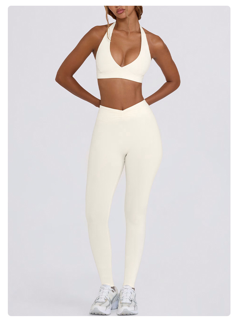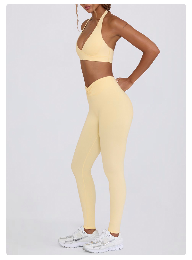 힙업, 복부보정, 슬림 효과가 있는 러닝 피트니스 반바지, 홀터넥 스포츠 브라, 요가복 세트 (여성용)스토어 가기