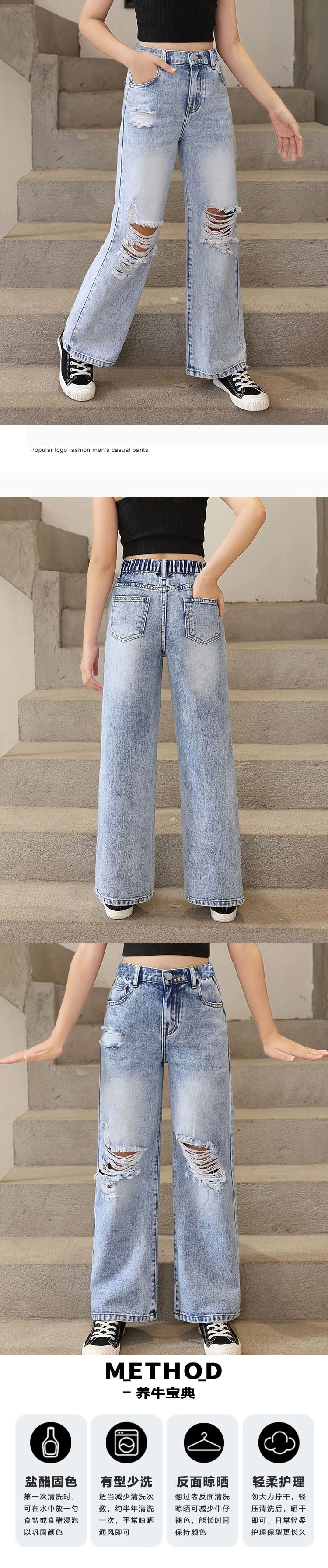 Amazon AliExpress는 청소년 소녀를 위한 고급 품질의 2025년 새로운 찢어진 눈송이 워시 와이드 팬츠를 독점적으로 제공합니다.
