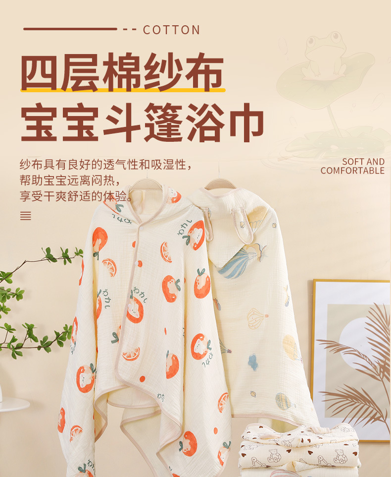 영유아를 위한 부드럽고 통기성이 뛰어난 4겹 면 거즈 목욕 가운 및 망토 제조업체 도매 어린이를 위한 건조하고 편안한 목욕 스커트스토어 가기