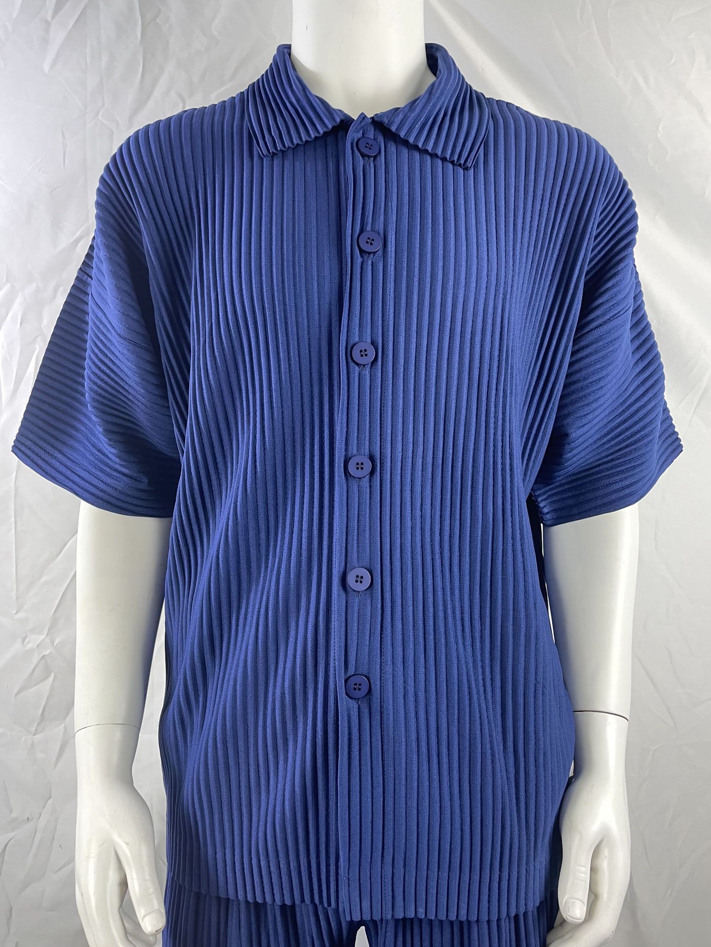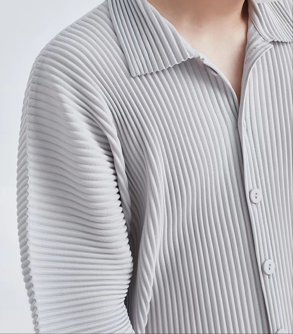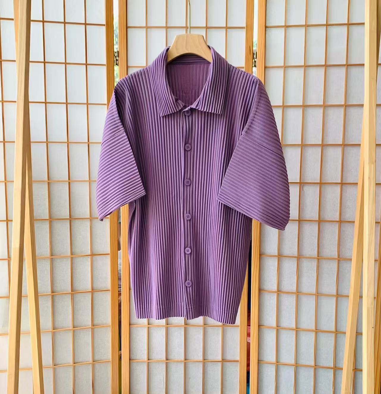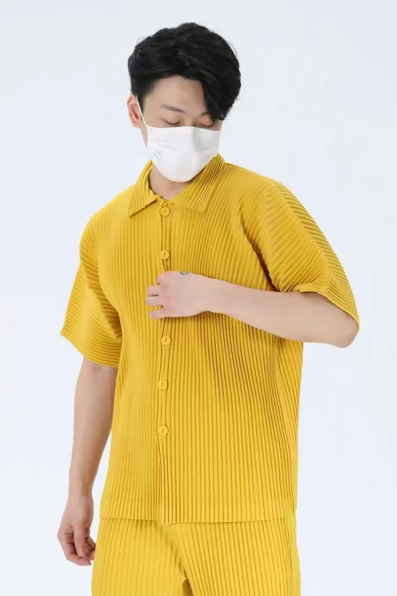 미야케 이쿠 플리츠 남성 반팔 셔츠 플리츠 남성 탑 반팔 여름 루즈 일본 재킷 JJ122