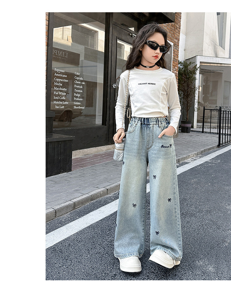 여아 청바지 2025 봄 가을 새로운 스타일 아동용 스트레이트 아우터 팬츠 큰 아동용 봄 루즈 와이드 팬츠스토어 가기