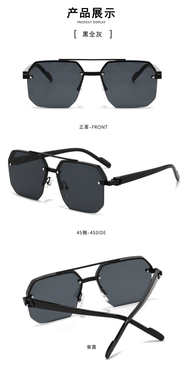 跨境墨镜新款男生开车大脸显瘦驾驶防紫外线高级半框太阳镜方框