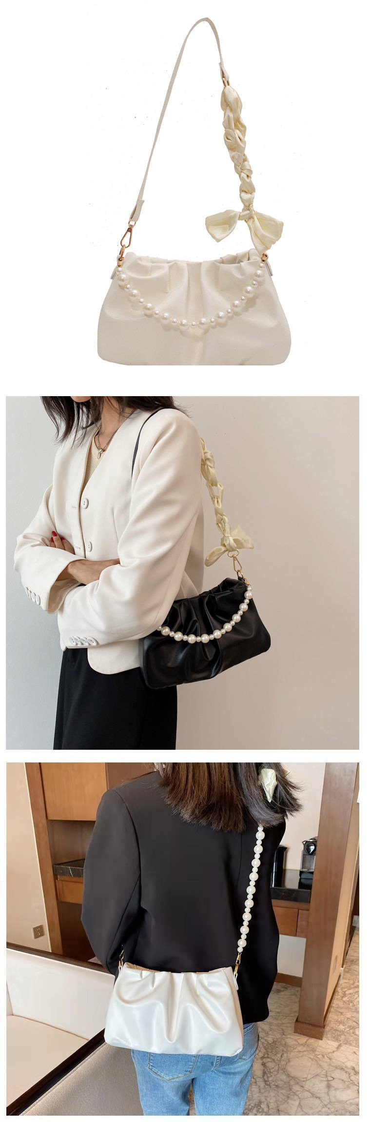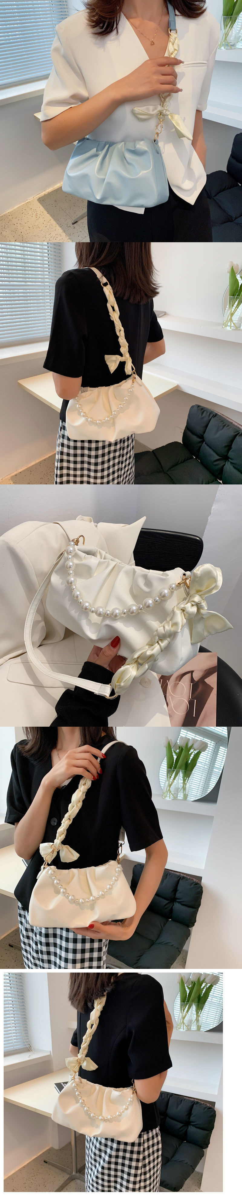 여성용 주름 작은 가방 클라우드 겨드랑이 어깨 크로스 바디 백 진주 핸드백