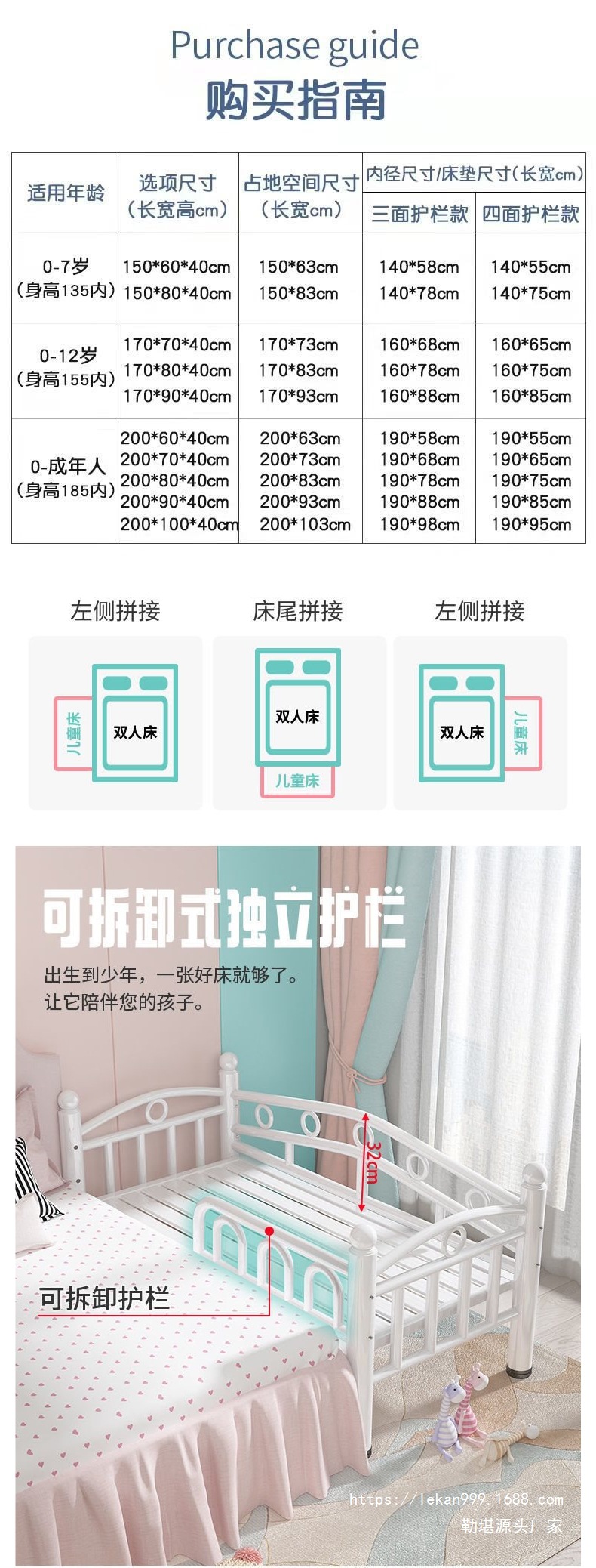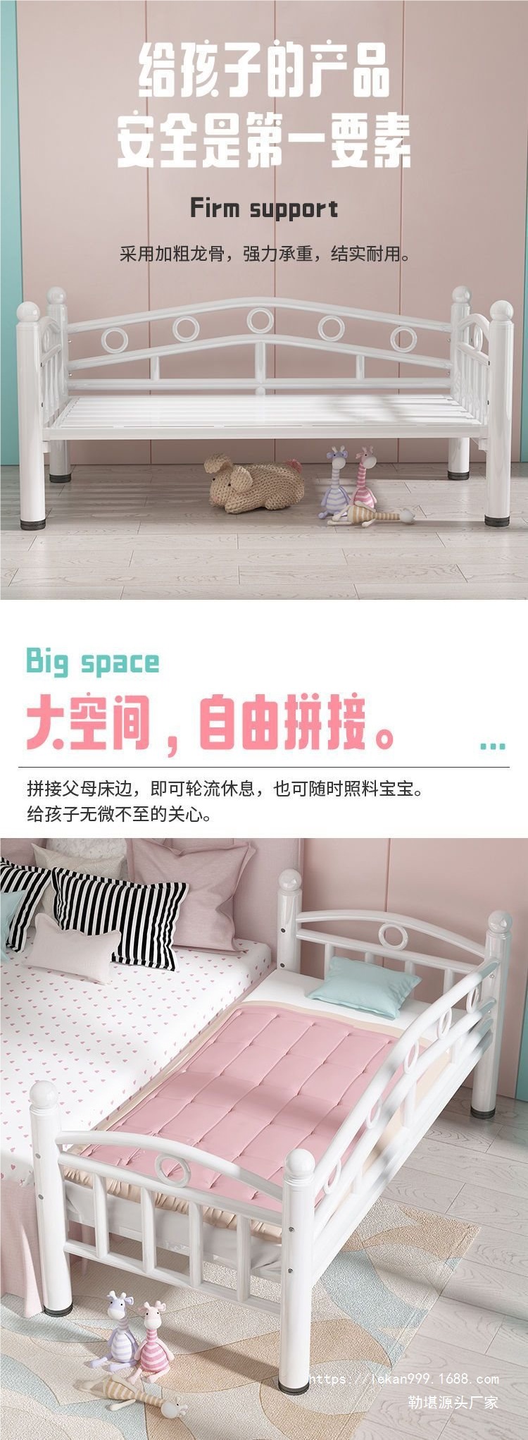가드레일이 있는 접합 침대 어린이 침대 철제 아기 소년 소녀 공주 침대 싱글 침대 유아용 침대 확장 침대 옆 침대스토어 가기