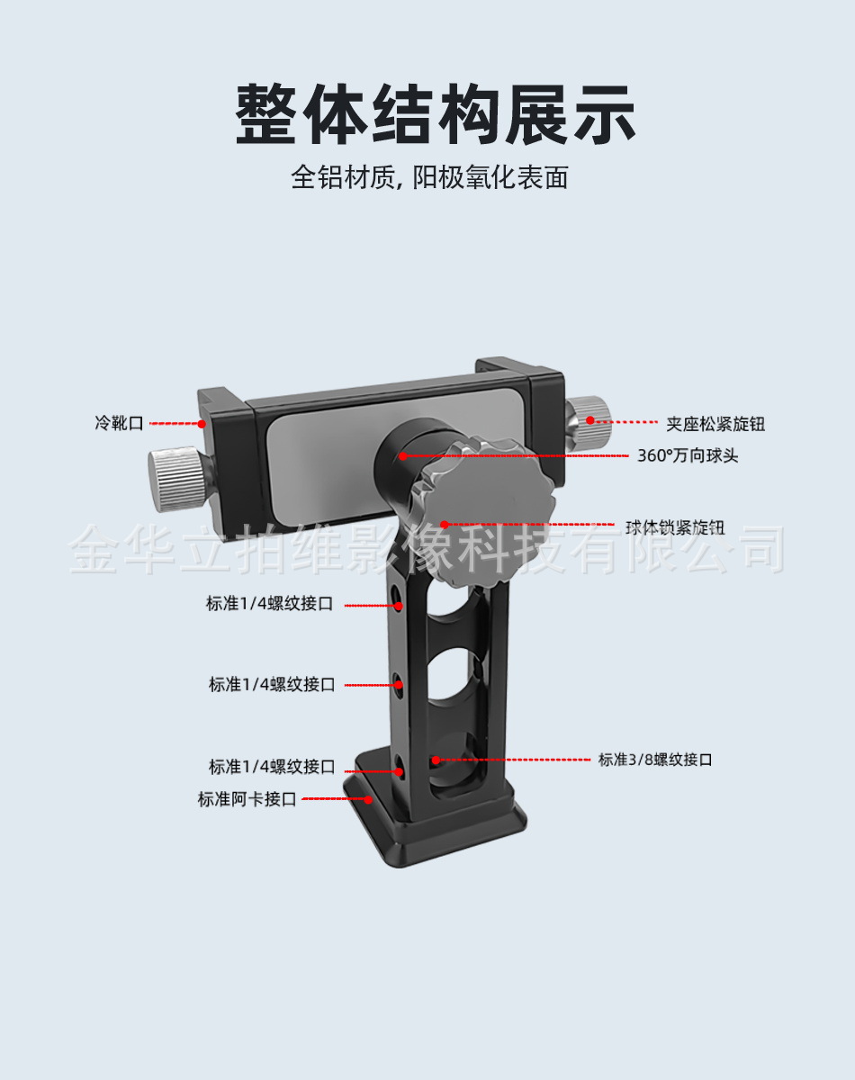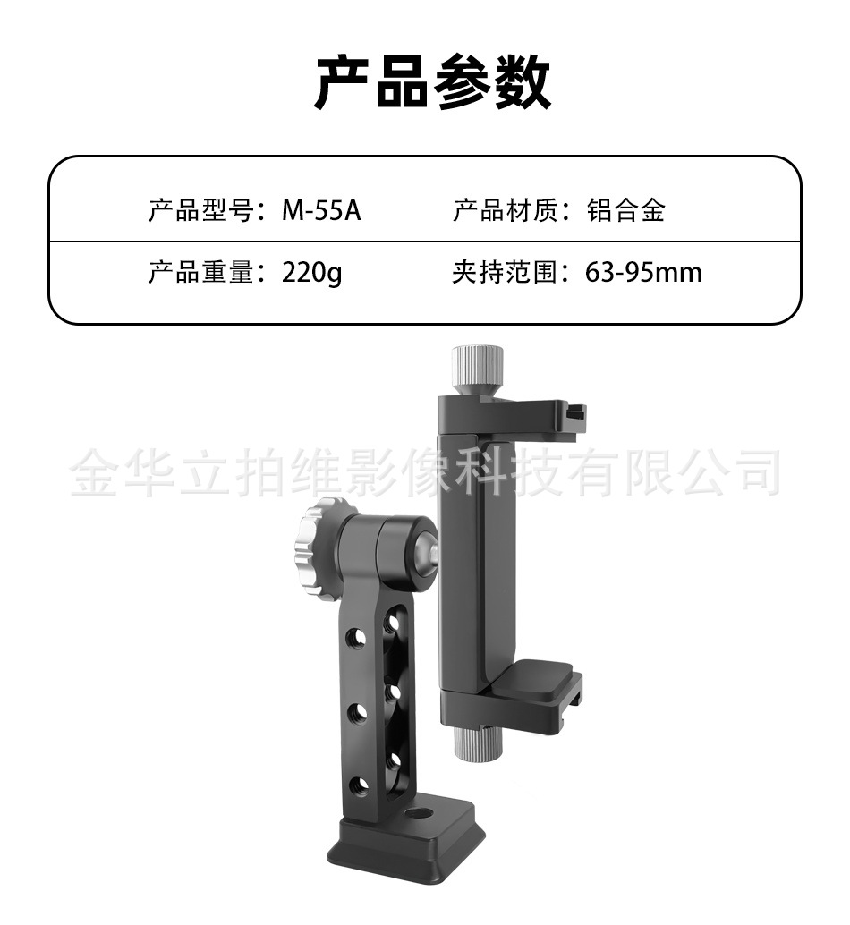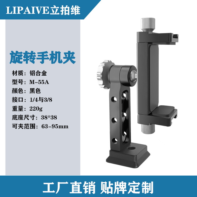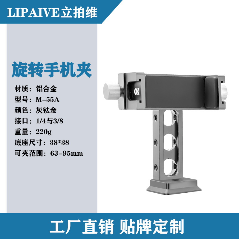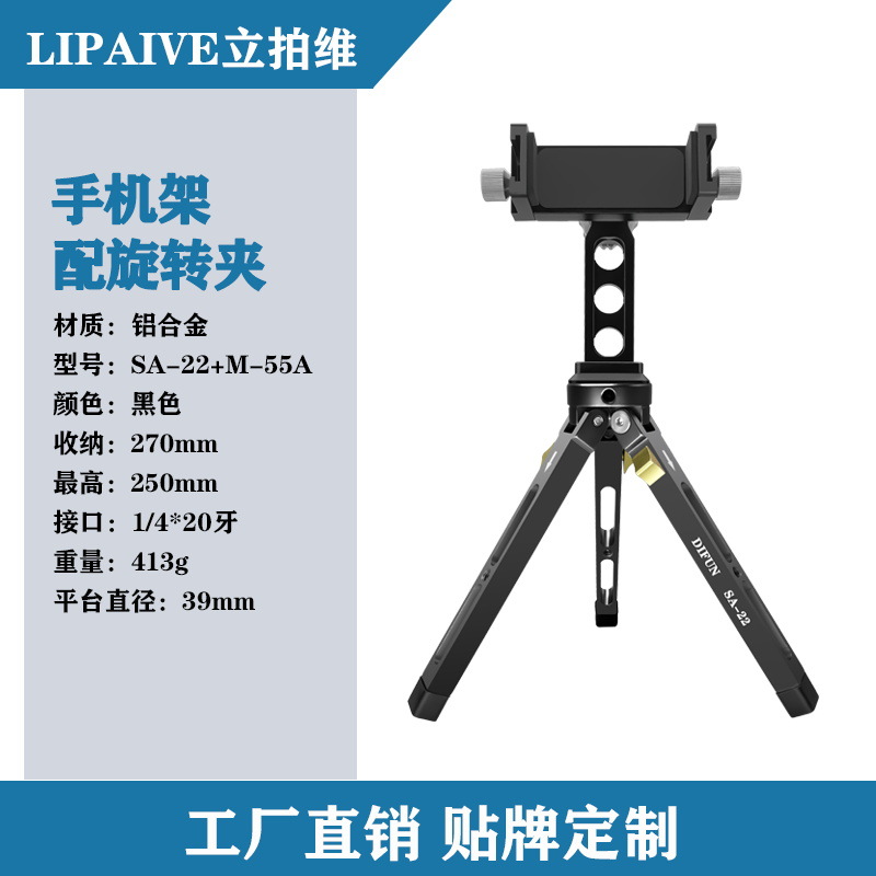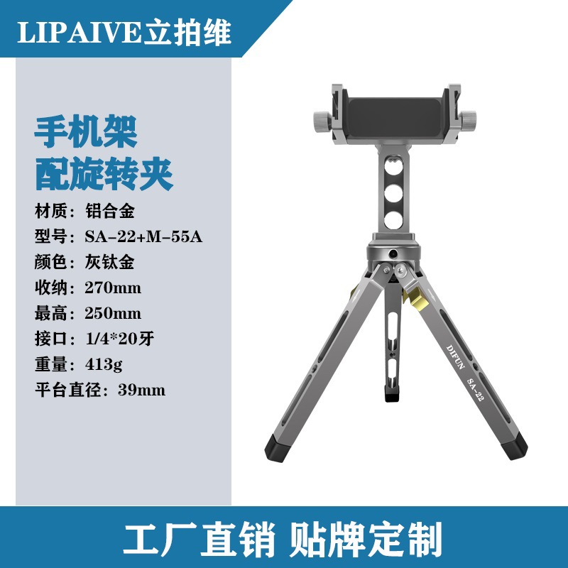 공장 직판 중성형 M-55A 금속 회전 휴대폰 클립 알루미늄 합금 데스크탑 삼각대 사진 촬영 스탠드