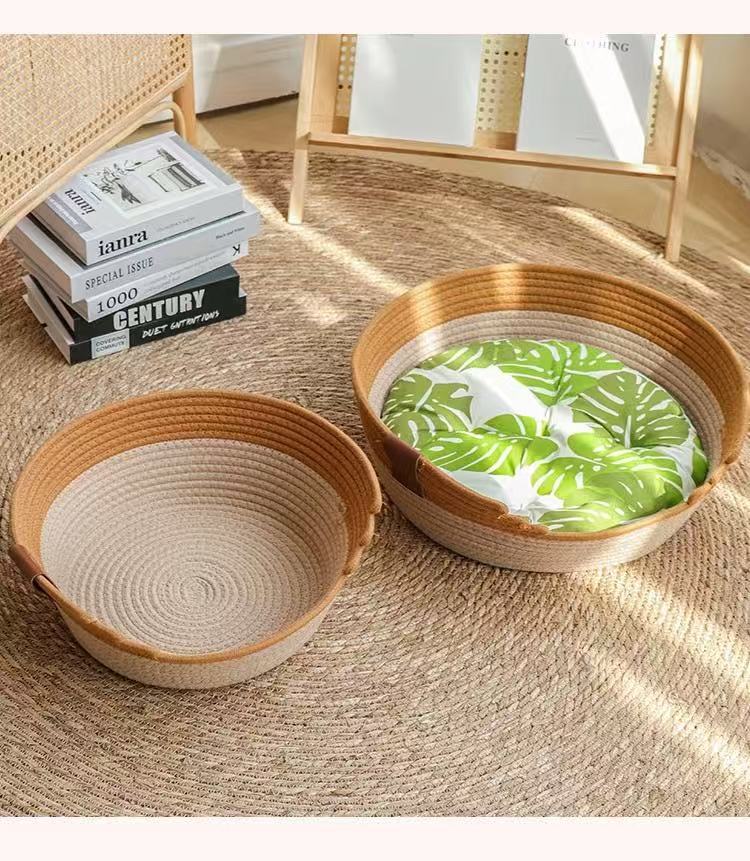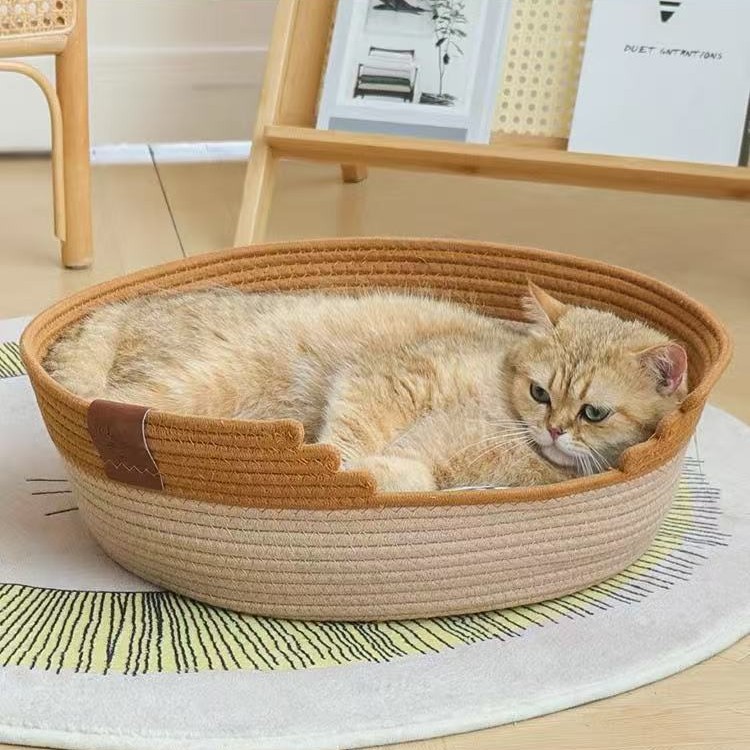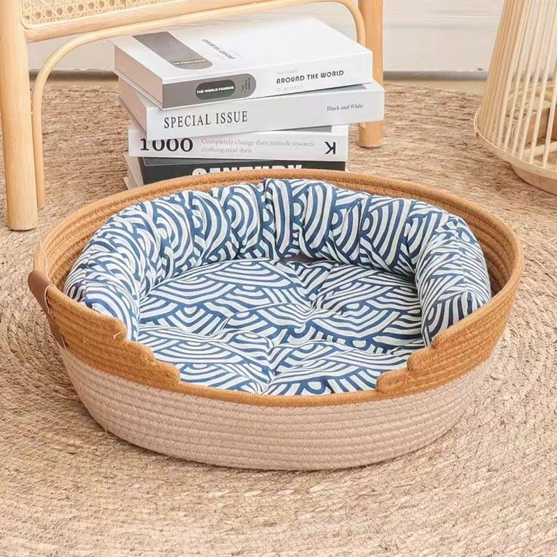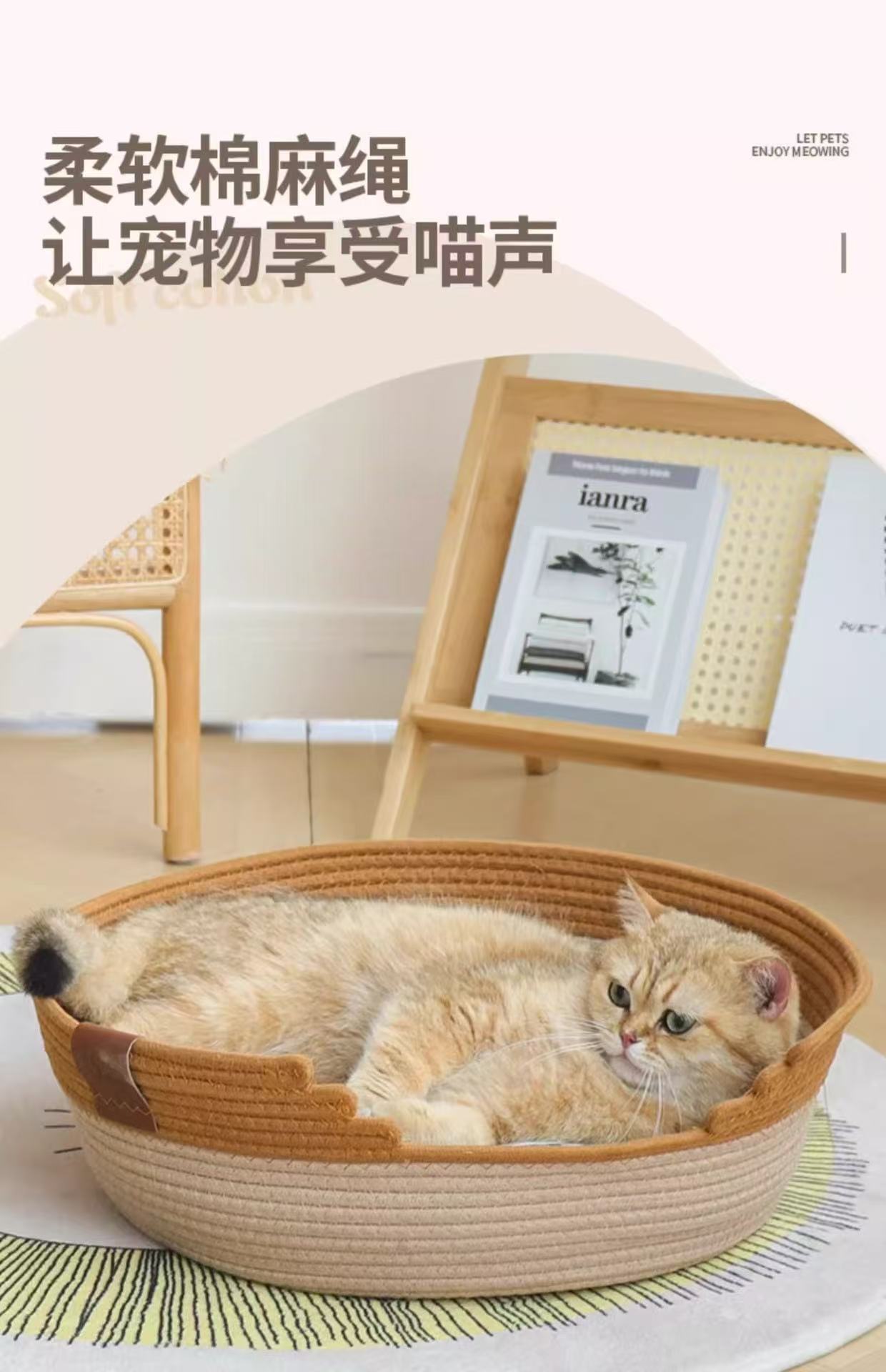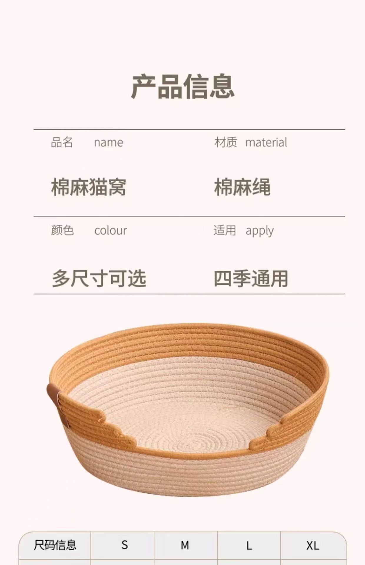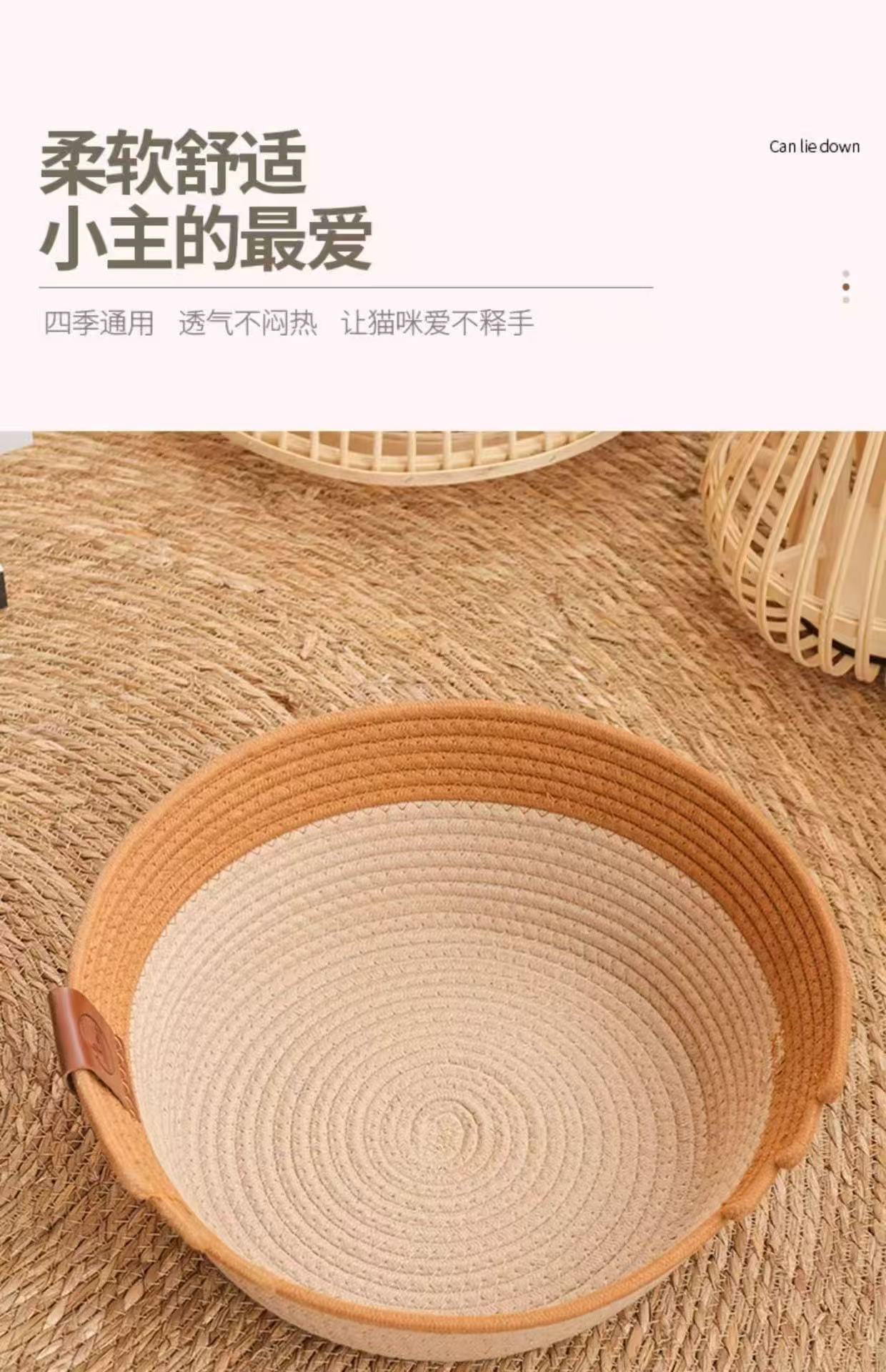 사계절 사용 가능한 삼베 등나무로 짠 고양이 둥지, 인터넷 연예인 인기 여름 고양이와 강아지 수면용품, 애완동물 침대스토어 가기