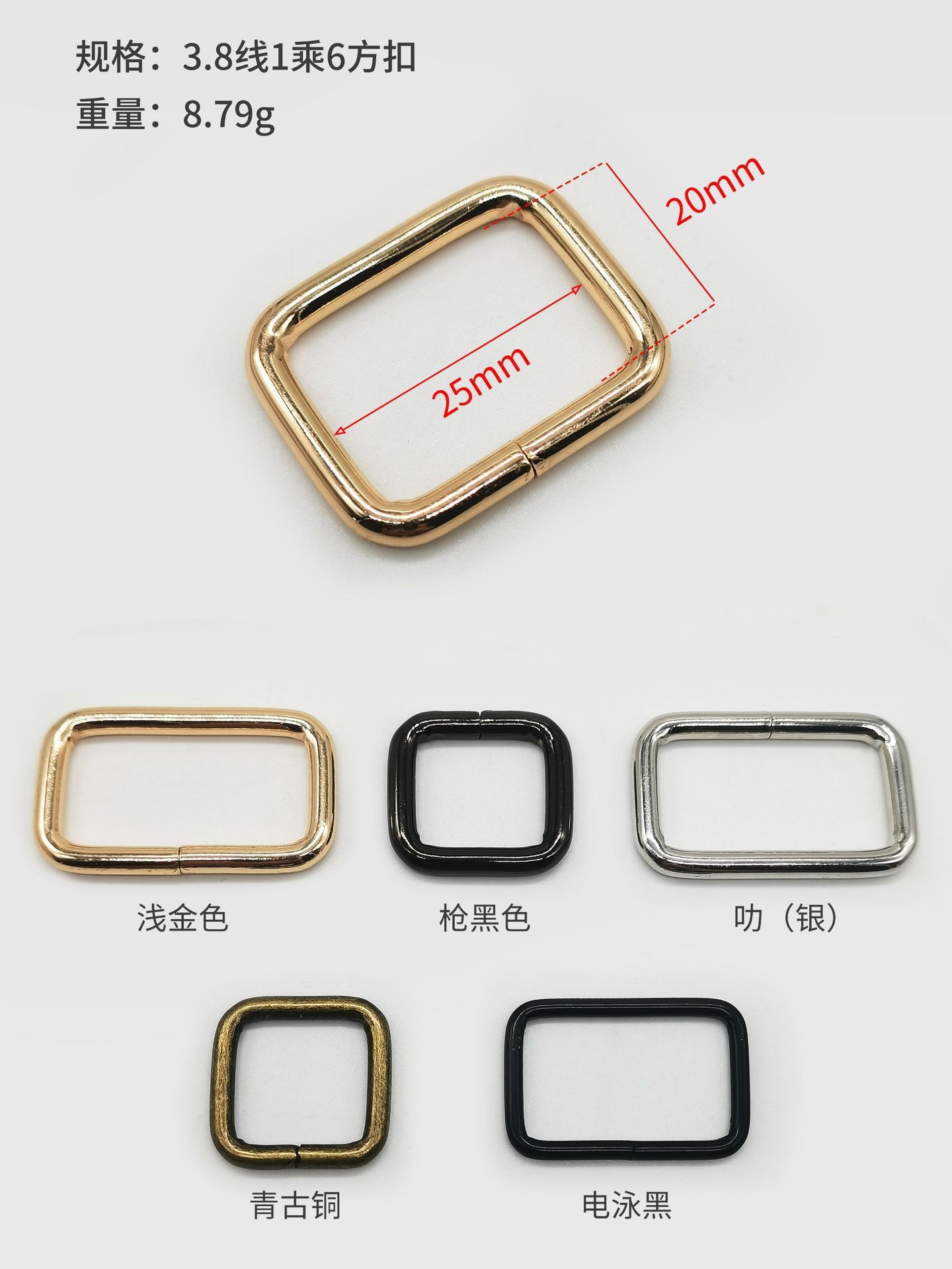 铁线方扣尺寸及颜色图