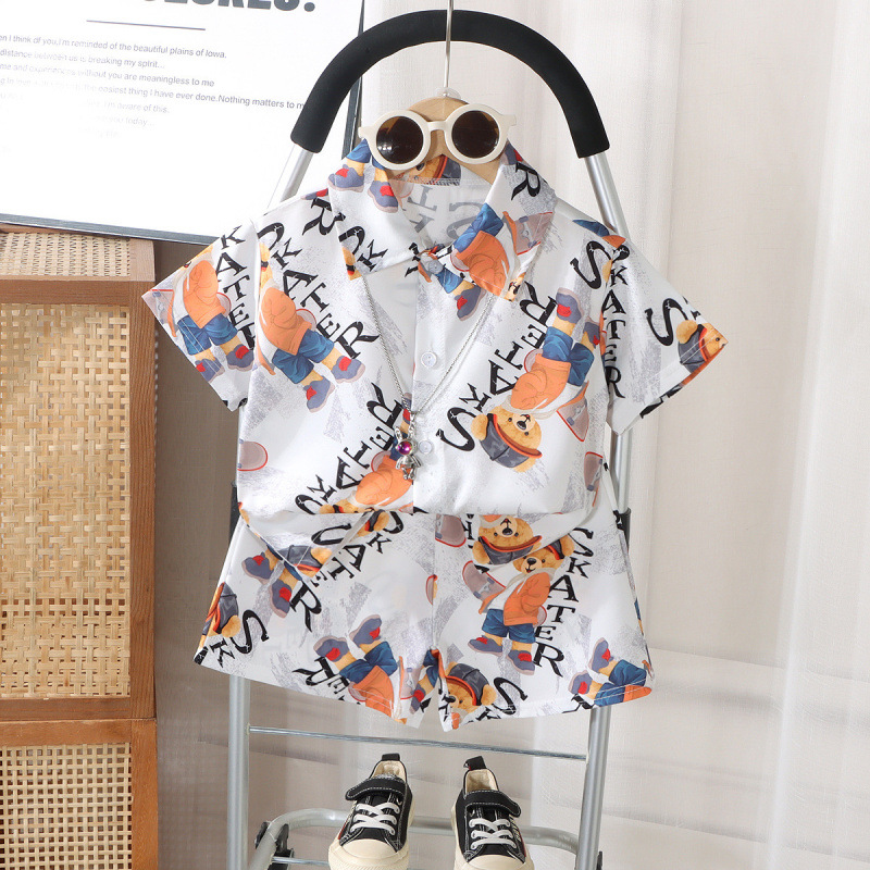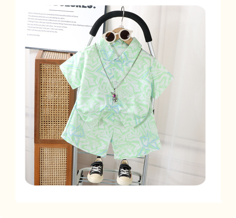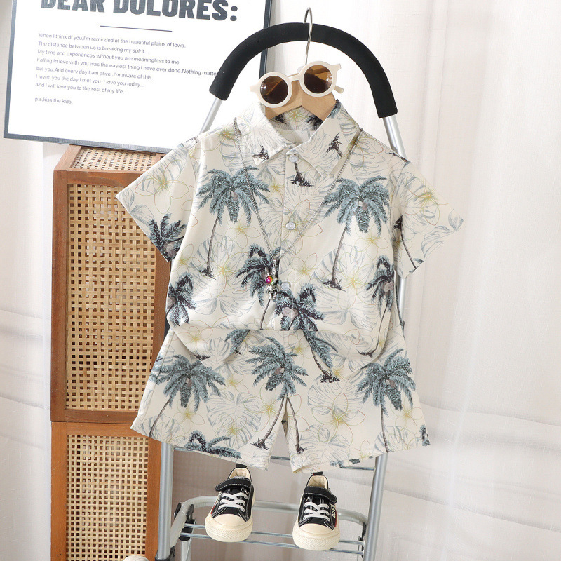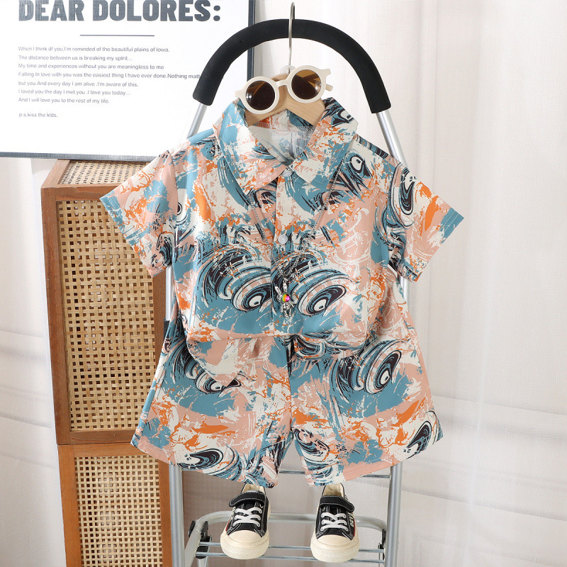 타이 염색 어린이 여름 패션 전체 인쇄 홍콩 스타일 셔츠 정장 소년 유행 패션 한국 스타일 반팔스토어 가기