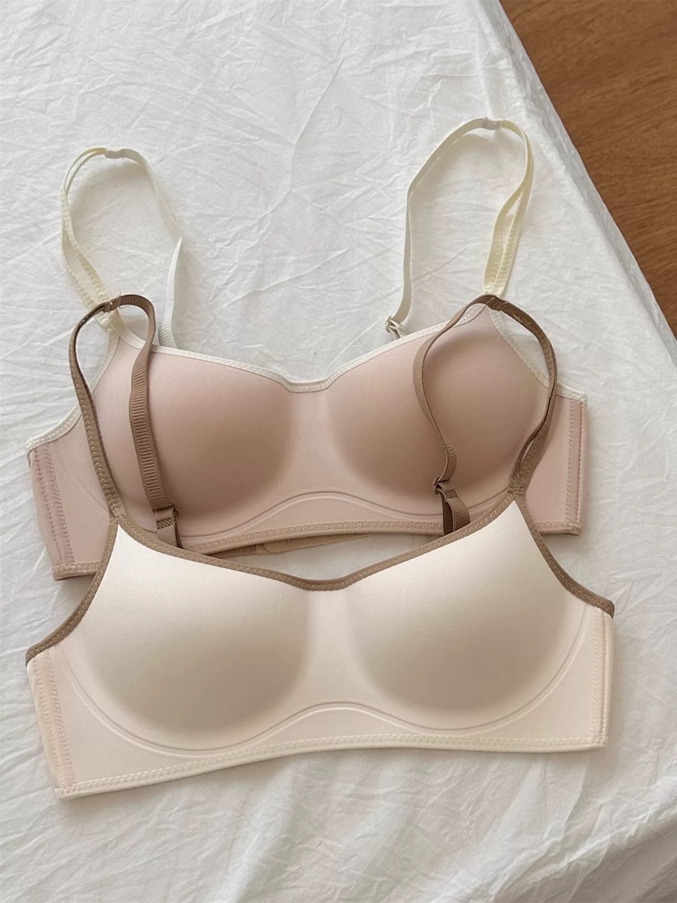 작은 가슴을 가진 여성을 위한 국경 간 여름 얇은 대비 색상 이음매 없는 속옷, 큰 가슴, 작은 가슴, 푸쉬업 얇은 와이어 프리 브라스토어 가기