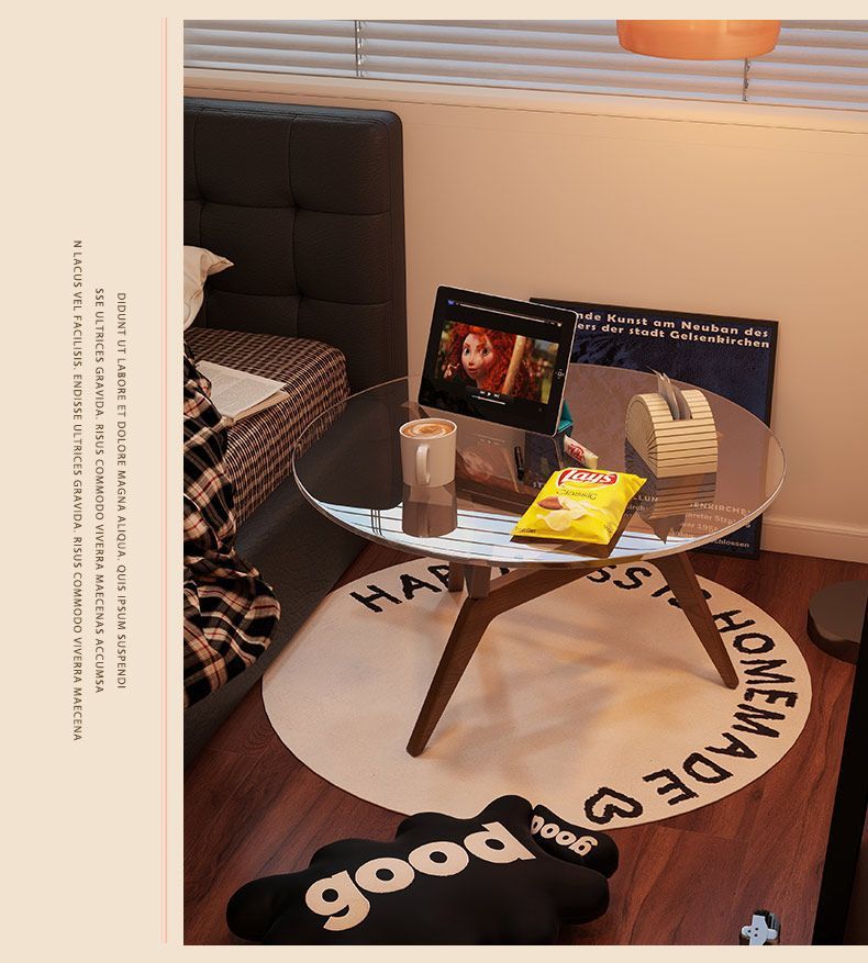 중세 커피 테이블, 거실, 가정용 소형 유리 커피 테이블, 발코니, 심플 모던 원형 테이블, 가벼운 럭셔리 와비사비 스타일스토어 가기