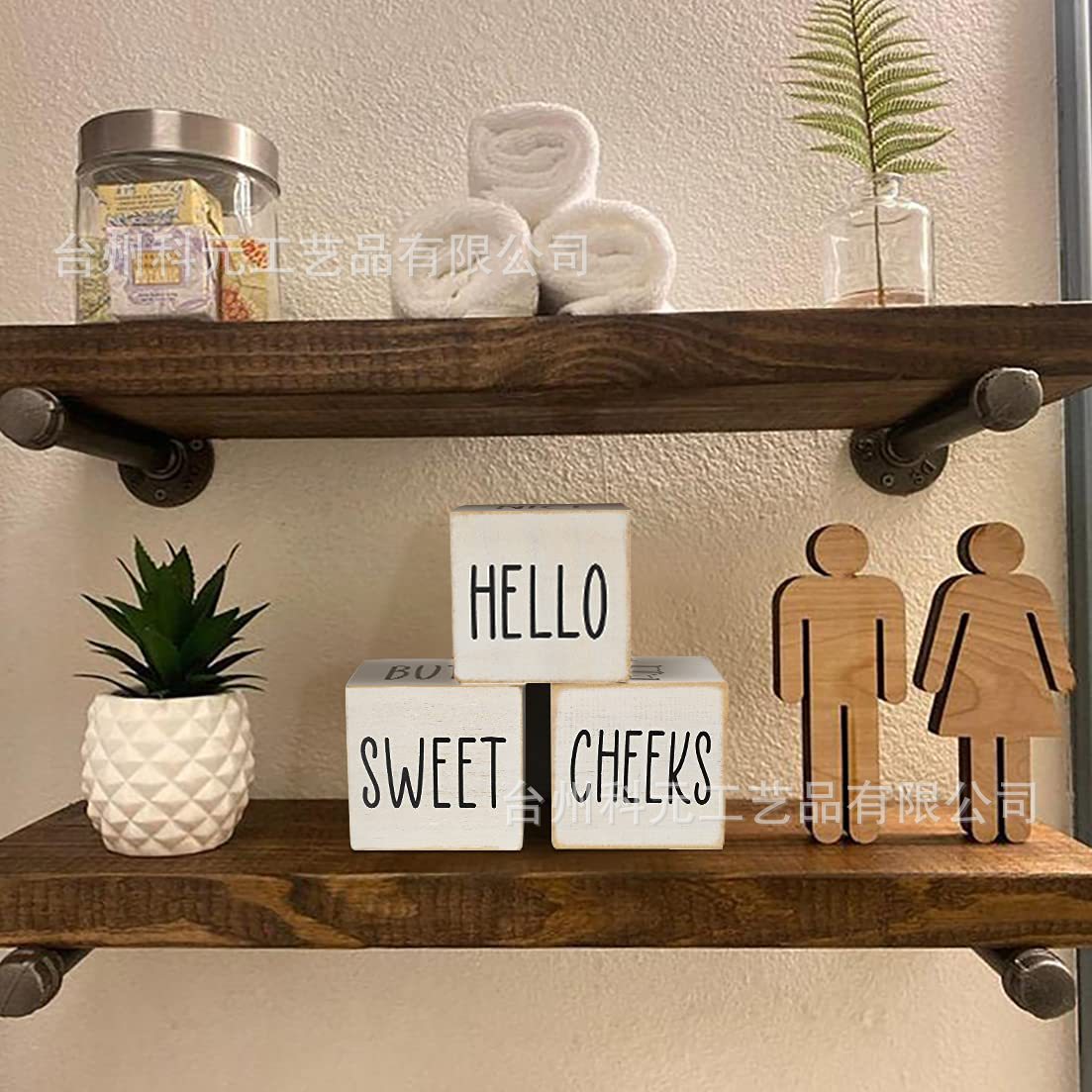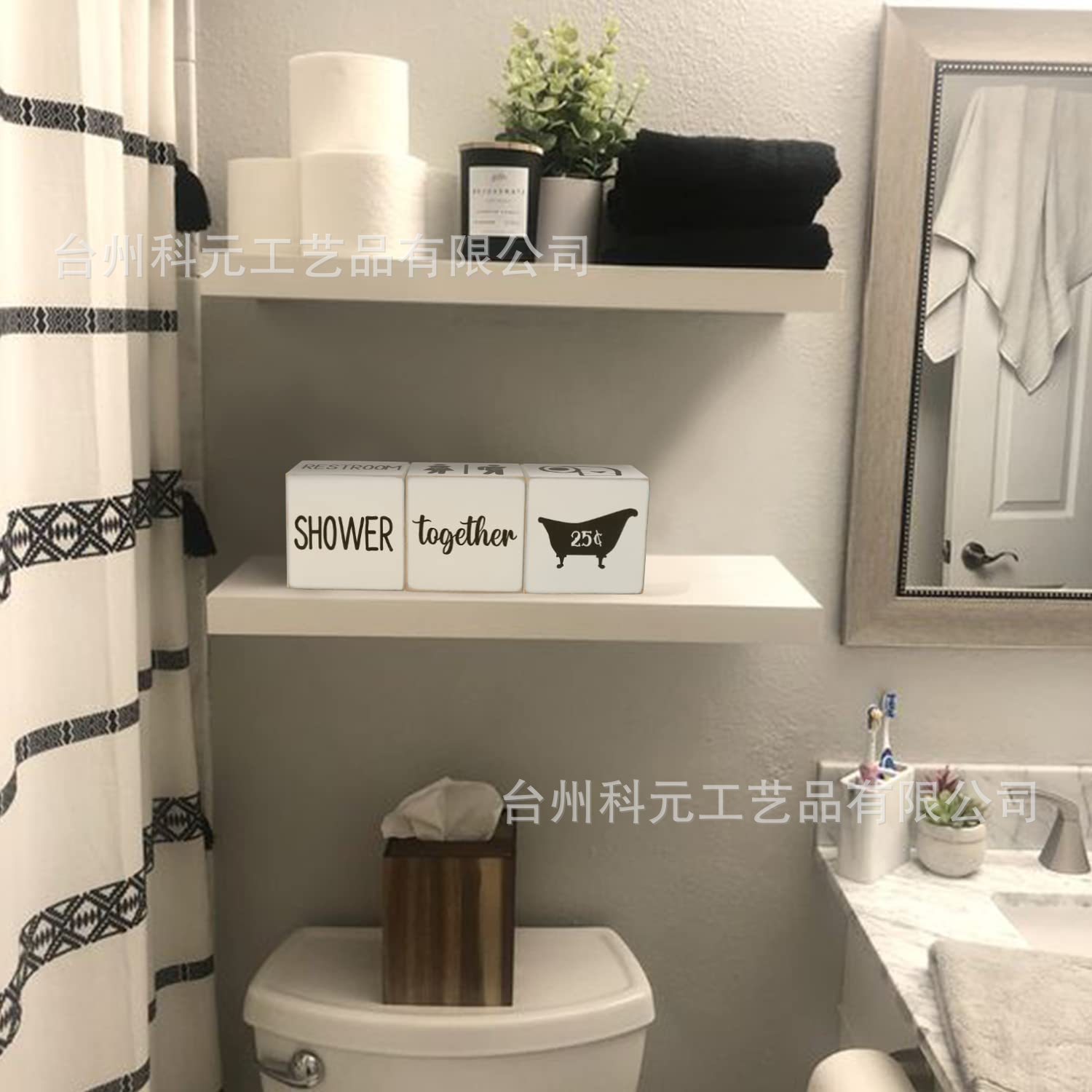 국경 간 새로운 도착 농가 욕실 장식 4면 나무 욕실 블록 귀여운 소박한 나무 공예 상자