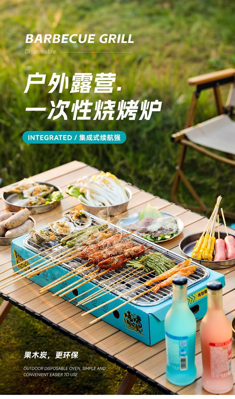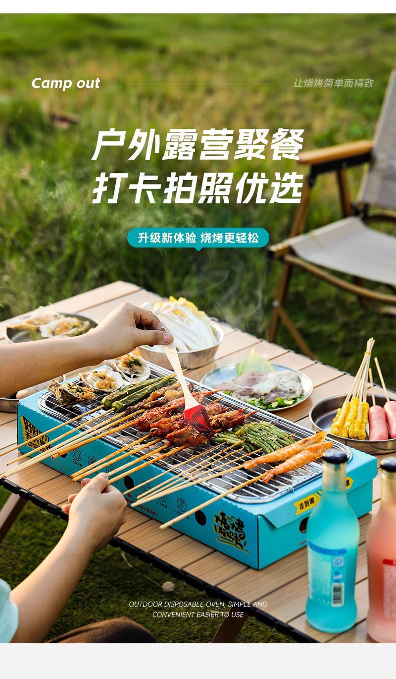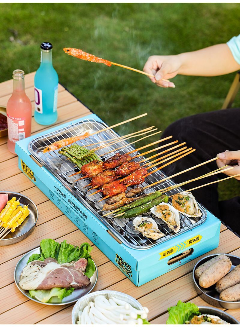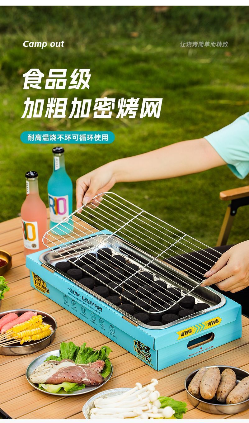 일회용 바베큐 그릴 야외 바베큐 그릴 휴대용 소형 과일 피크닉 스토브 홈 세트 숯 무연 그릴스토어 가기