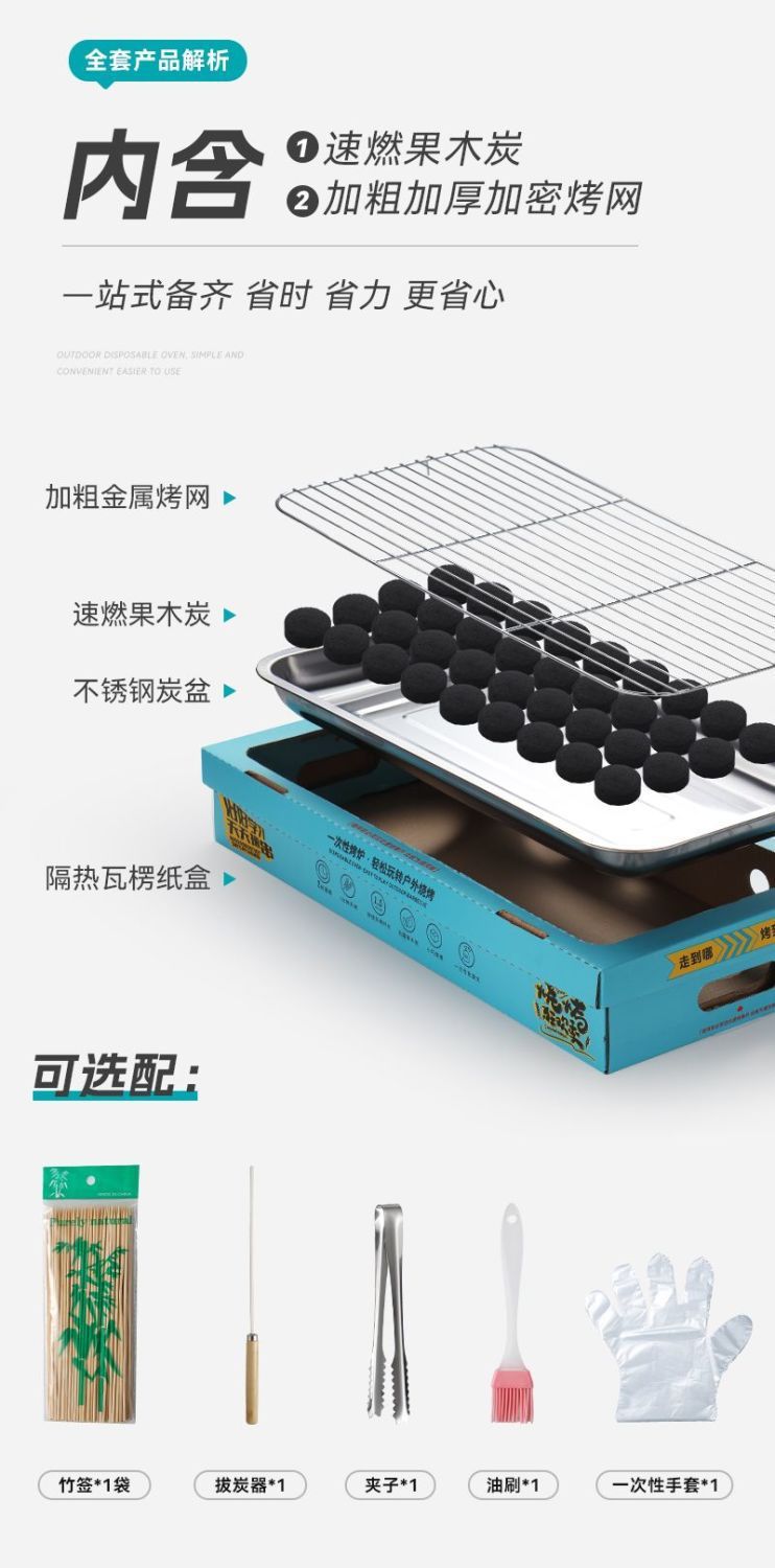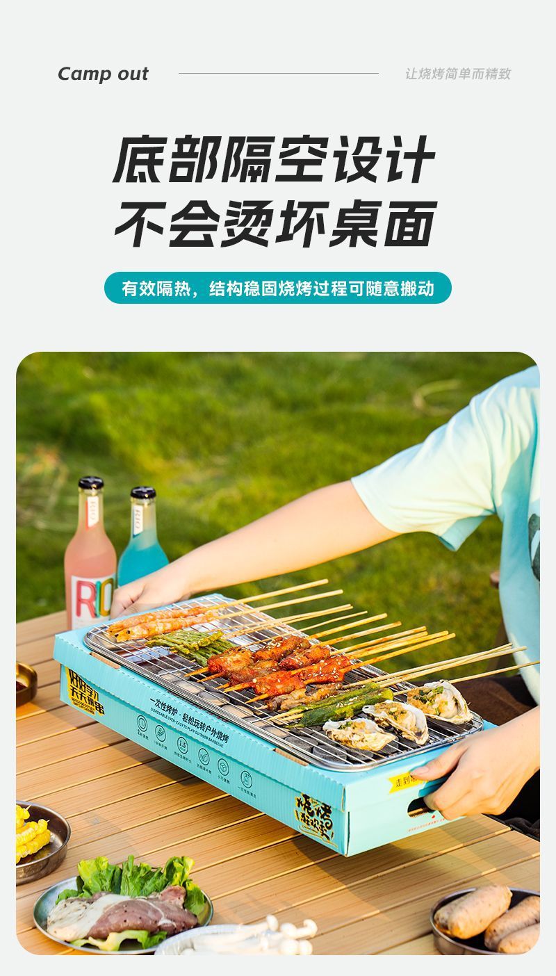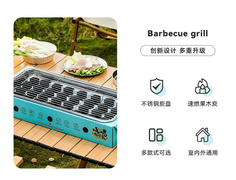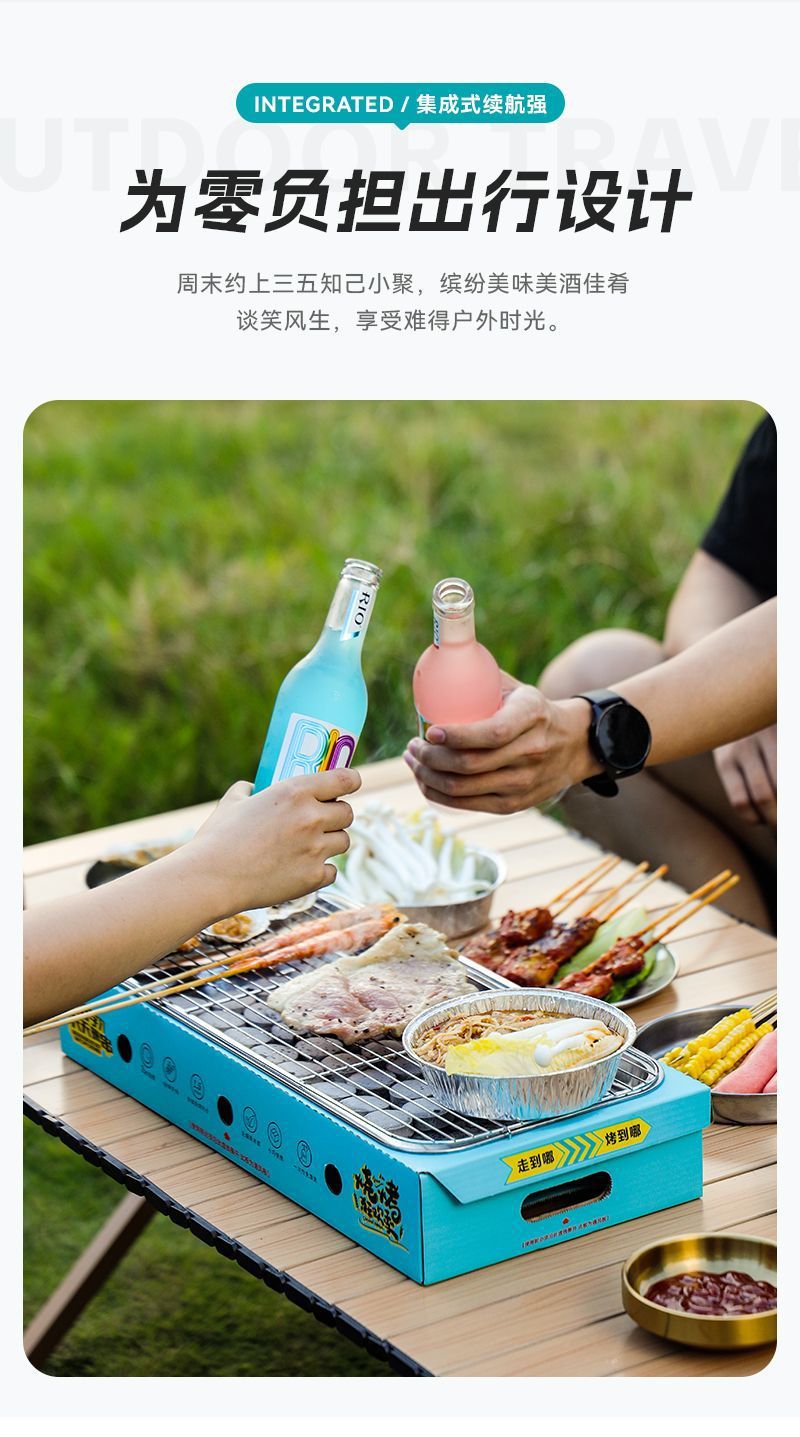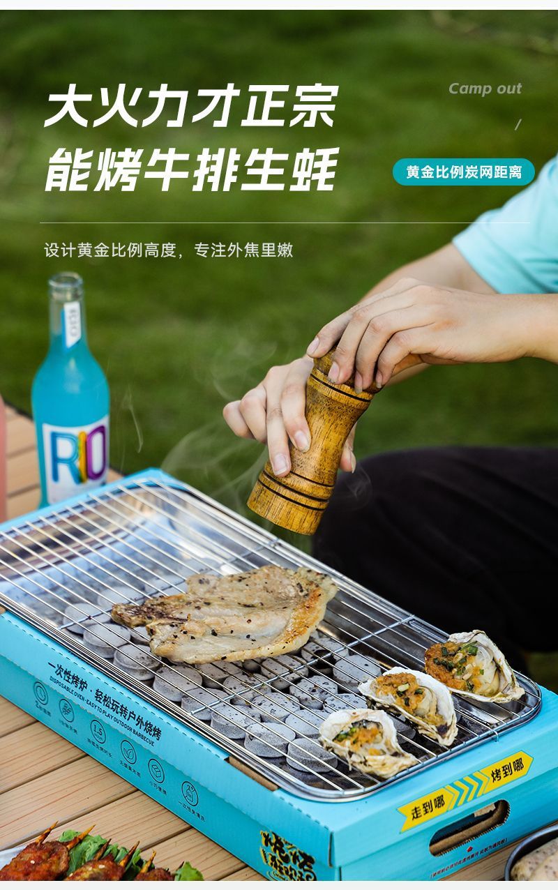 일회용 바베큐 그릴 야외 바베큐 그릴 휴대용 소형 과일 피크닉 스토브 홈 세트 숯 무연 그릴스토어 가기