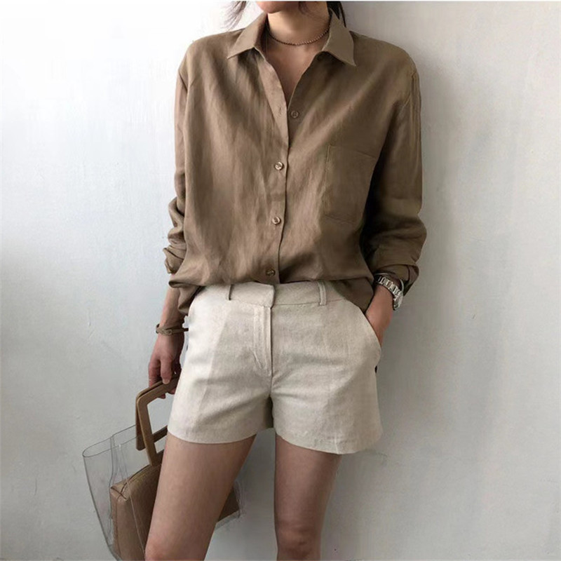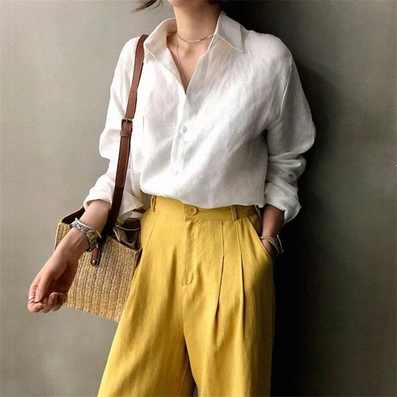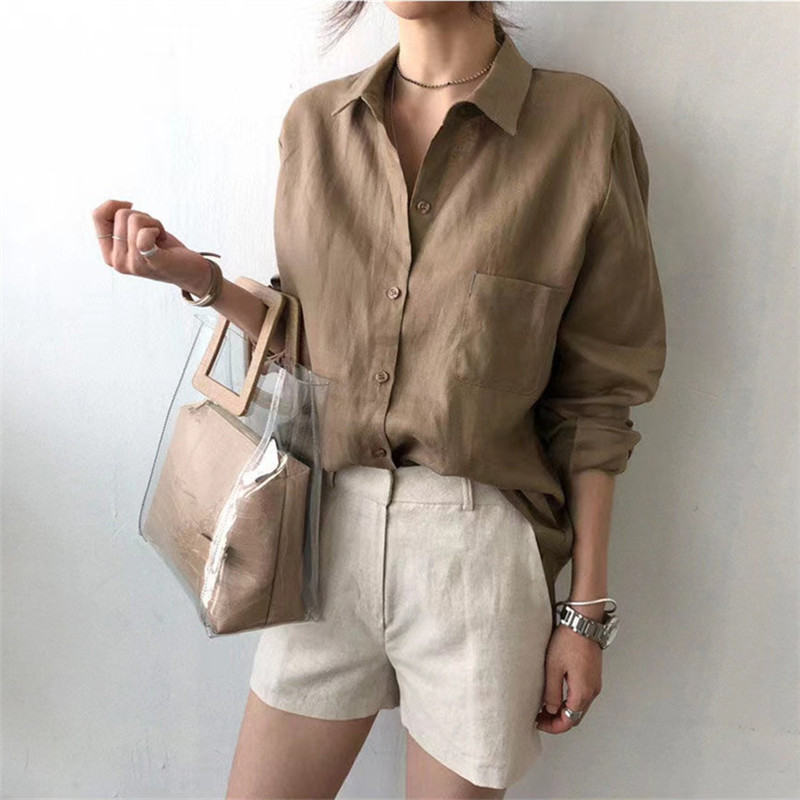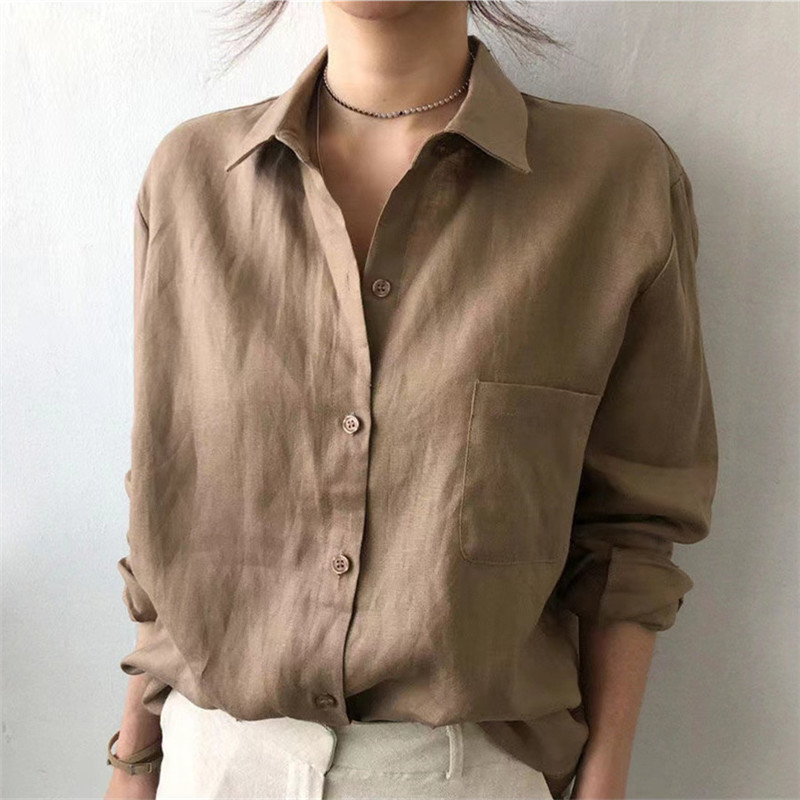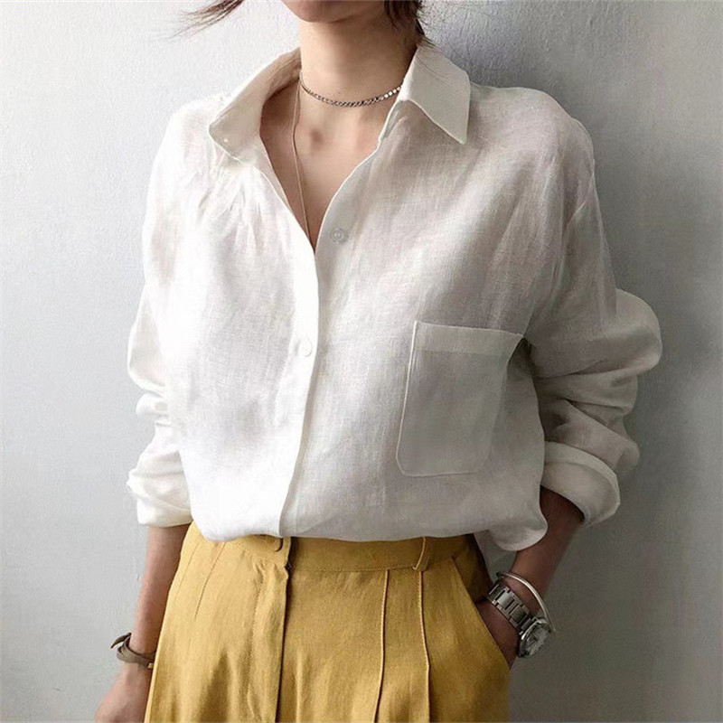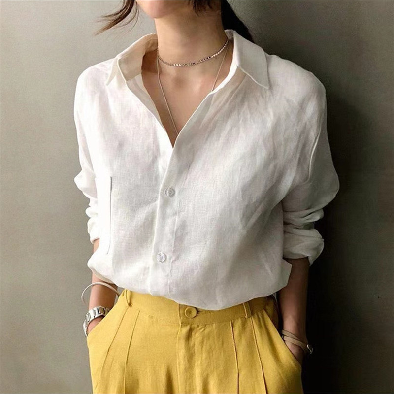 여성을위한 린넨 긴팔 셔츠 여름 새로운 하이 엔드 셔츠 디자인 틈새 루즈 캐주얼 탑스토어 가기