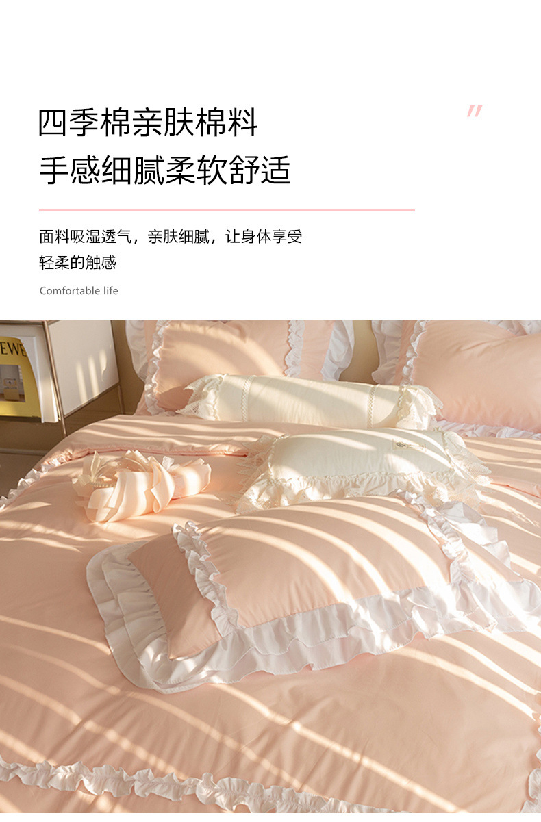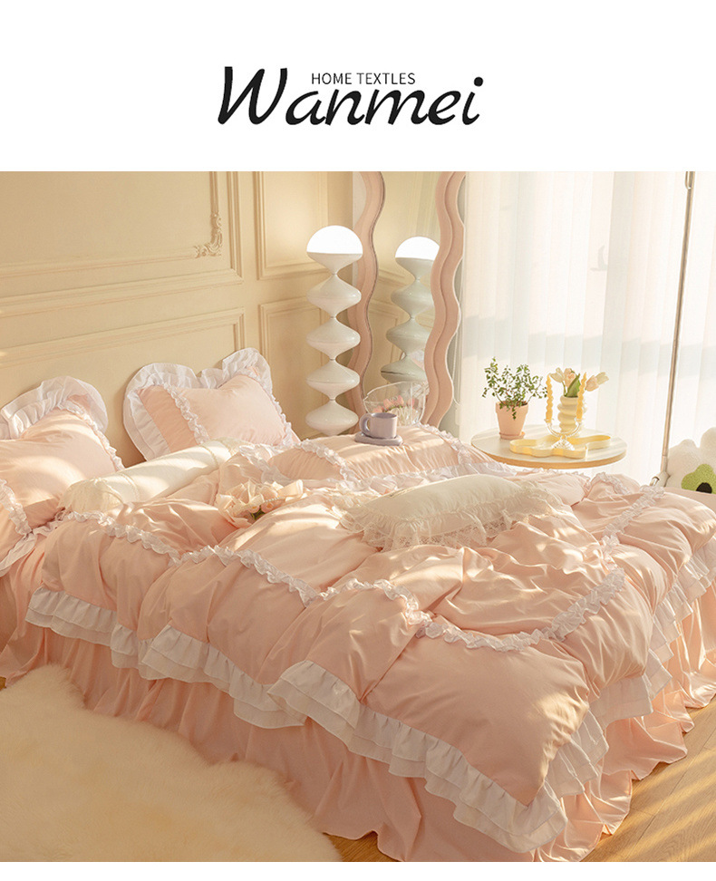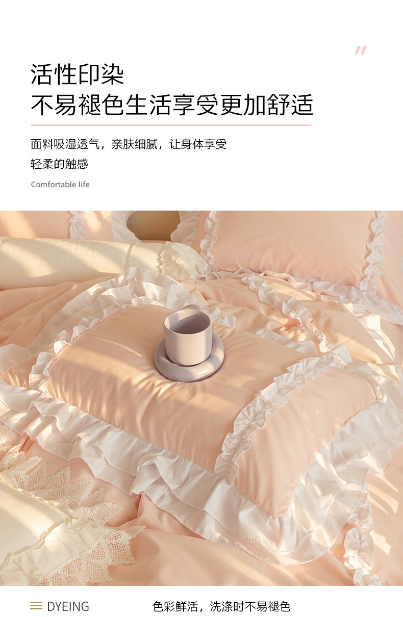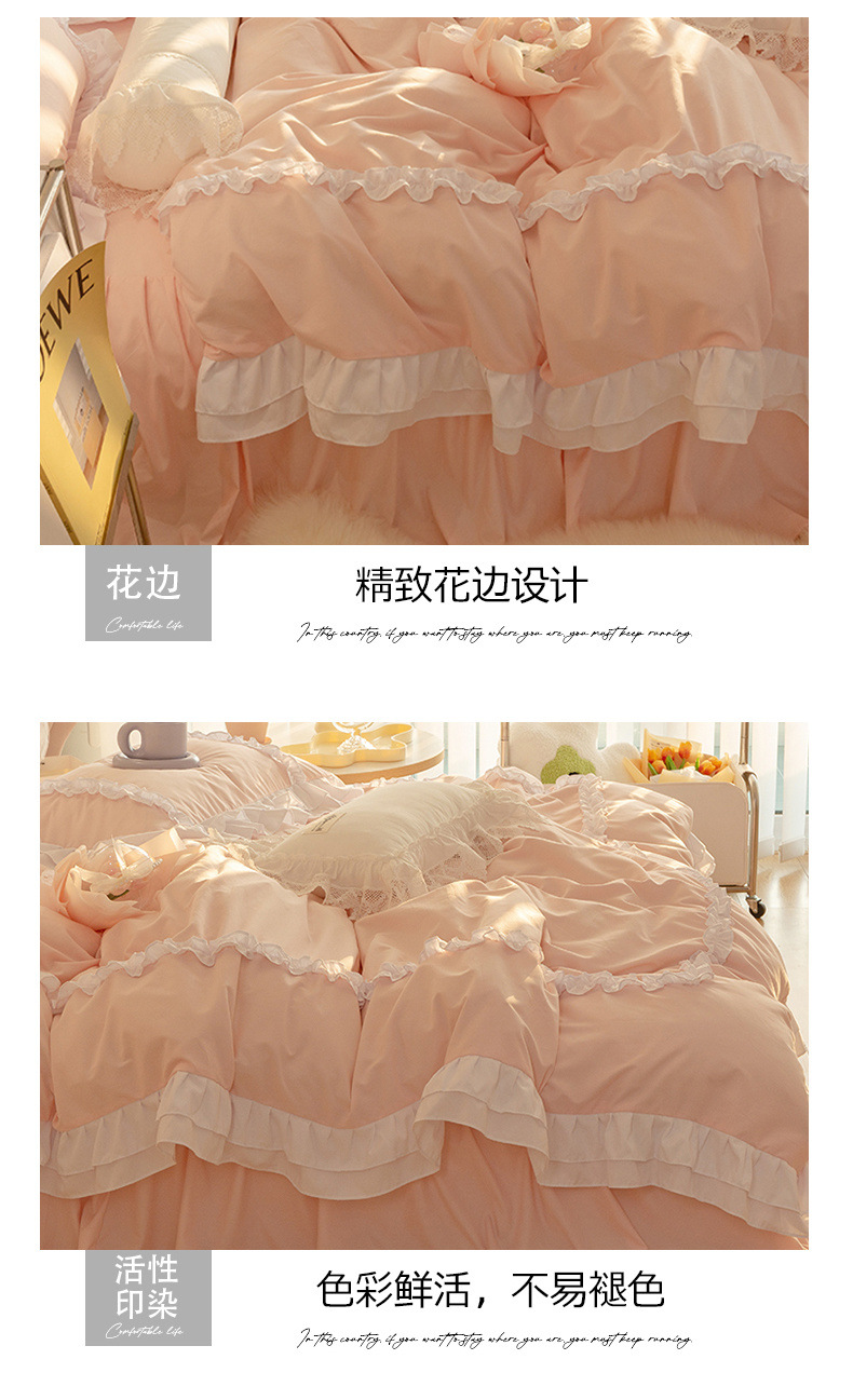 공주풍 4종세트 인 핑크 레이스 침대 스커트 컬러 워싱 코튼 이불 커버 걸리 하트 3종 침구세트