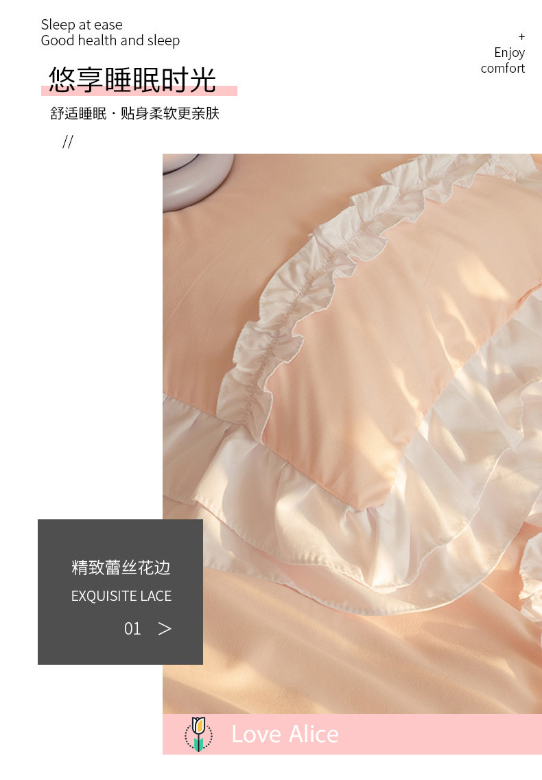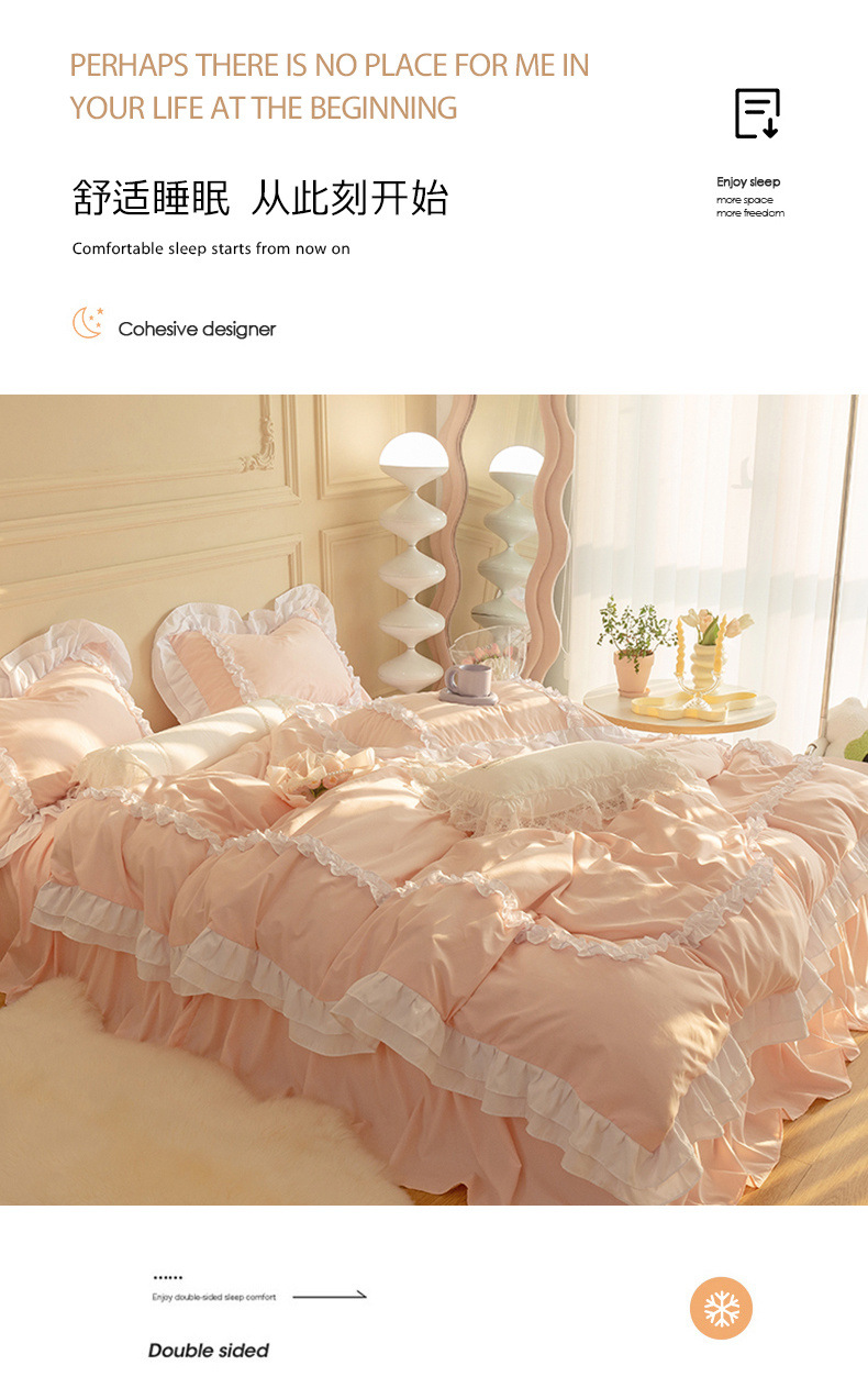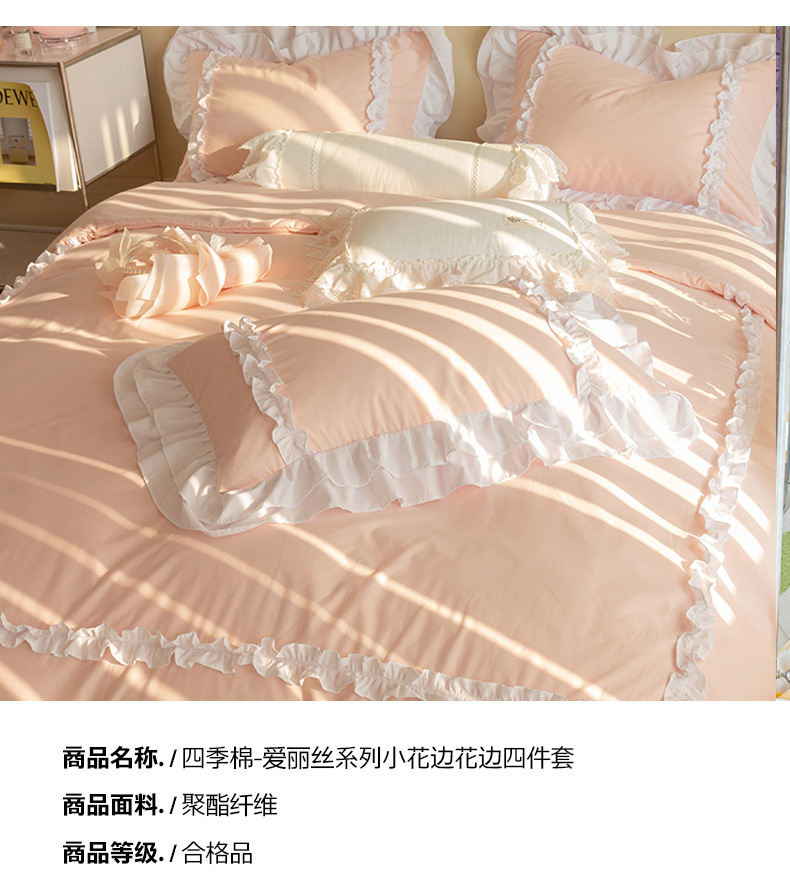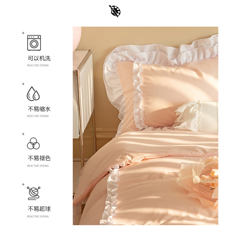 공주풍 4종세트 인 핑크 레이스 침대 스커트 컬러 워싱 코튼 이불 커버 걸리 하트 3종 침구세트