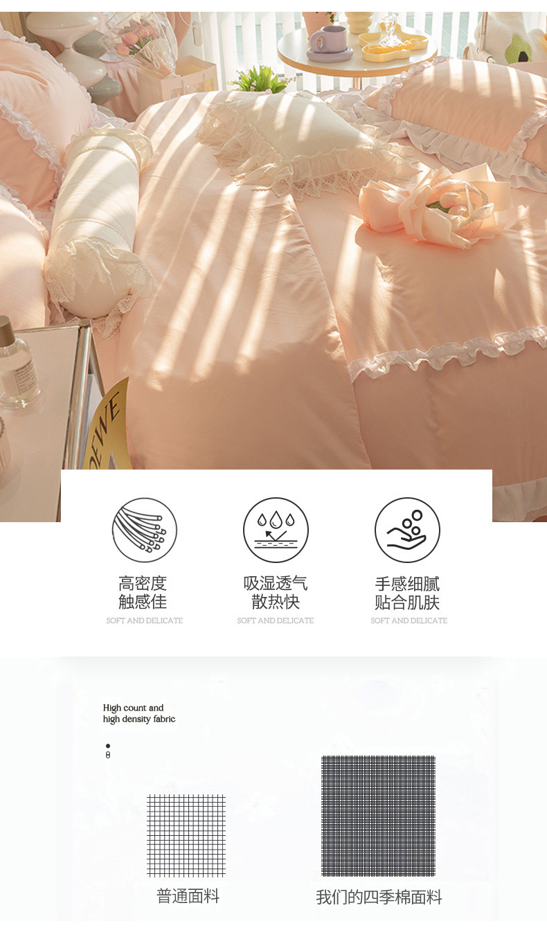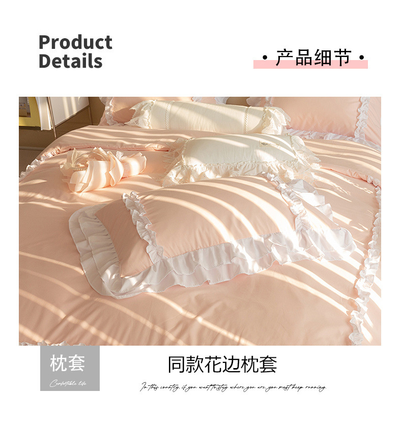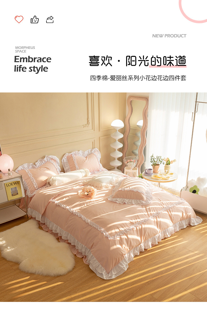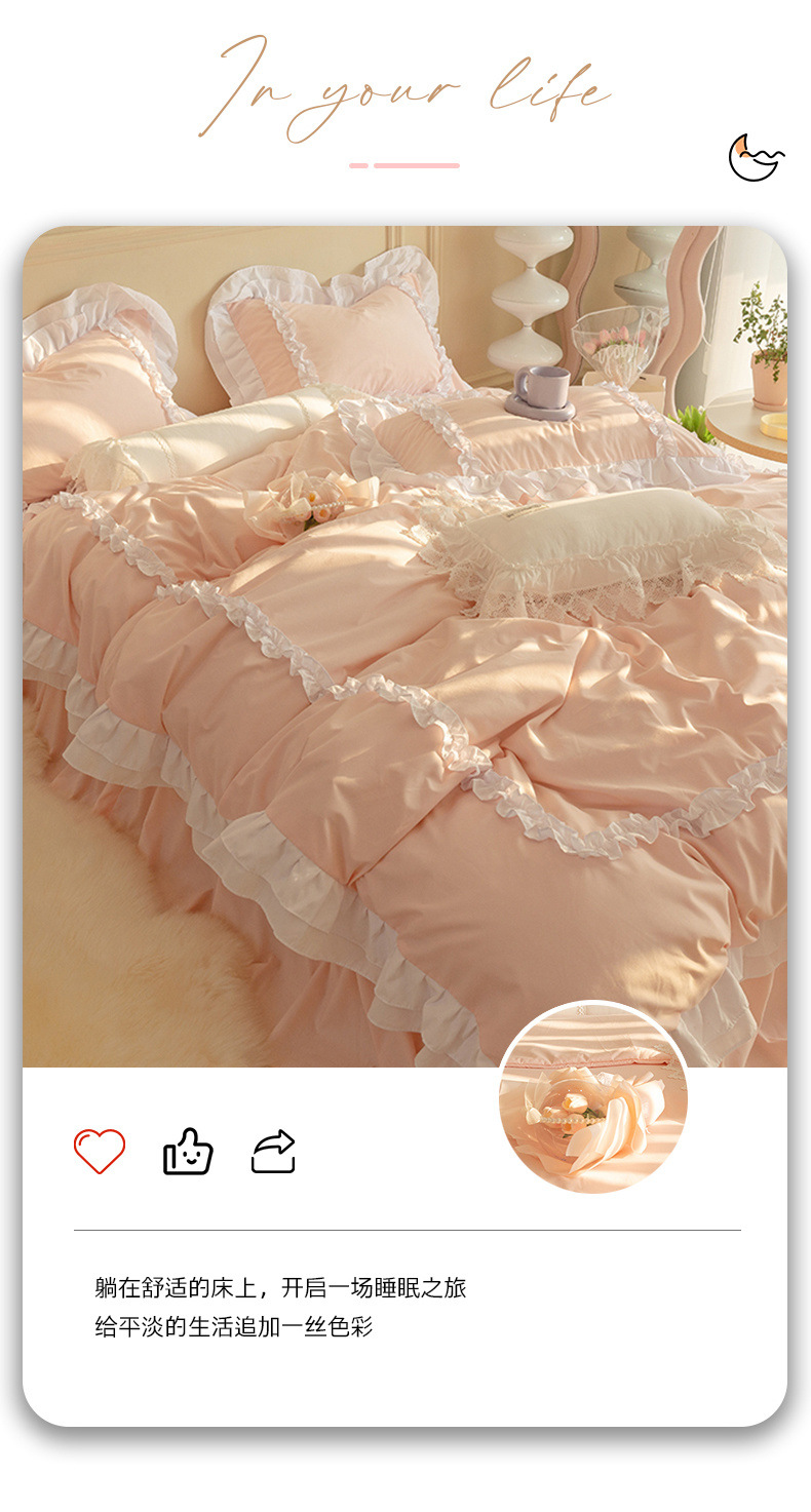 공주풍 4종세트 인 핑크 레이스 침대 스커트 컬러 워싱 코튼 이불 커버 걸리 하트 3종 침구세트스토어 가기