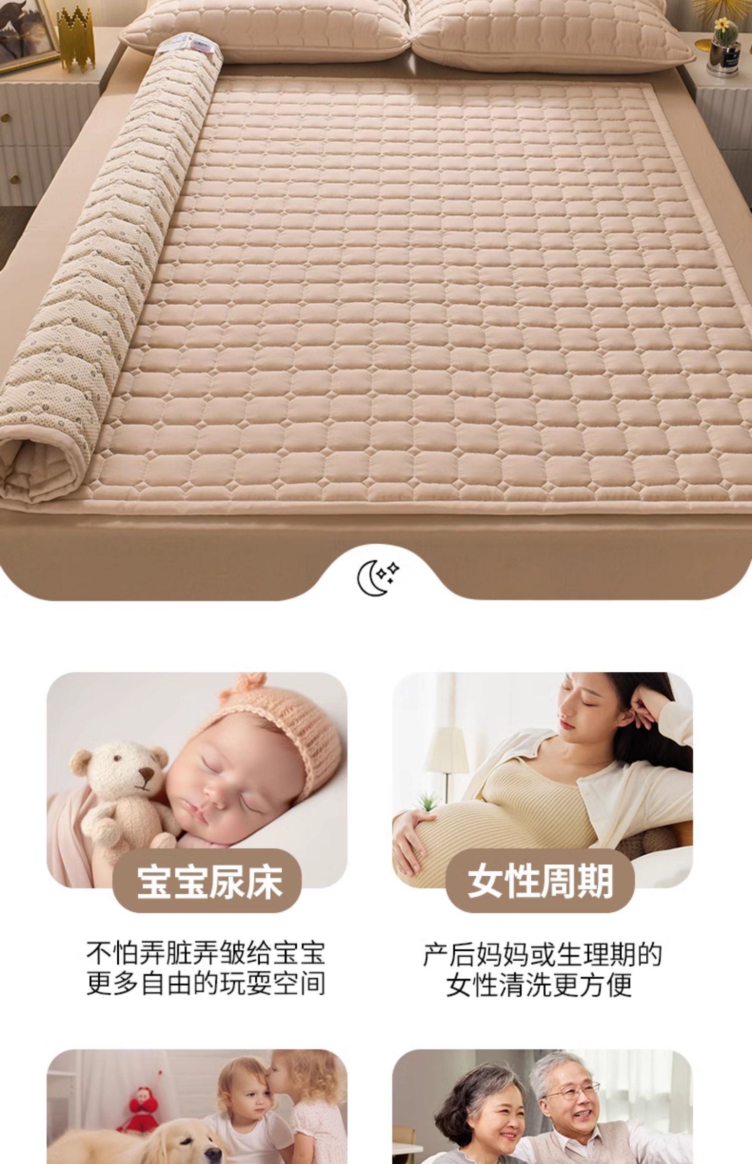 클래스 A 아기 기저귀 패드, 미끄럼 방지 방수 매트리스, 노인을 위한 통기성 방습 침대 패드, 두꺼운 매트리스