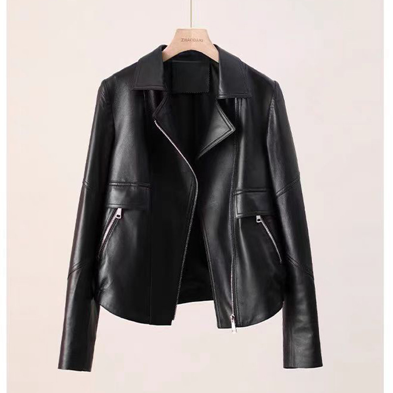 Haining 정품 가죽 자켓 여성 짧은 양피 봄, 가을 새로운 스타일 슬림 오토바이 가죽 자켓스토어 가기