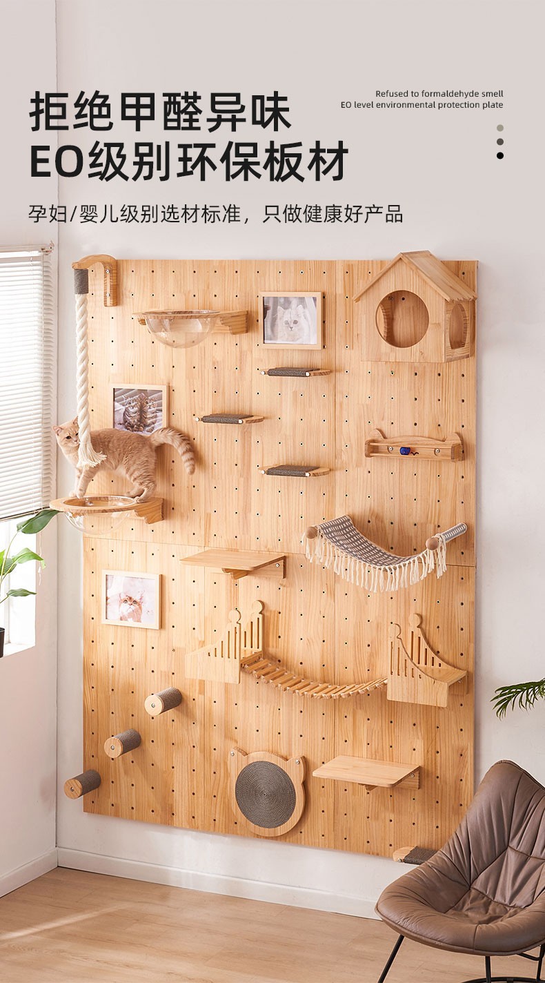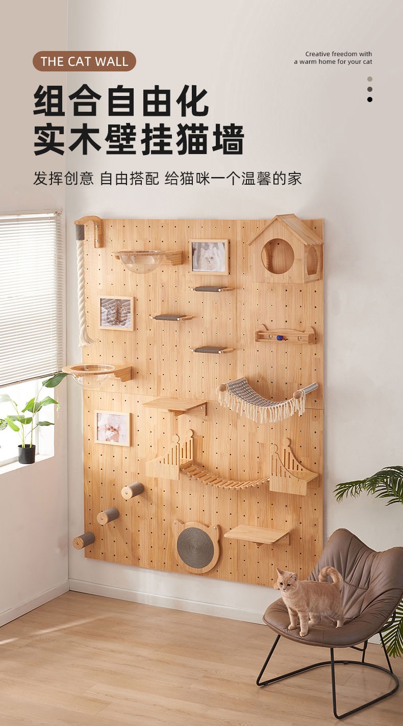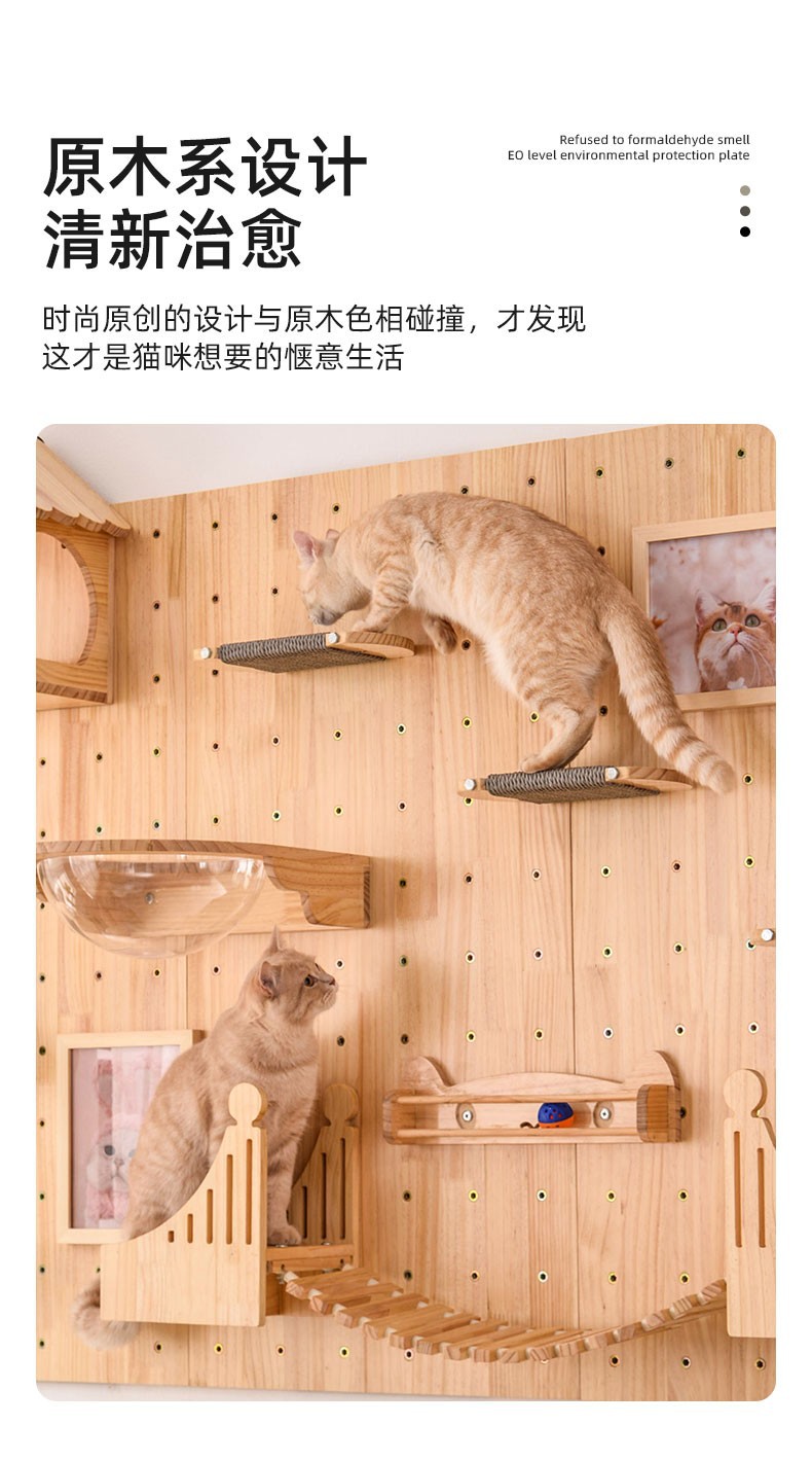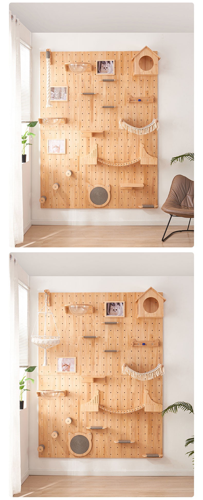 Shuimusheng 단단한 나무 고양이 클라이밍 프레임, 고양이 둥지, 펀치 없는 일체형, 가정용 공간 절약형, 고양이 벽, 고양이 스크래치 보드, 해먹