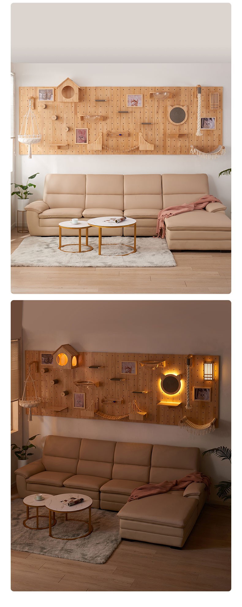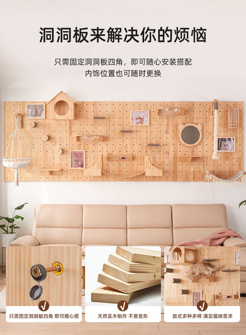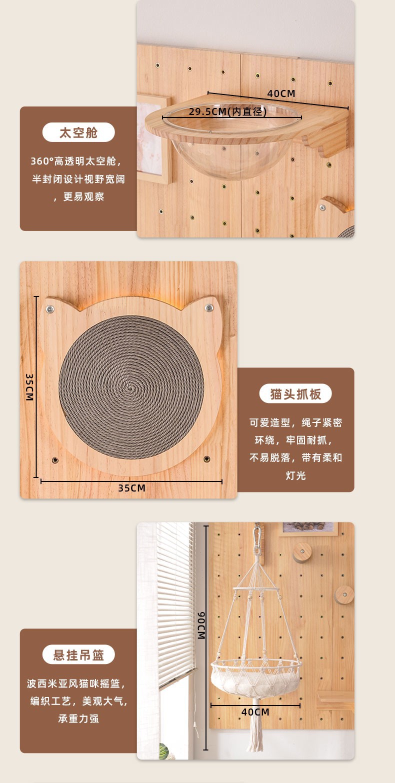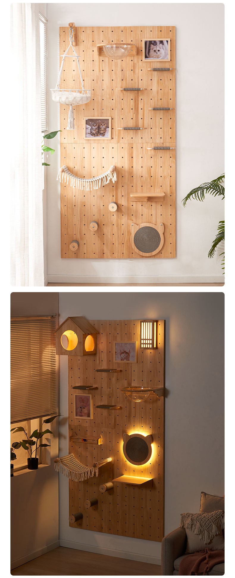 Shuimusheng 단단한 나무 고양이 클라이밍 프레임, 고양이 둥지, 펀치 없는 일체형, 가정용 공간 절약형, 고양이 벽, 고양이 스크래치 보드, 해먹