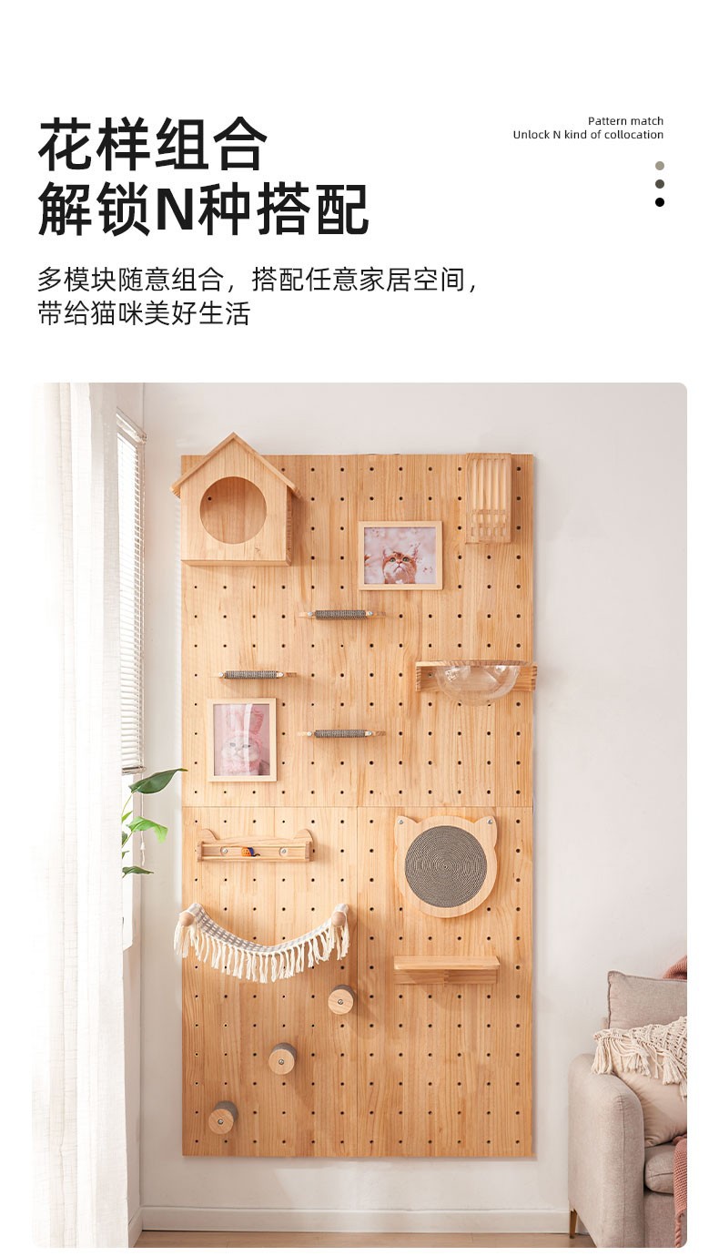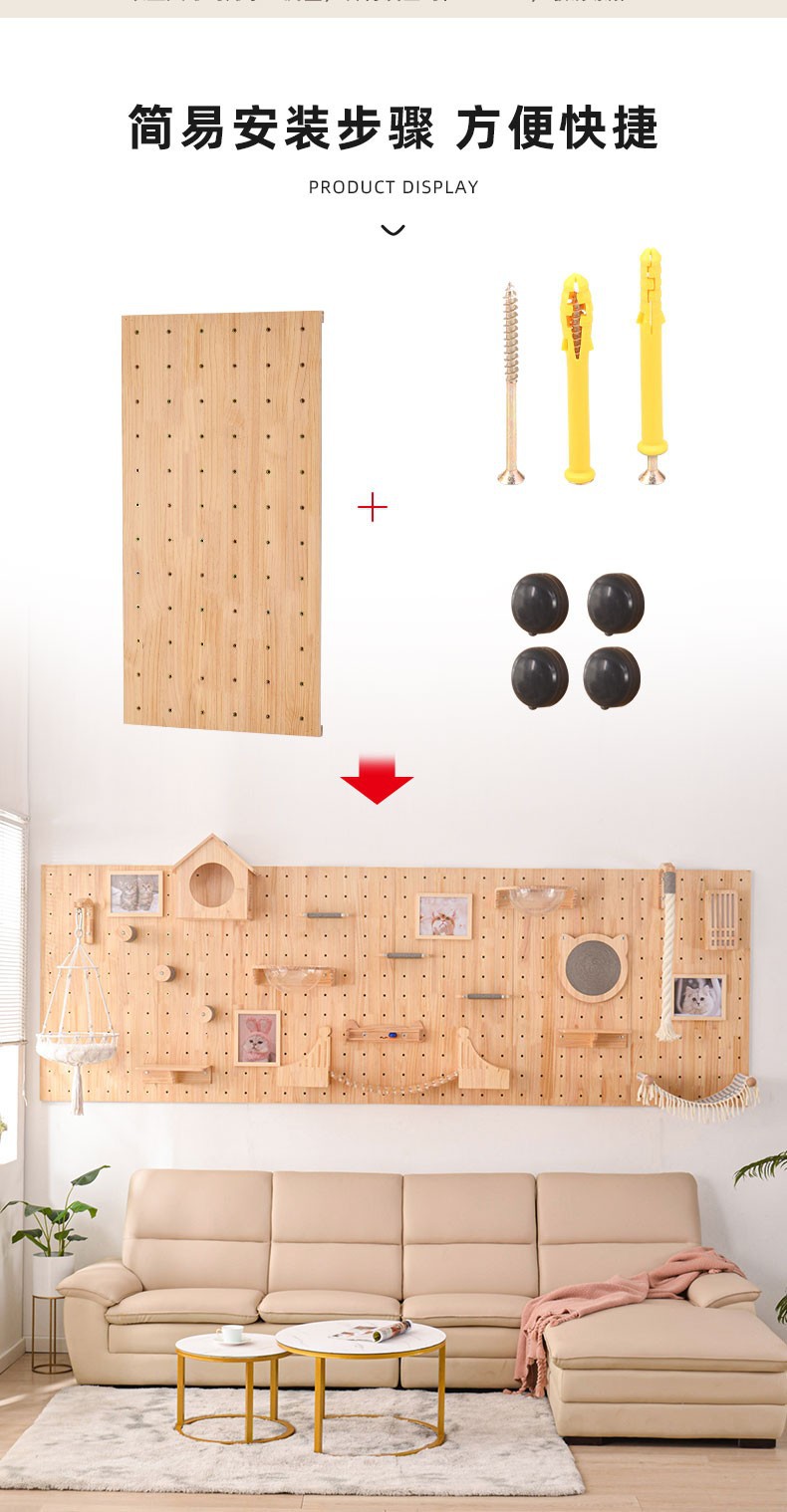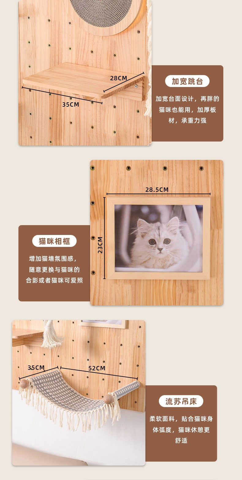Shuimusheng 단단한 나무 고양이 클라이밍 프레임, 고양이 둥지, 펀치 없는 일체형, 가정용 공간 절약형, 고양이 벽, 고양이 스크래치 보드, 해먹스토어 가기