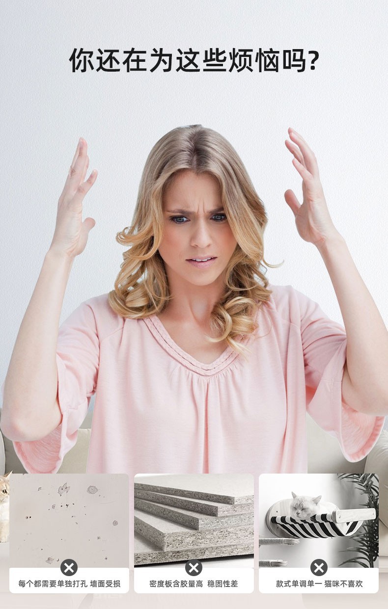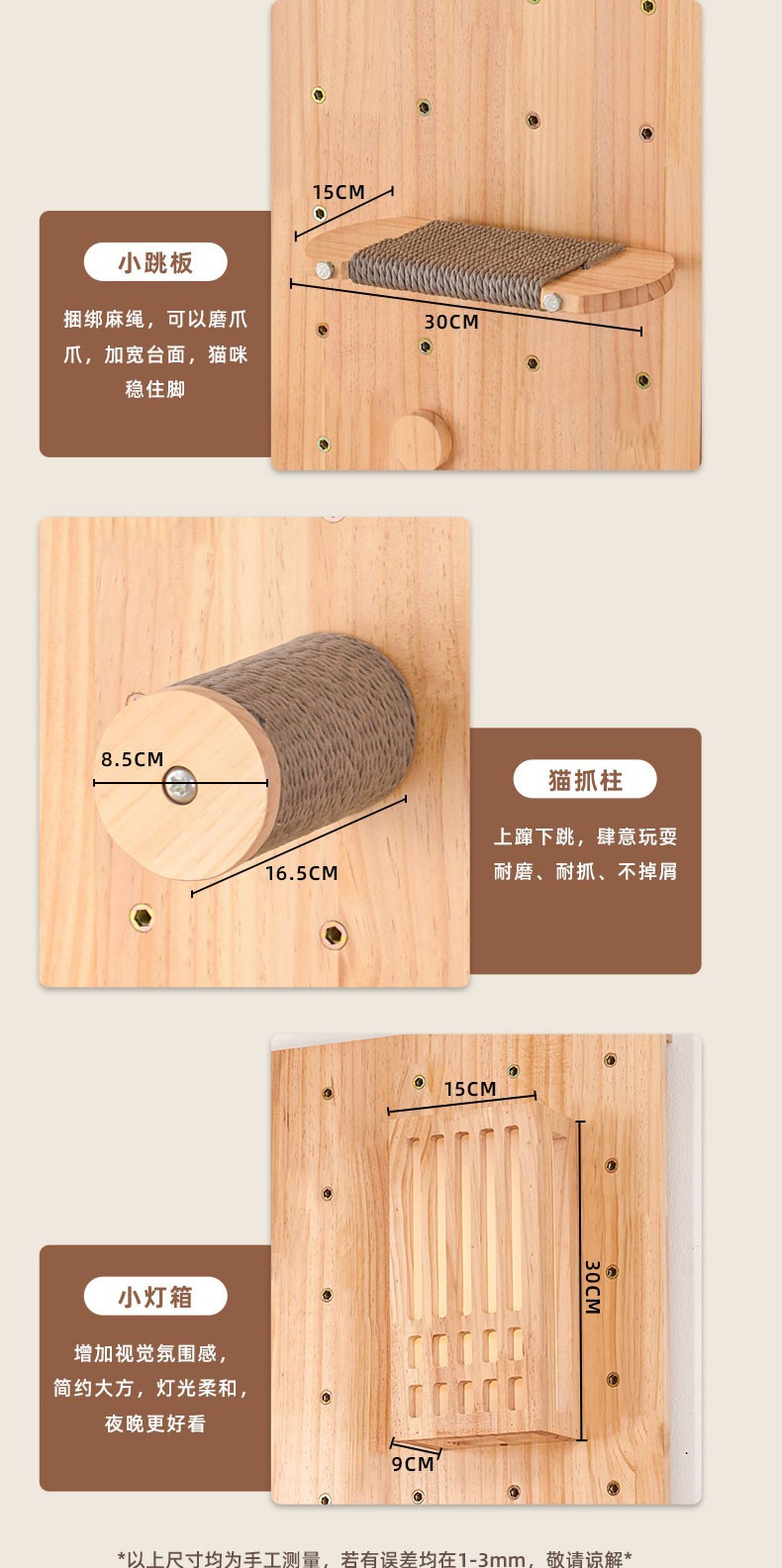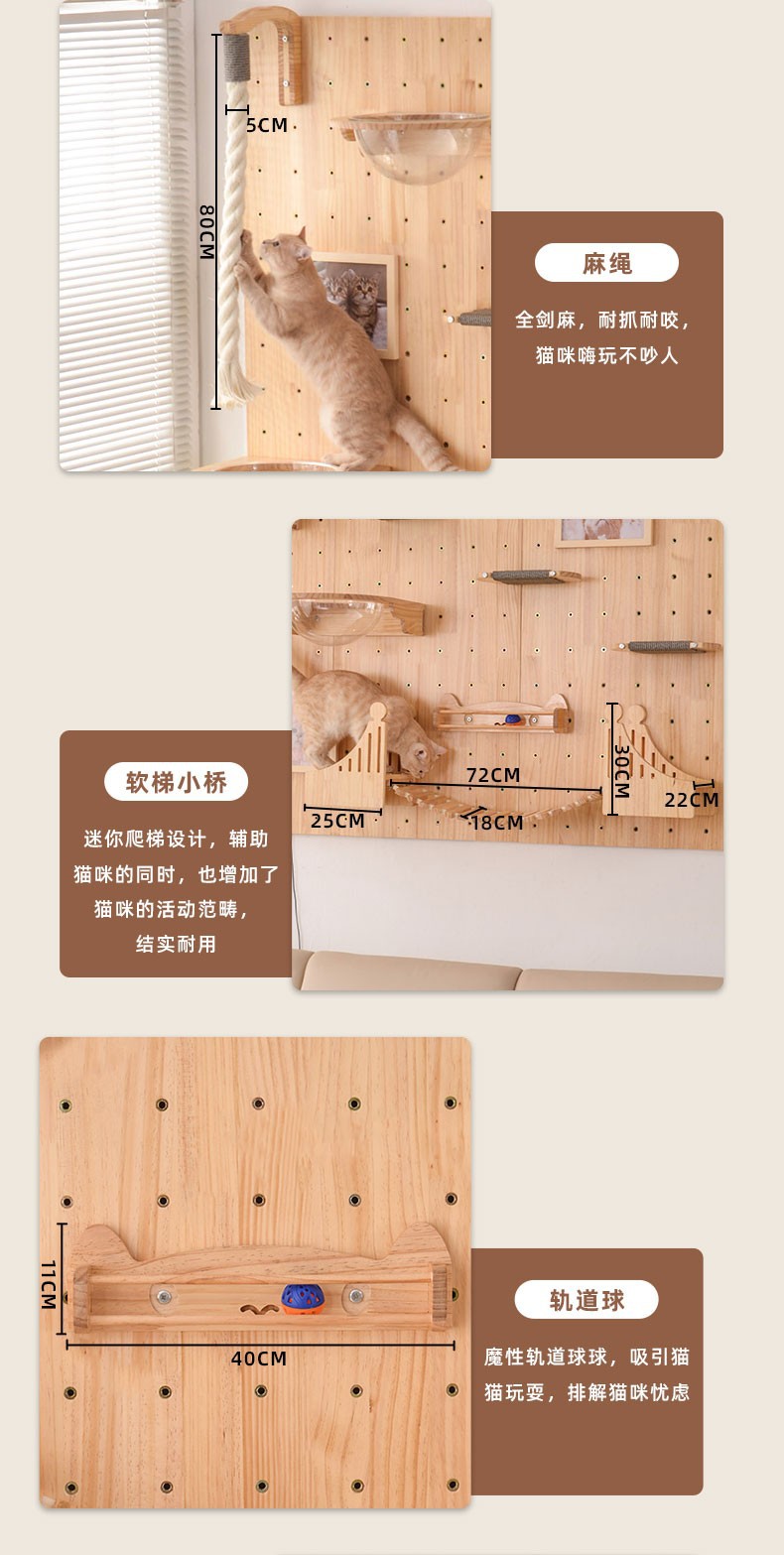 Shuimusheng 단단한 나무 고양이 클라이밍 프레임, 고양이 둥지, 펀치 없는 일체형, 가정용 공간 절약형, 고양이 벽, 고양이 스크래치 보드, 해먹스토어 가기