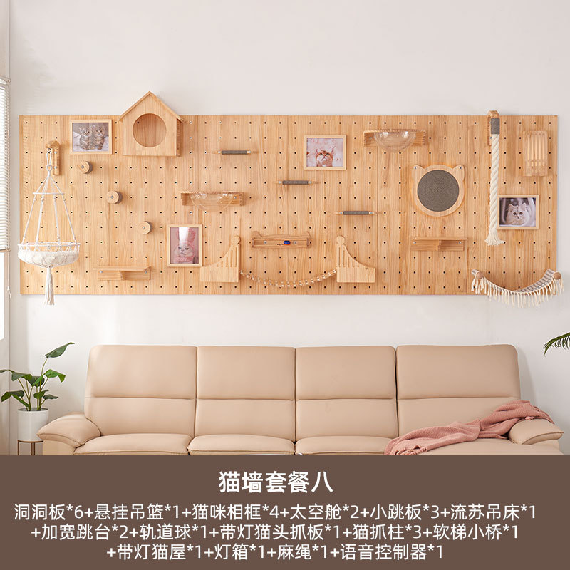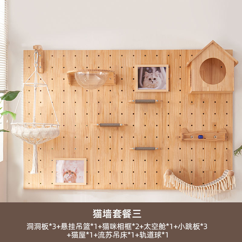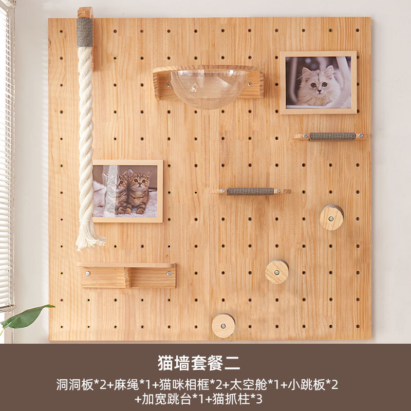 수무생 원목 고양이 클라이밍 프레임과 고양이 집이 하나로 통합된 제품, 무타공, 가정용, 공간 절약형, 홀보드, 고양이 벽걸이, 고양이 스크래쳐, 해먹