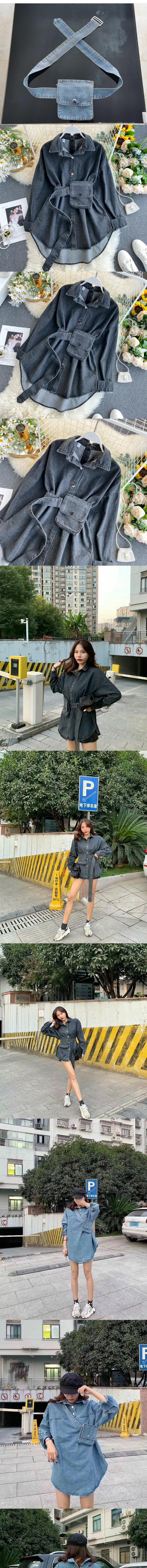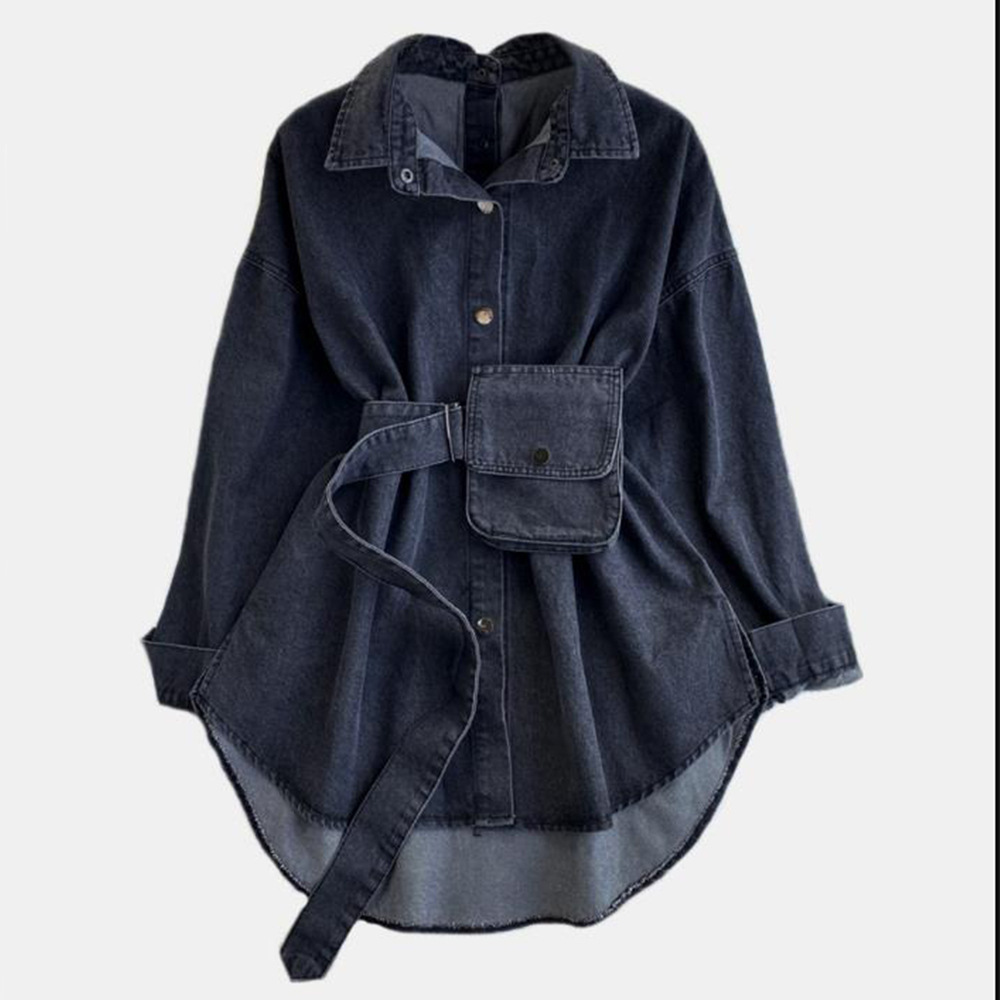 반팔 크로스보더 독립 스테이션 여성복 디자인 레이스업 허리 백리스 멀티웨어 백 데님 셔츠 캐주얼하고 다재다능함