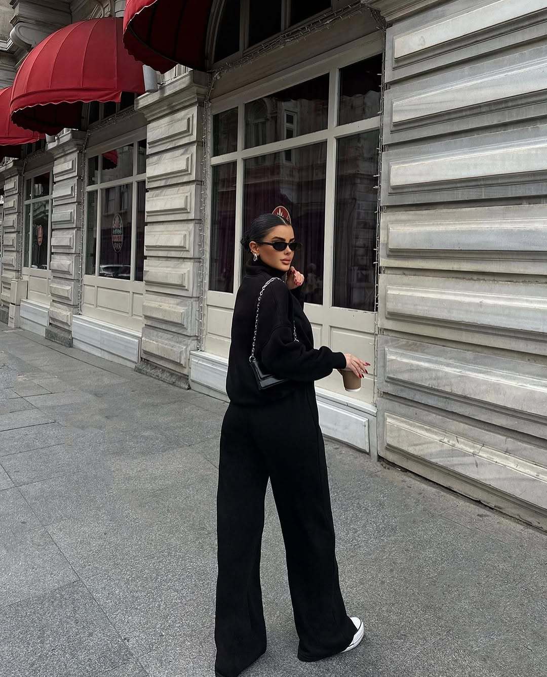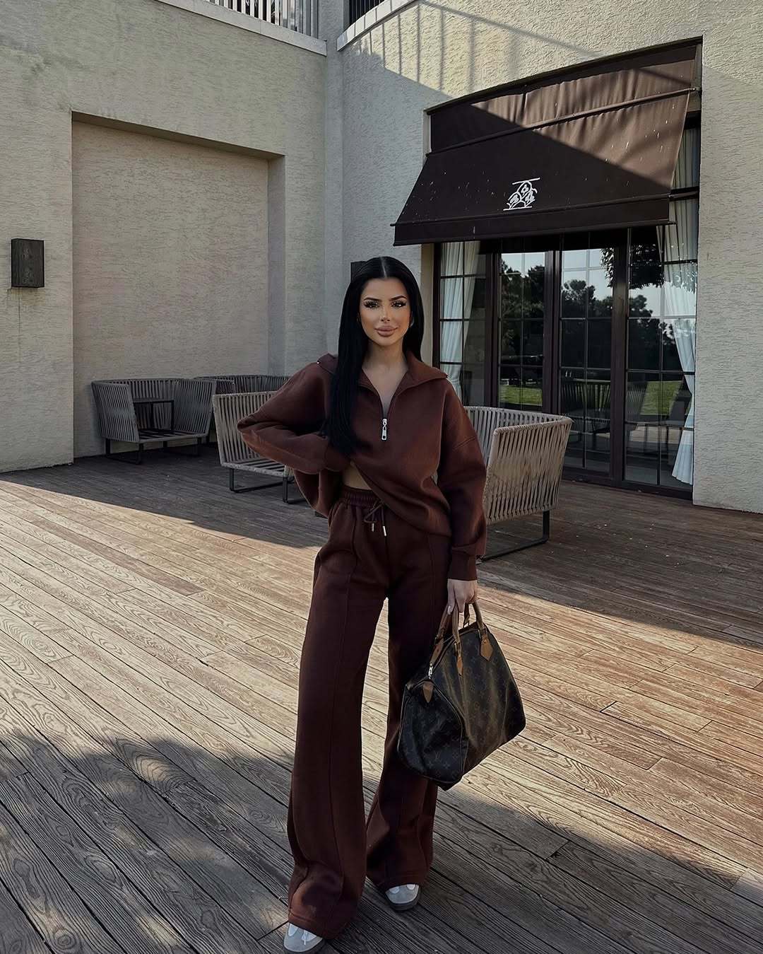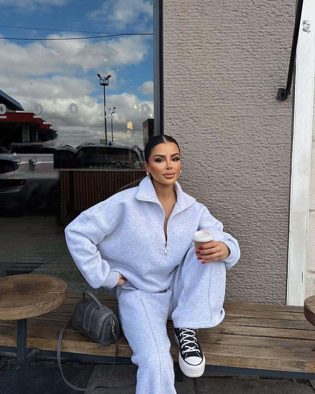 국경 간 유럽과 미국의 캐주얼 여성 패션 하프 가디건 풀오버 스웨트 셔츠와 바지 투피스 루즈 캐주얼 가을, 겨울 정장스토어 가기