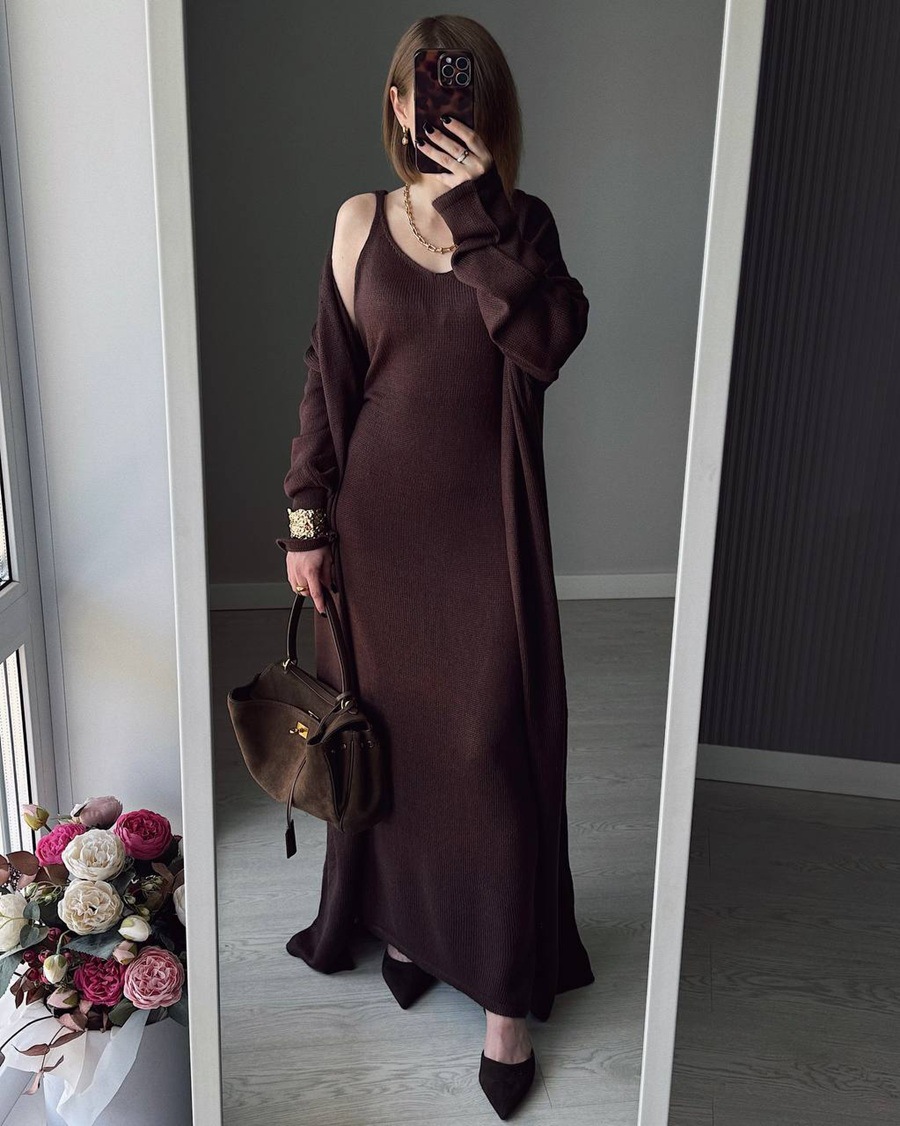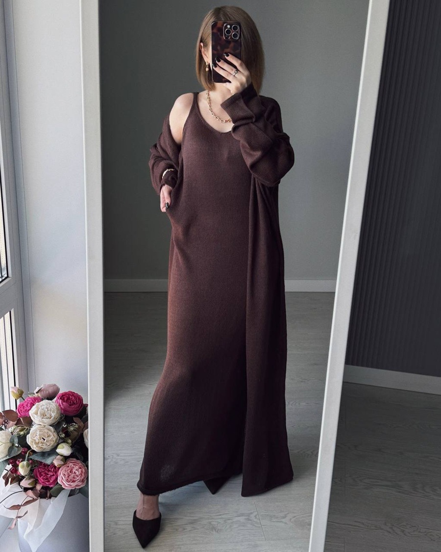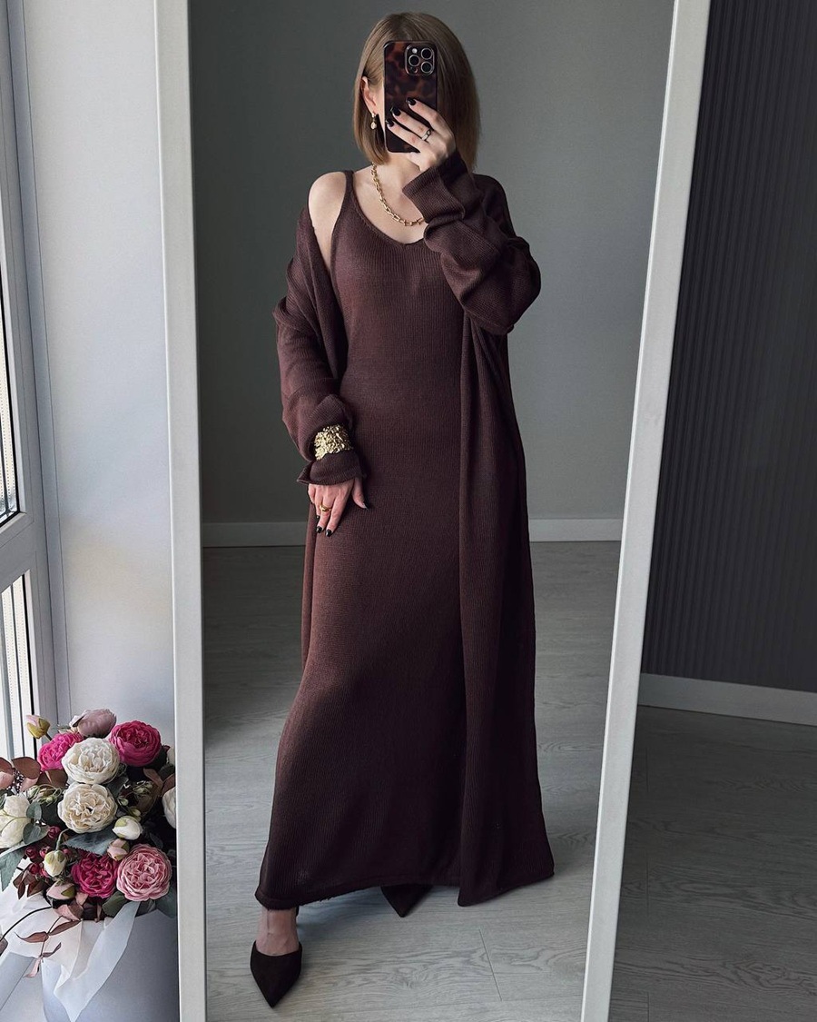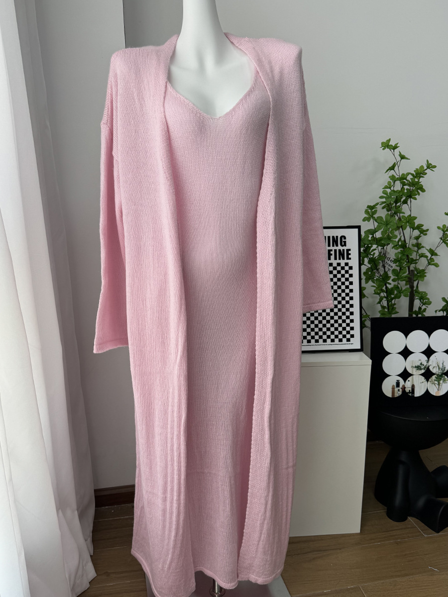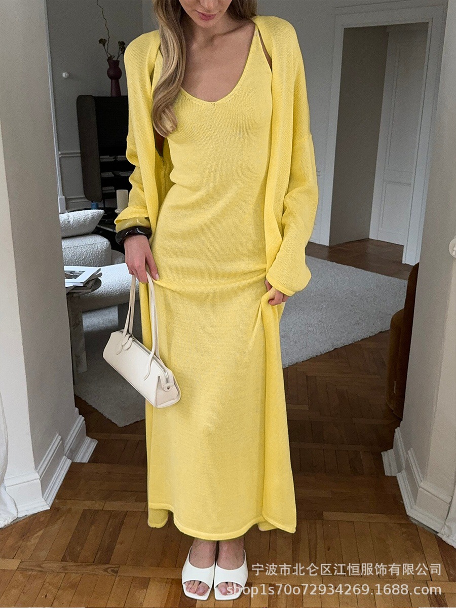 2025 새로운 부드럽고 느슨한 여성 캐주얼 정장 실제 사진 긴팔 카디건과 캐미솔 드레스