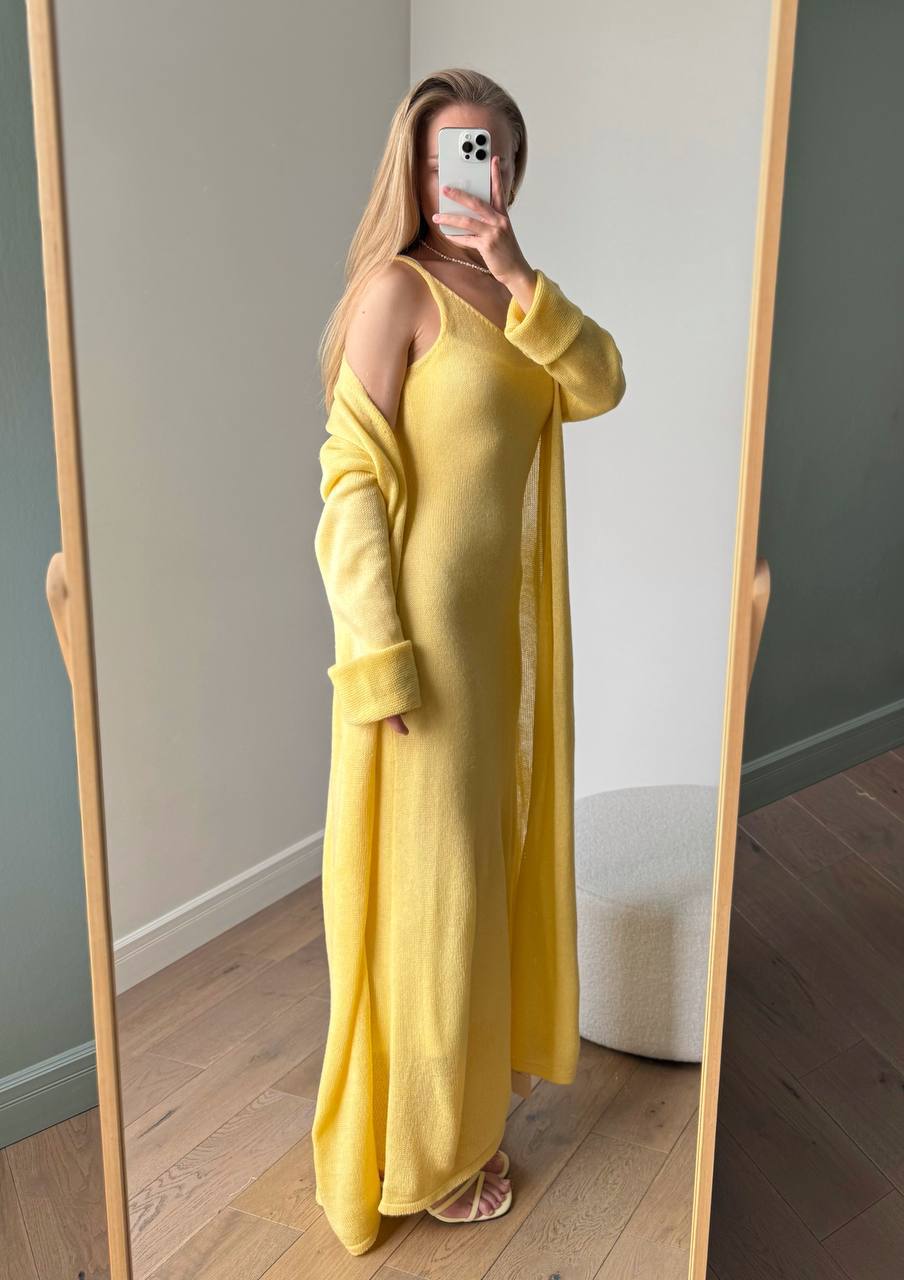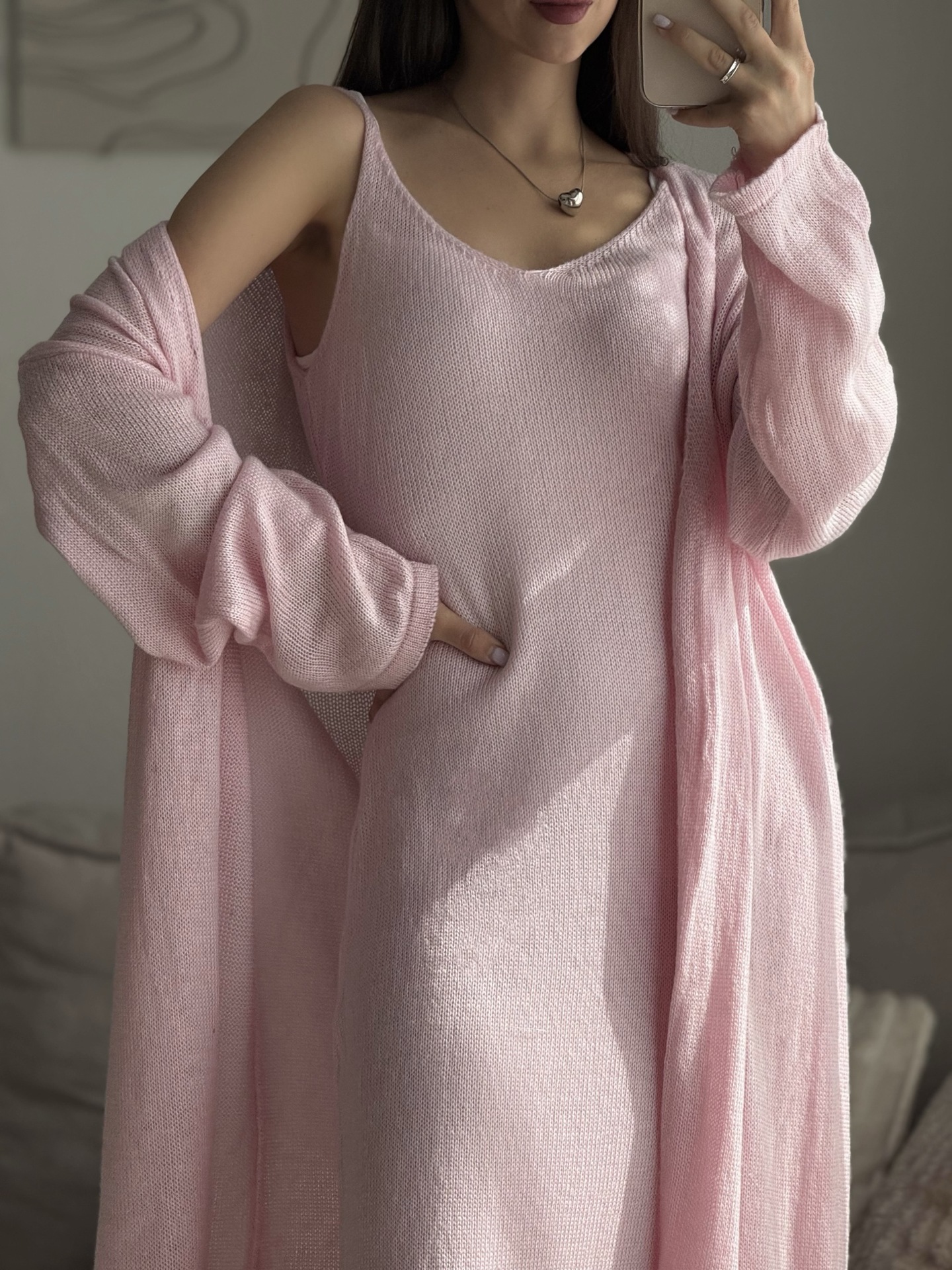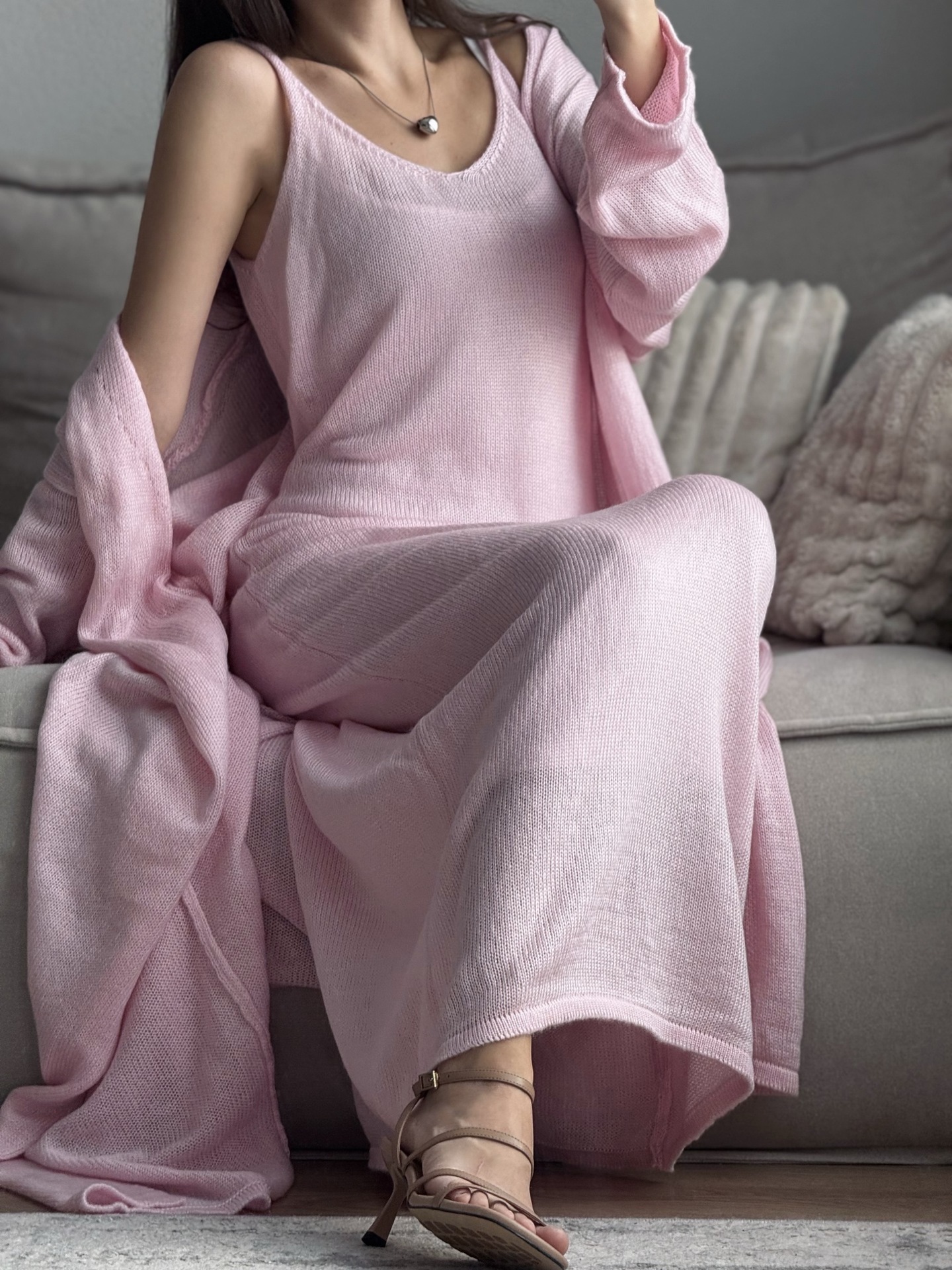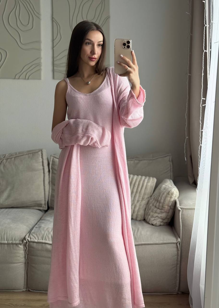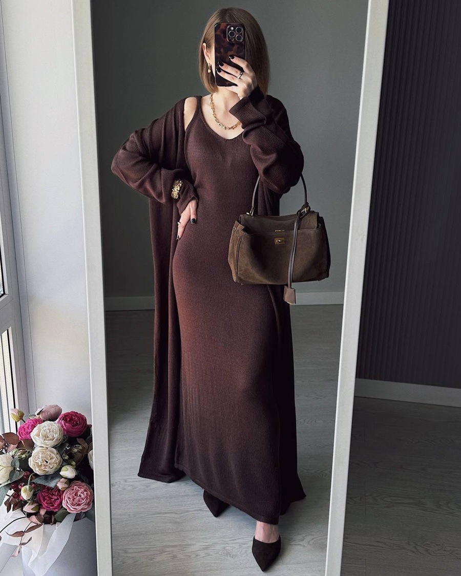 2025 새로운 부드럽고 느슨한 여성 캐주얼 정장 실제 사진 긴팔 카디건과 캐미솔 드레스