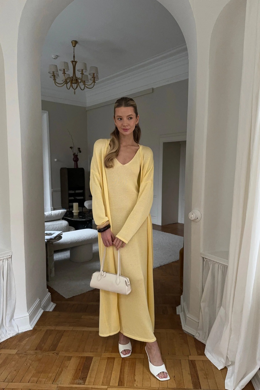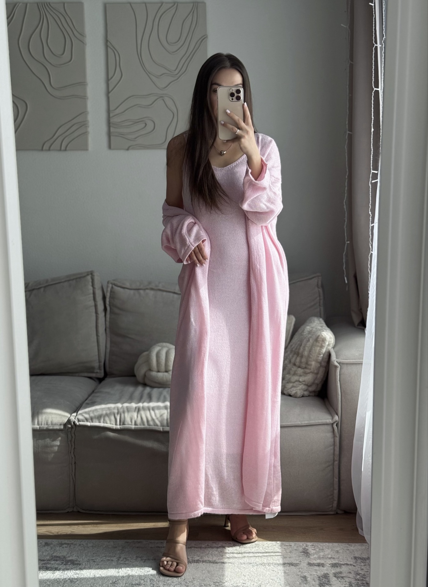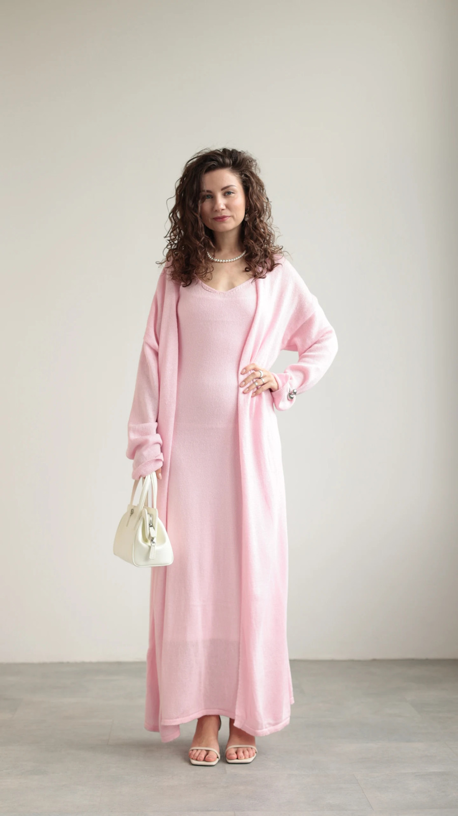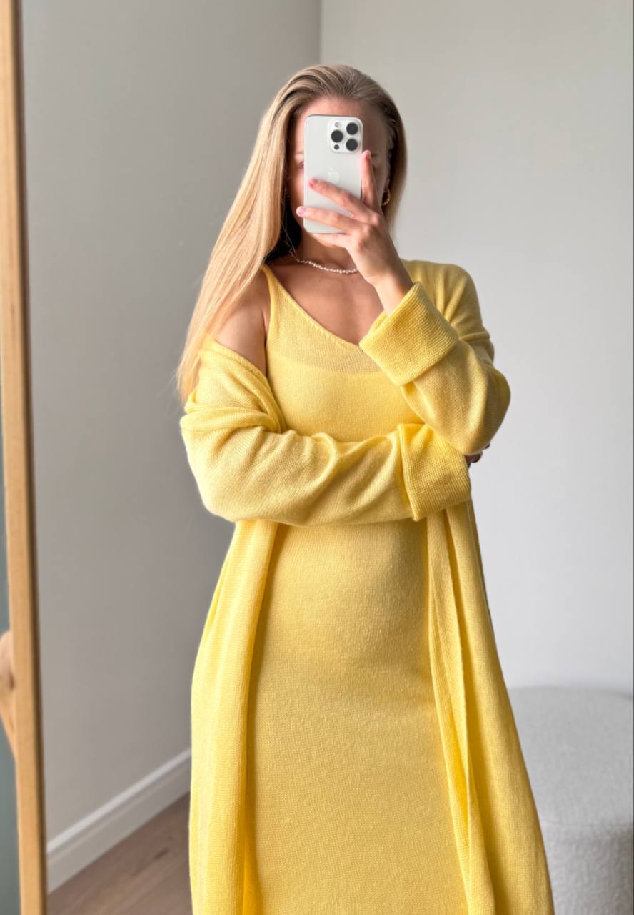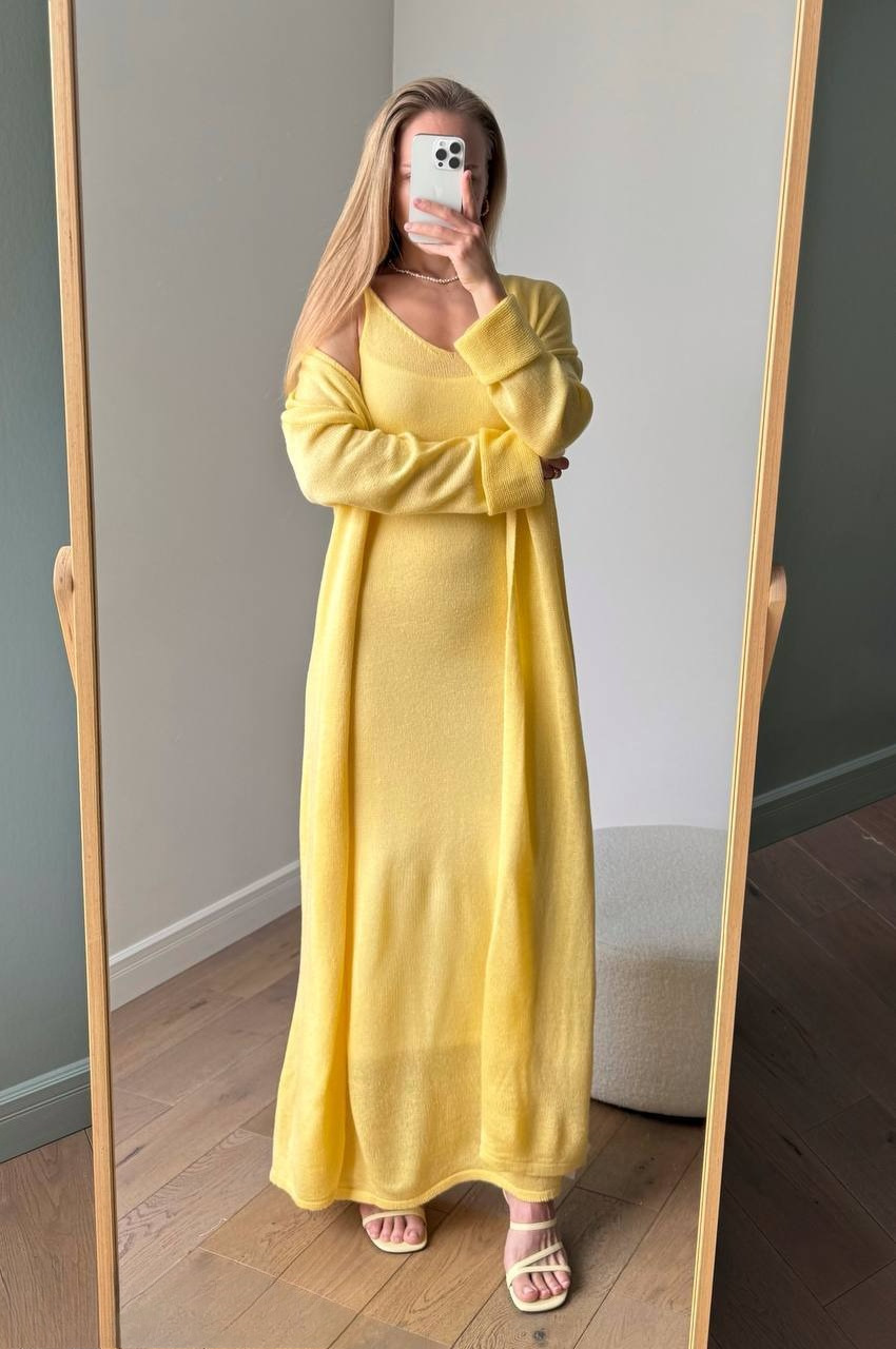 2025 새로운 부드럽고 느슨한 여성 캐주얼 정장 실제 사진 긴팔 카디건과 캐미솔 드레스