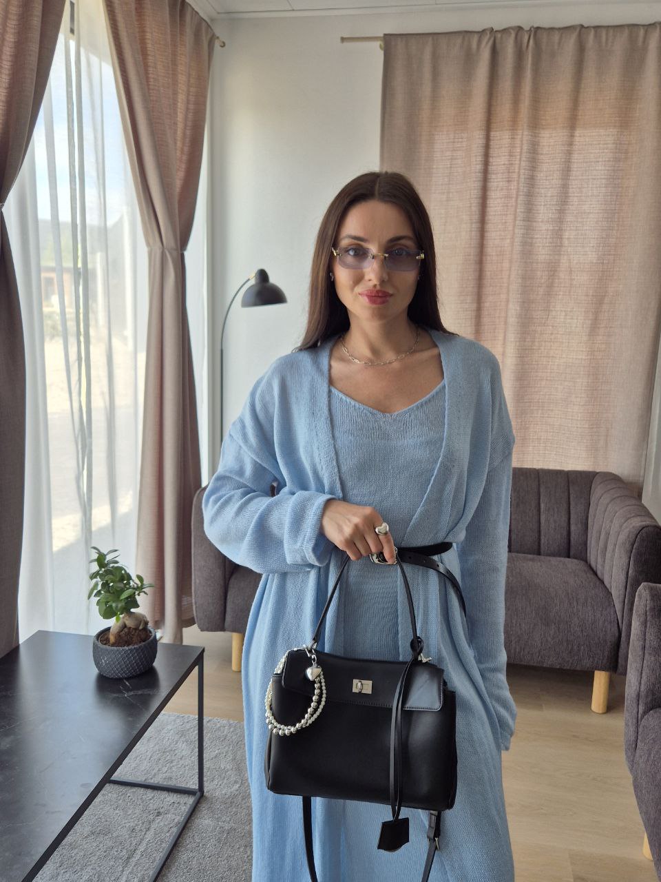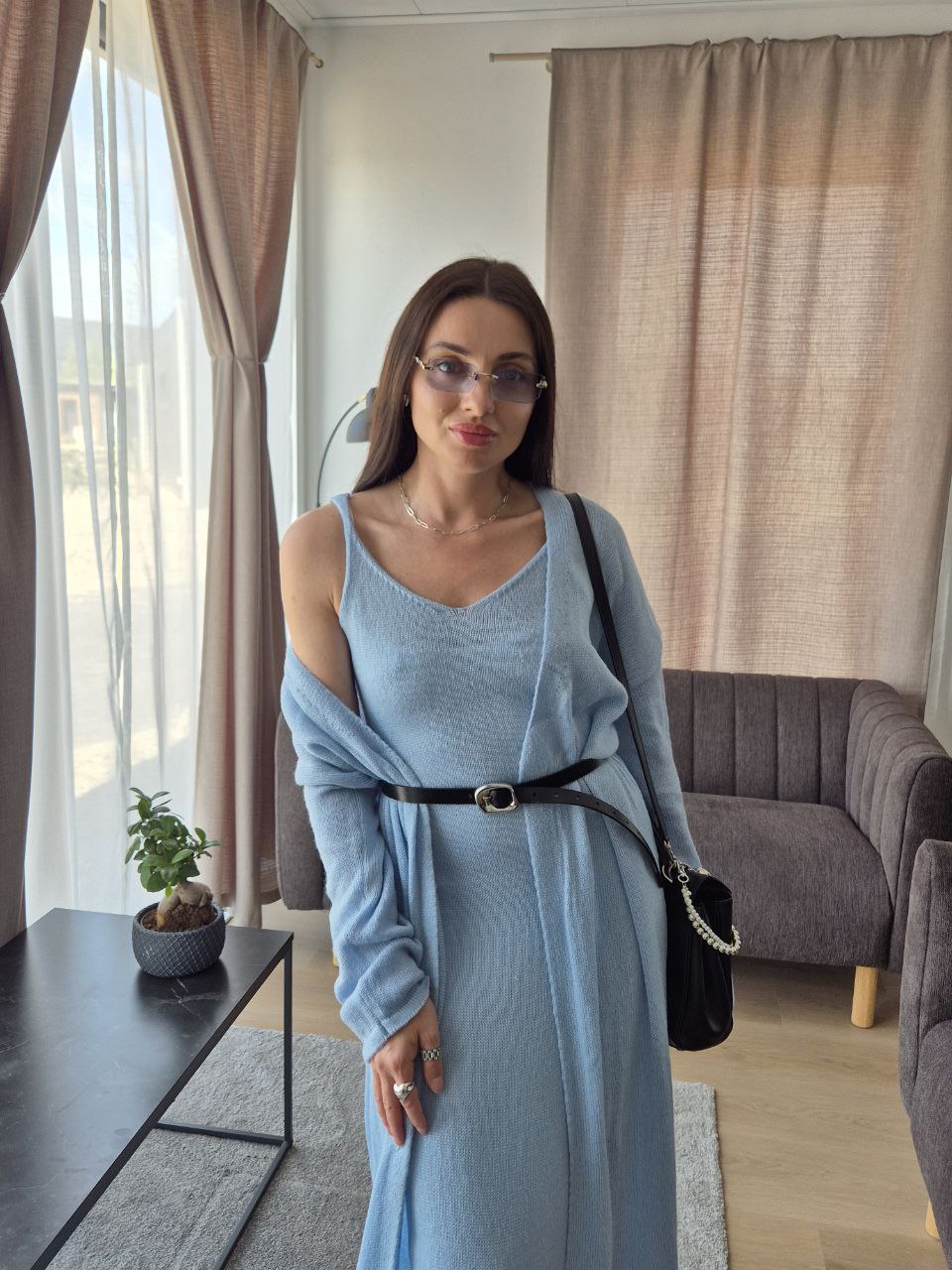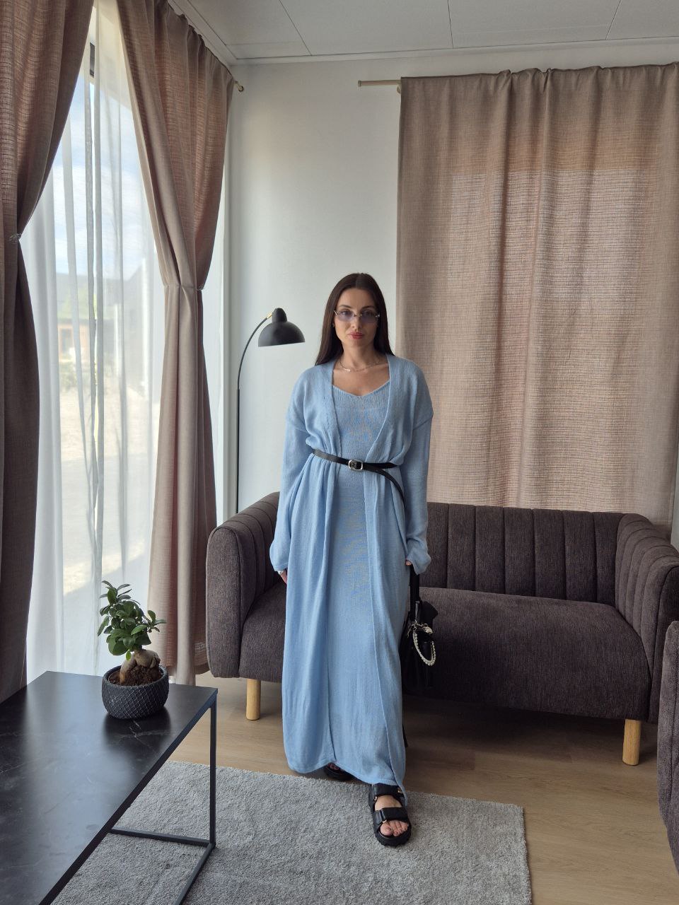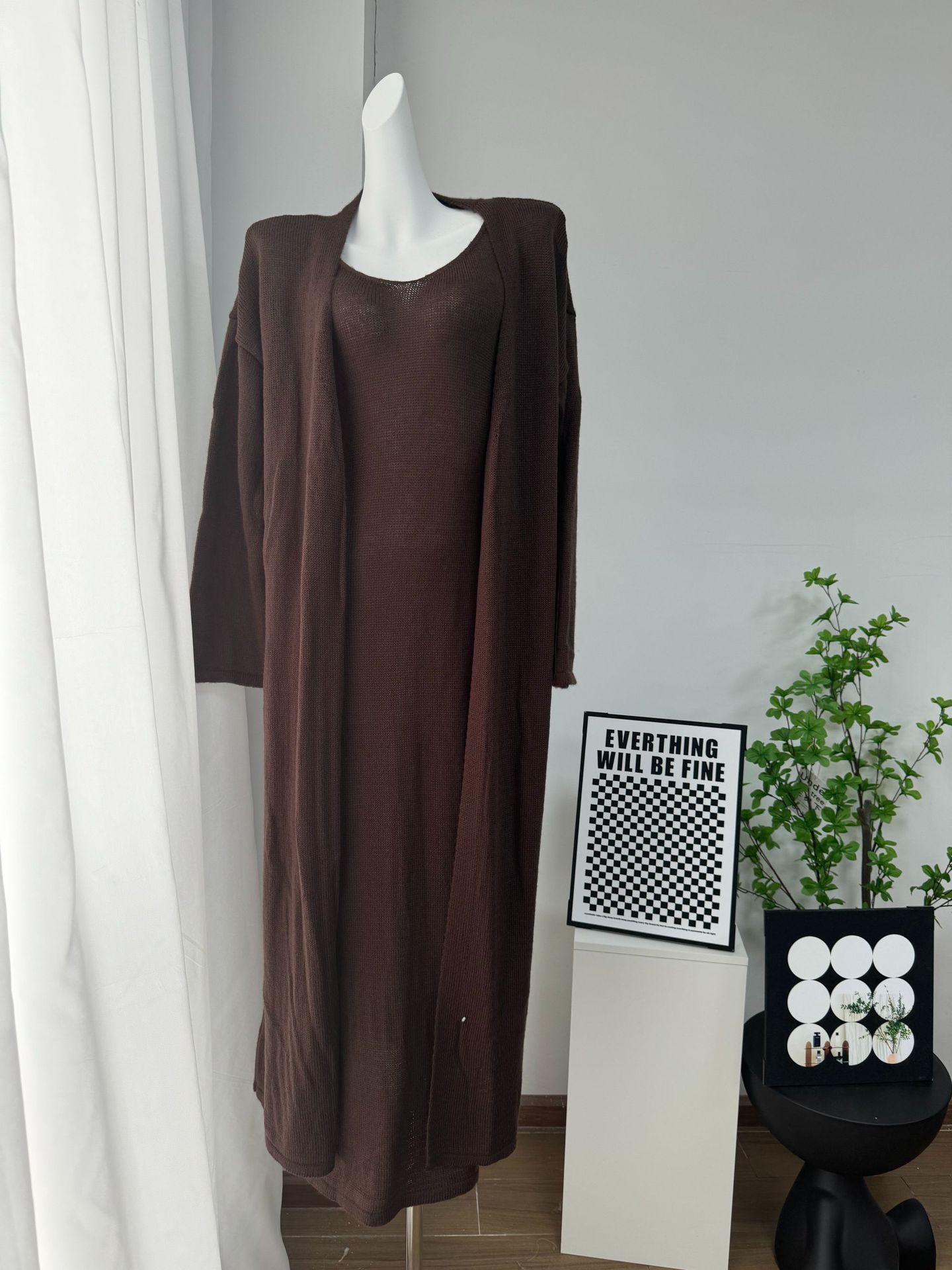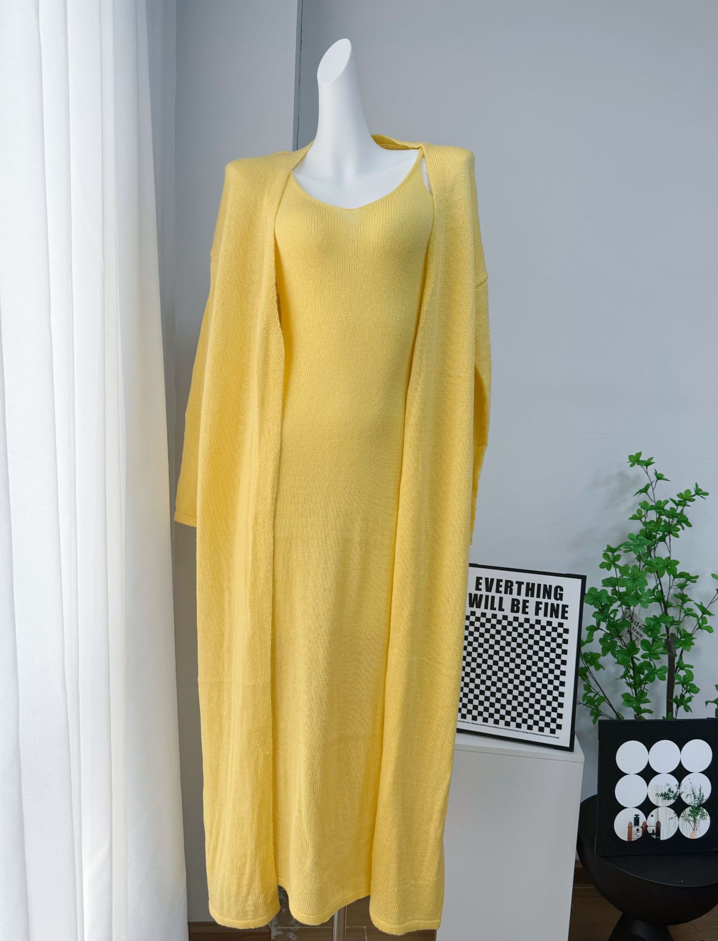2025 새로운 부드럽고 느슨한 여성 캐주얼 정장 실제 사진 긴팔 카디건과 캐미솔 드레스스토어 가기