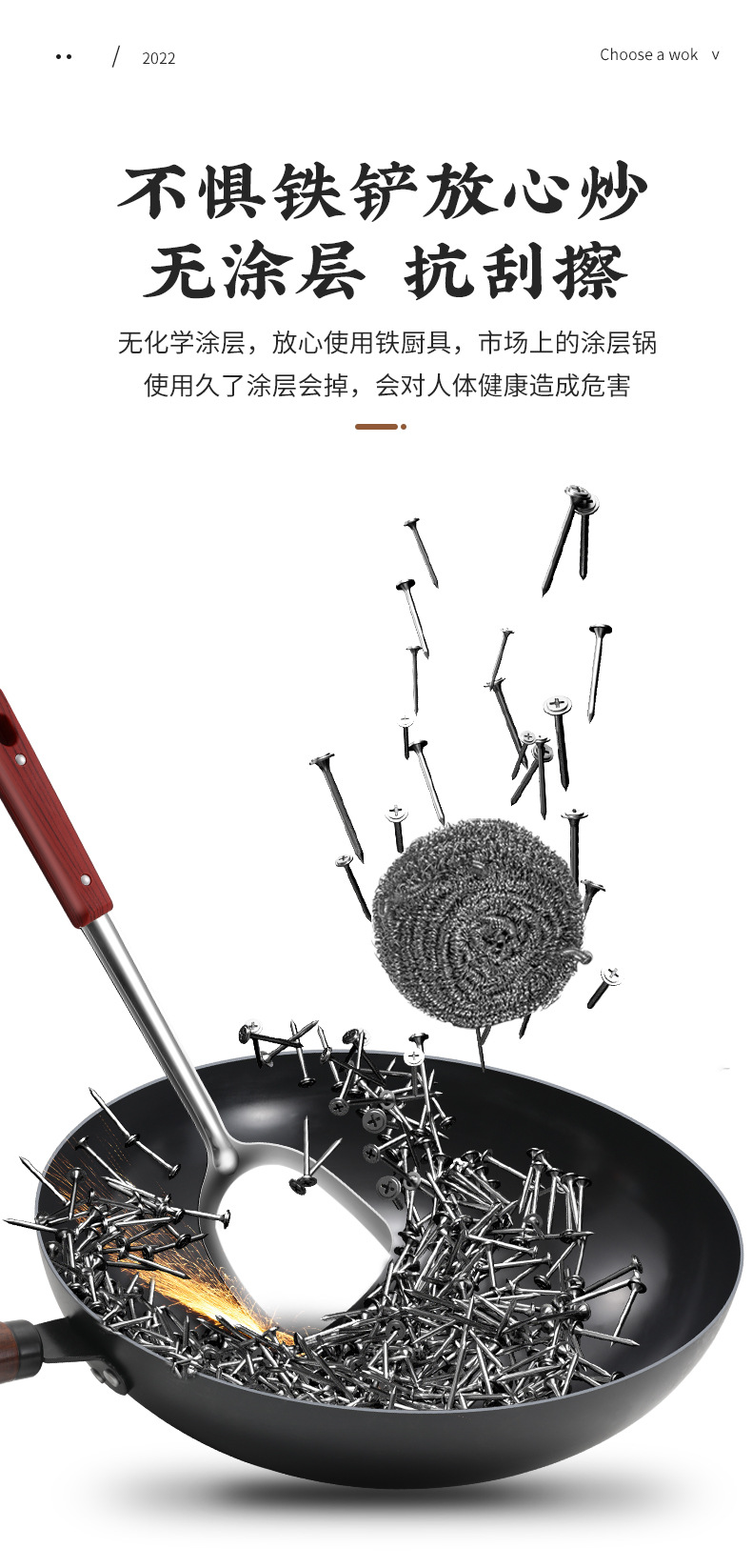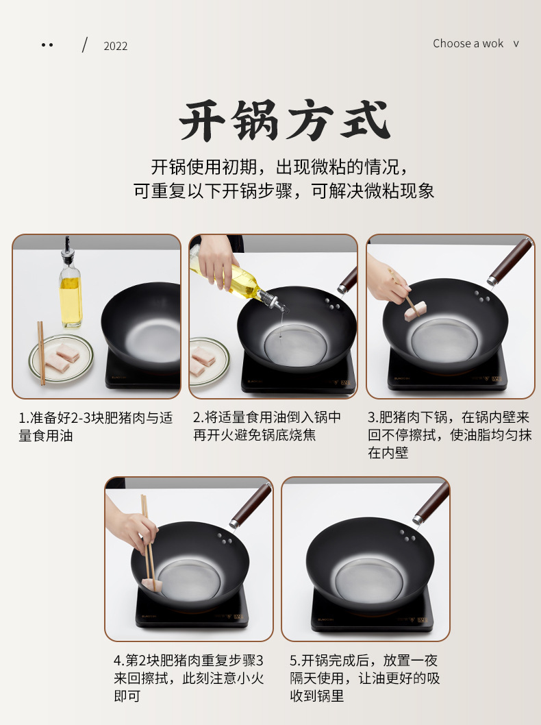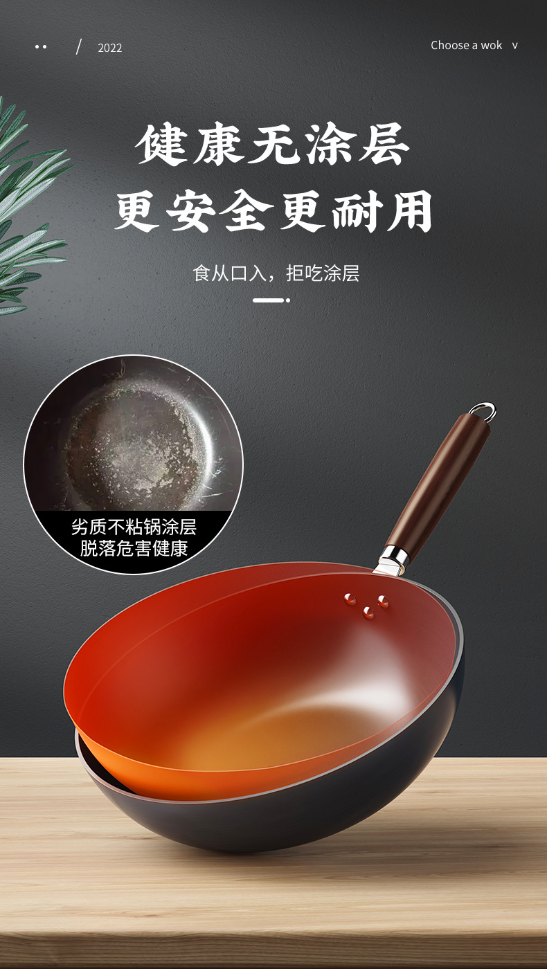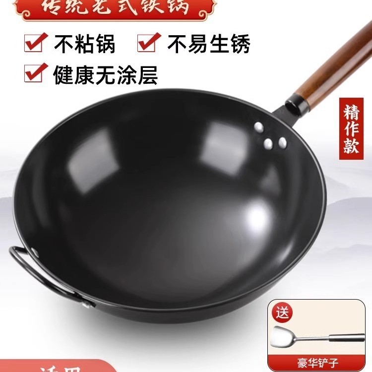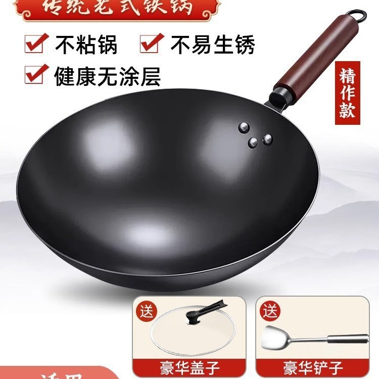 Zhangqiu Wok 전통 철 냄비 공식 플래그십 구식 Wok 가정용 비 스틱 팬 코팅 가스 스토브