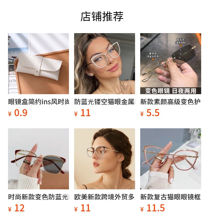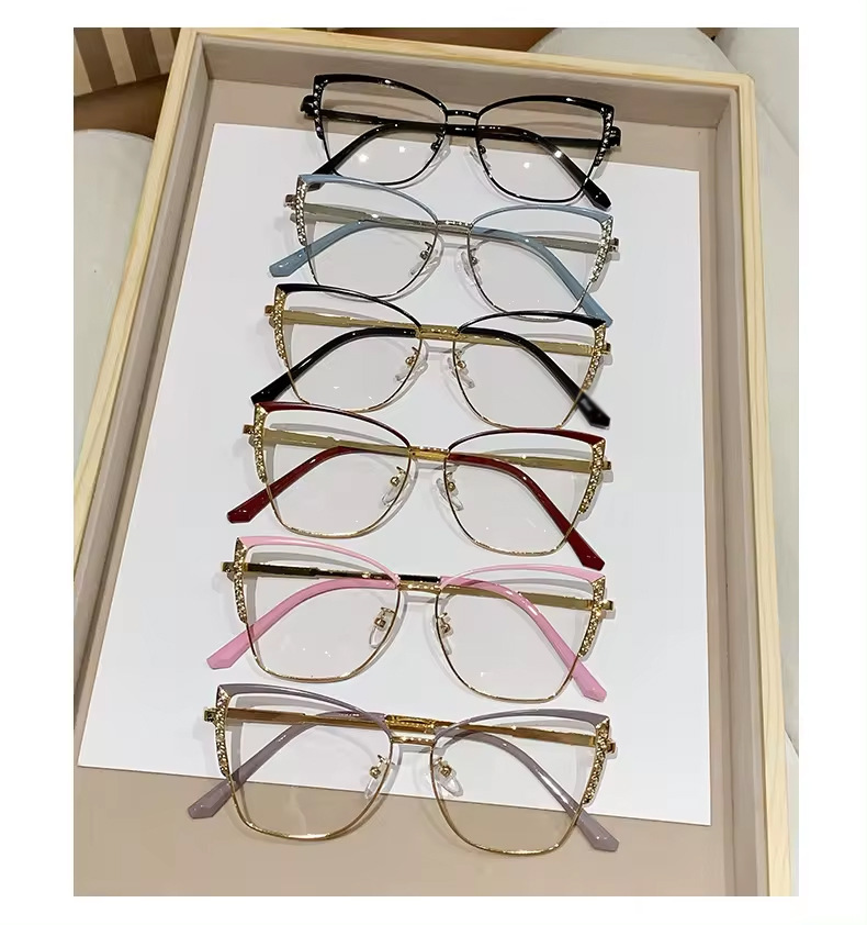 패셔너블한 크로스보더 트렌디 안경테, 풀프레임 안경, 메탈 캐주얼 안경테, 블루라이트 변색 방지, 여성용 안경스토어 가기