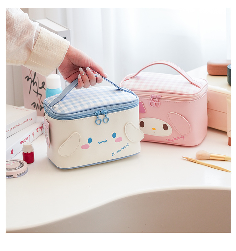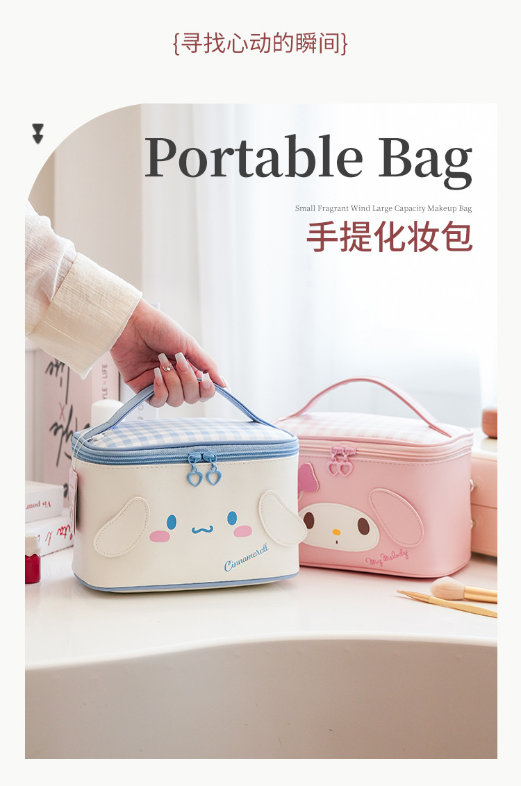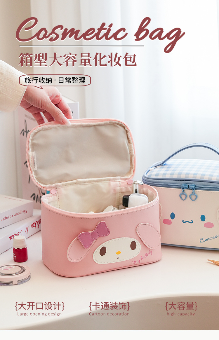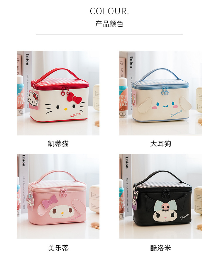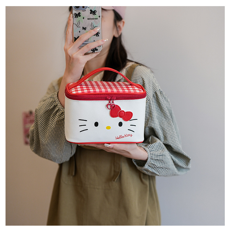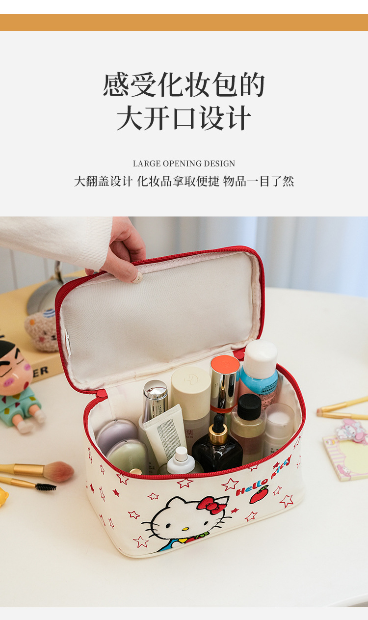 Sanrio 입체 패션 헬로키티 자수 화장품 가방 대용량 고가치 여행 휴대용 수납 가방